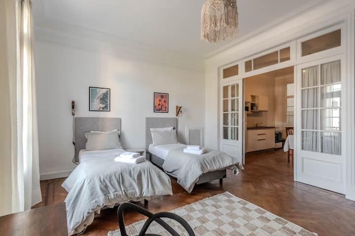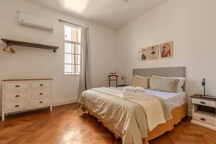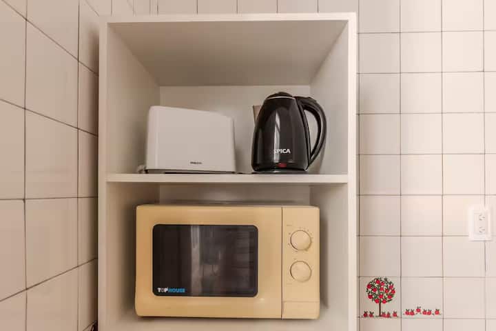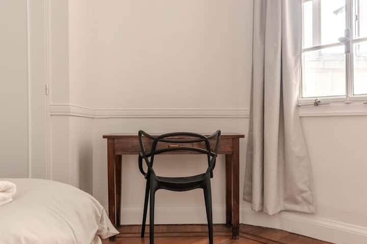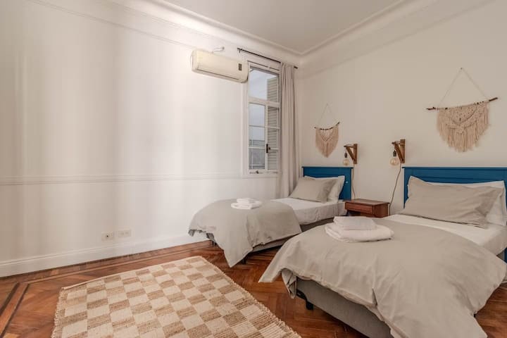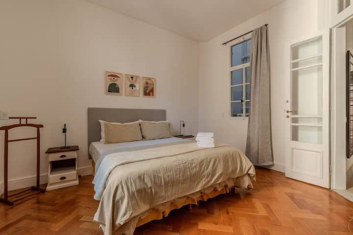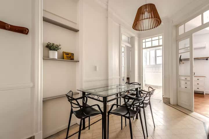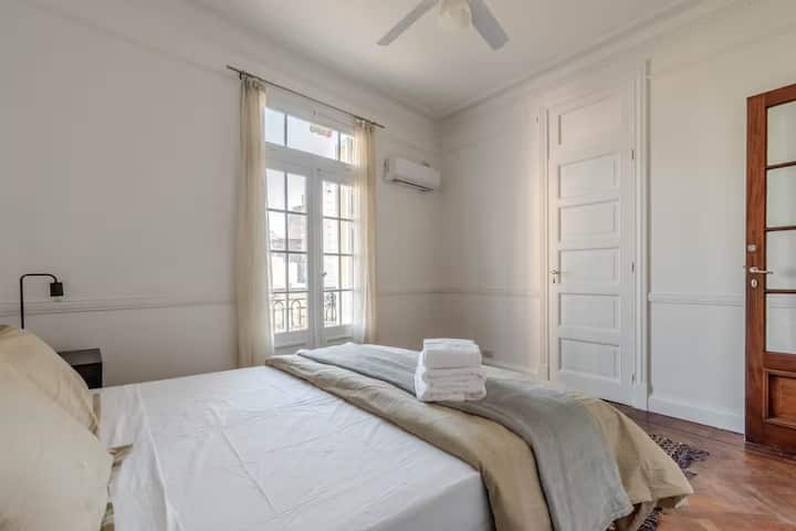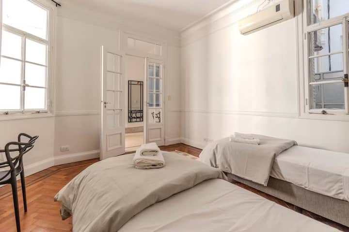 Two separate apartments on the same floor in Balvanera, with capacity for 8 guests in total. Each unit has an equipped kitchen-dining room, a full bathroom, a Smart TV, and options of double and single beds; one of the units has a small balcony. The two apartments are for exclusive use by guests and do not share spaces with other tenants, one block from Plaza Miserere and the Plaza Miserere subway station (Line A).