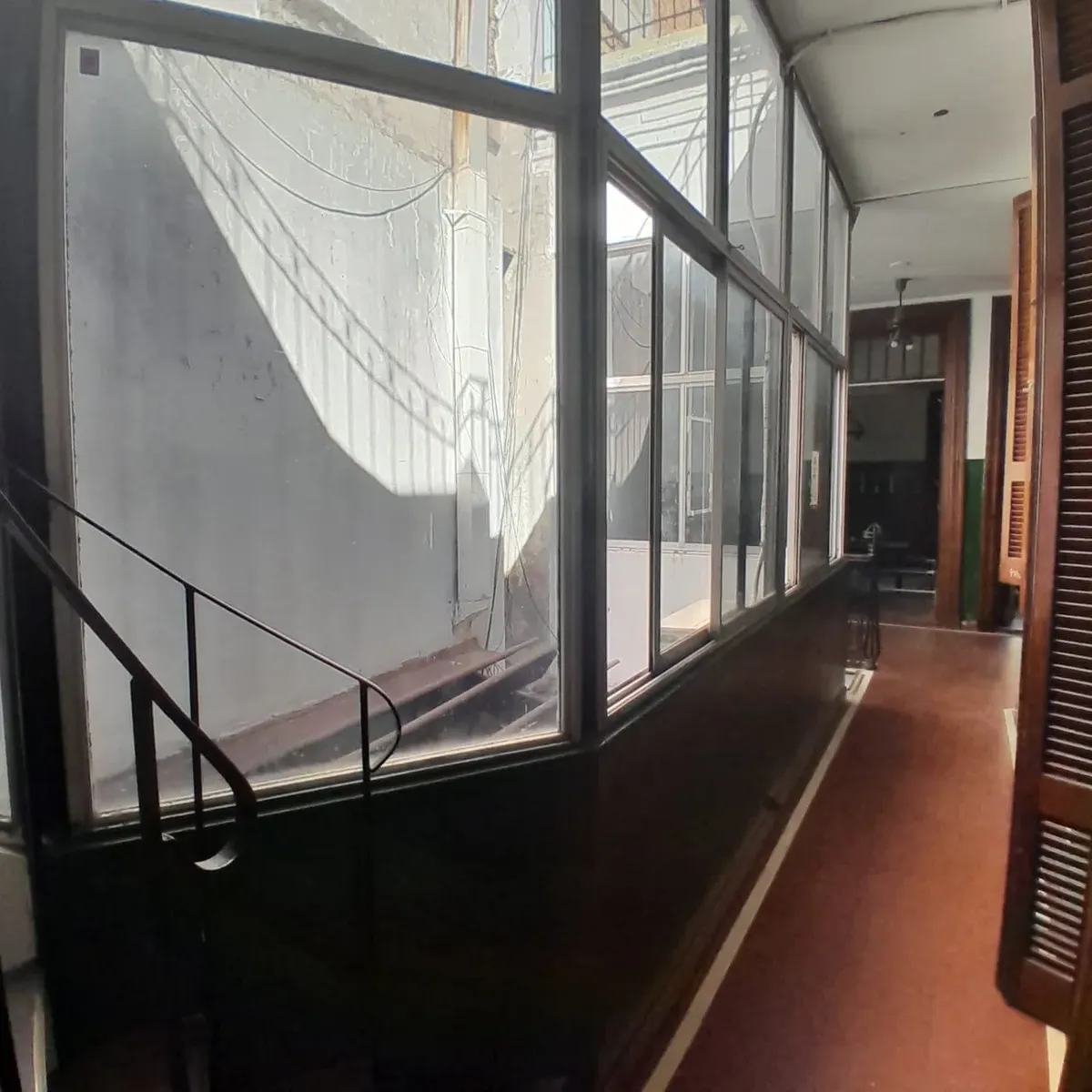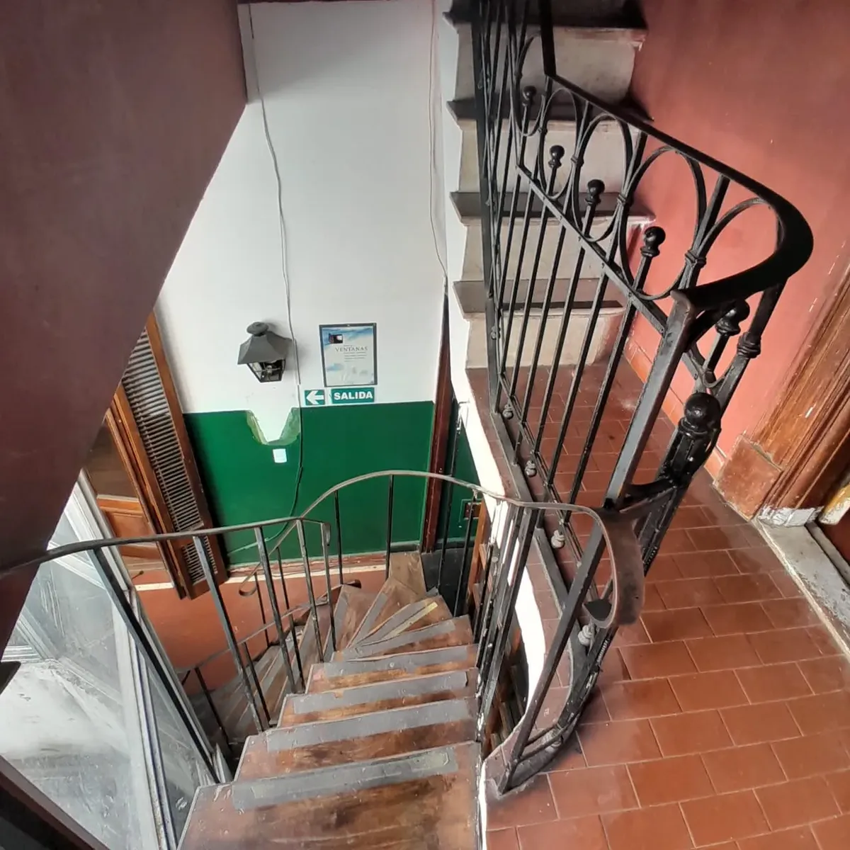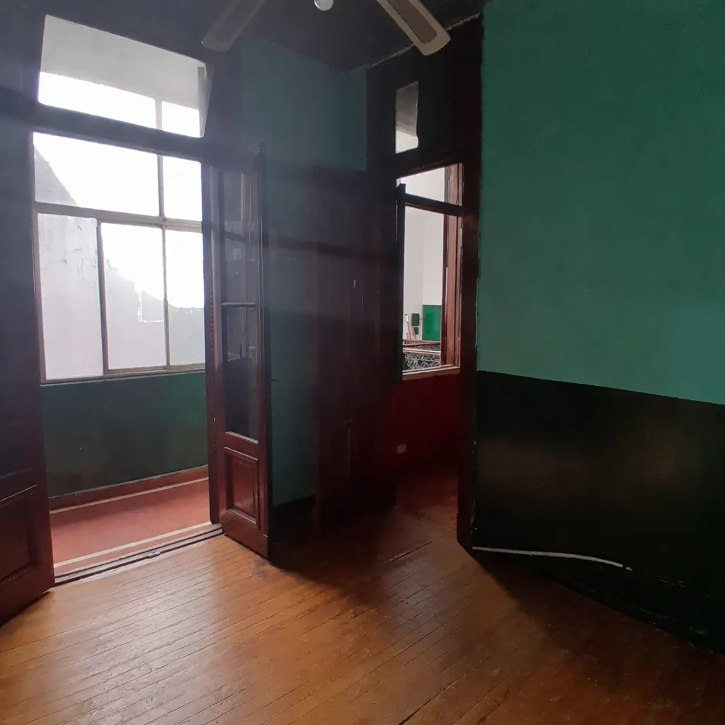 Historic townhouse-style apartment of 5 rooms on the 1st floor accessed by stairs, street-facing in Balvanera. Double-height ceilings and an original marble staircase, with a reception hall, living-dining room, bedrooms, bathrooms, and a kitchen with wall cabinets and under-counter units, plus space for a daily dining area. The unit includes a mezzanine and a private rooftop terrace of 100 m². Rental requirements include a property guarantee or a rental guarantee bond, with quarterly contract ad