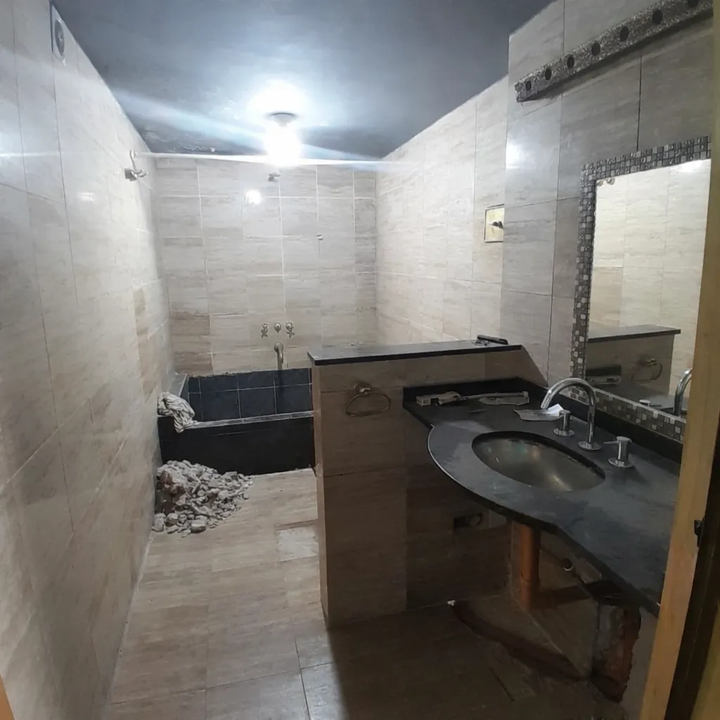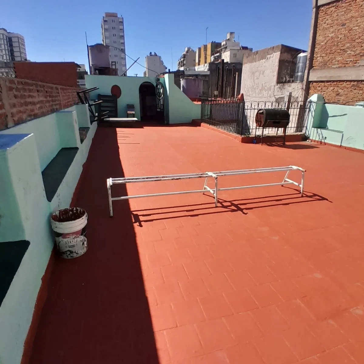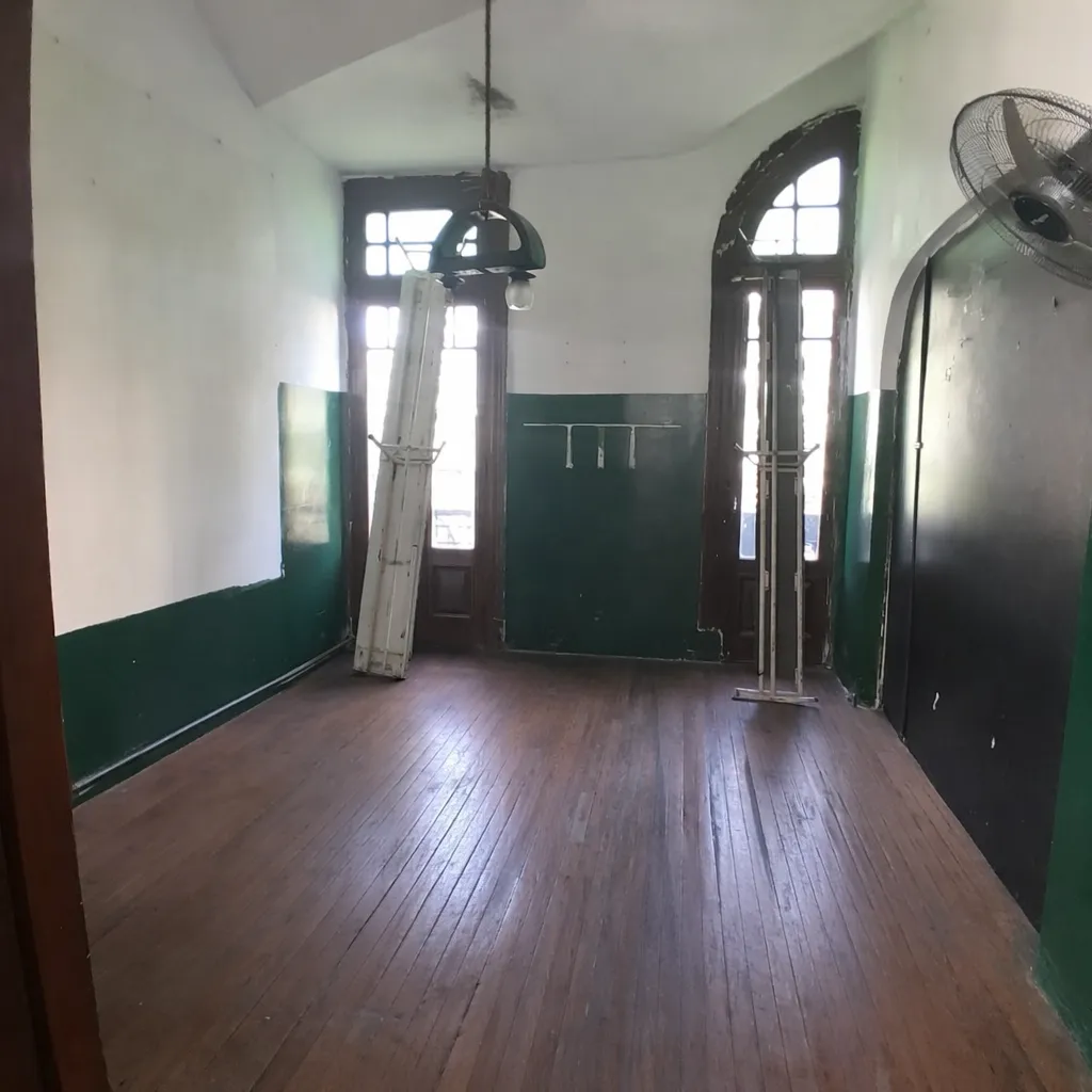 Historic townhouse-style apartment of 5 rooms on the 1st floor accessed by stairs, street-facing in Balvanera. Double-height ceilings and an original marble staircase, with a reception hall, living-dining room, bedrooms, bathrooms, and a kitchen with wall cabinets and under-counter units, plus space for a daily dining area. The unit includes a mezzanine and a private rooftop terrace of 100 m². Rental requirements include a property guarantee or a rental guarantee bond, with quarterly contract ad