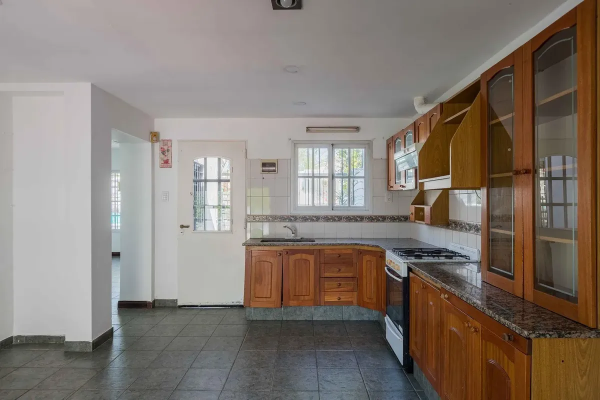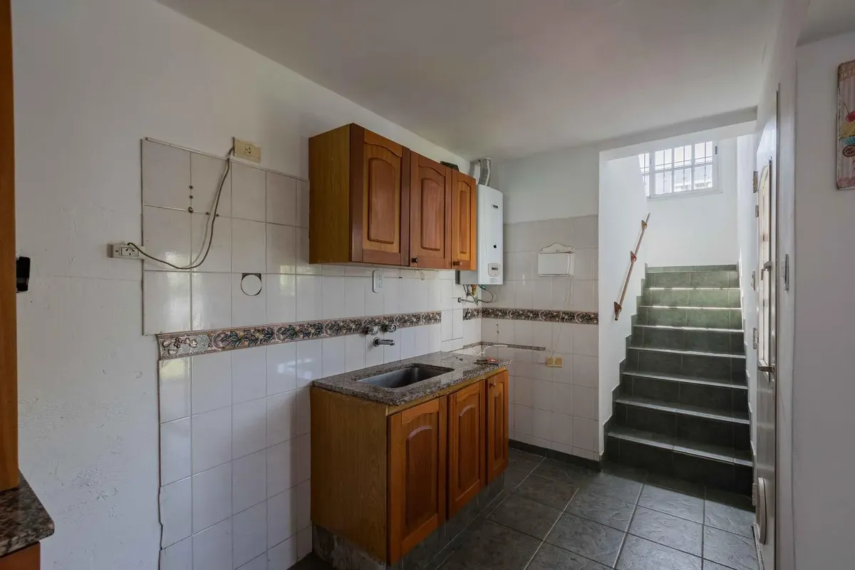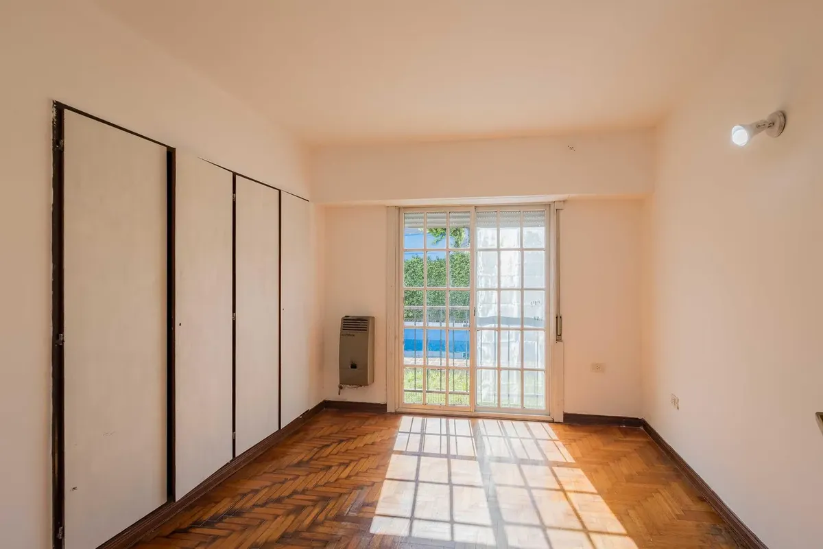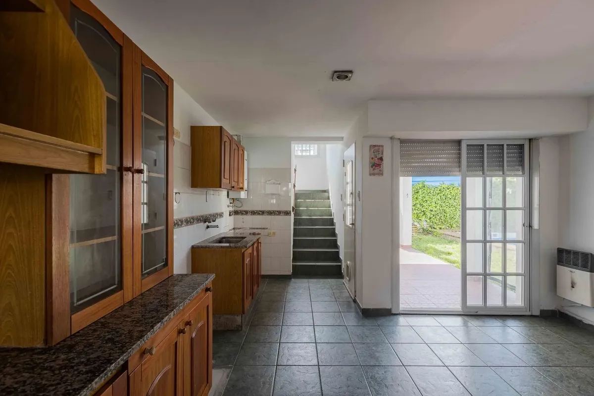 Ground-floor and first-floor house in Beccar with 4 bedrooms, a private garden with pool and covered gallery. On the ground floor there is an entry hall, living and dining areas, a guest toilet, 2 bedrooms sharing 1 full bathroom, and a separate kitchen with daily dining space and direct access to the garden. Upstairs there is a master bedroom en suite with a balcony, plus a study or 4th bedroom; the property has heating via balanced flue stoves and a split air-conditioning unit (cooling) in the