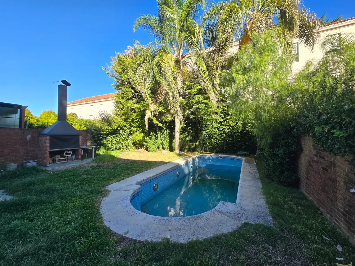 House in the Bajo de San Isidro area, with four bedrooms. The ground floor has a reception area, a main living room with a natural-draft fireplace, a formal dining room, a reception toilet, and a kitchen with a daily eating area. There is a covered gallery with a grill connecting to a landscaped garden with a pool. The property includes an in-garage parking space for 1 car and has a garage for one car. Upstairs has four bedrooms.
