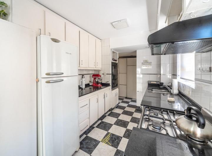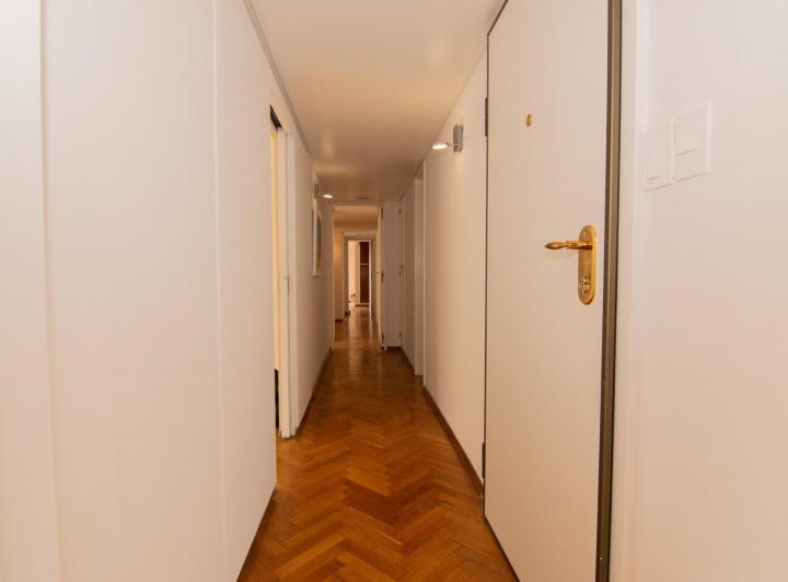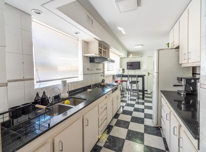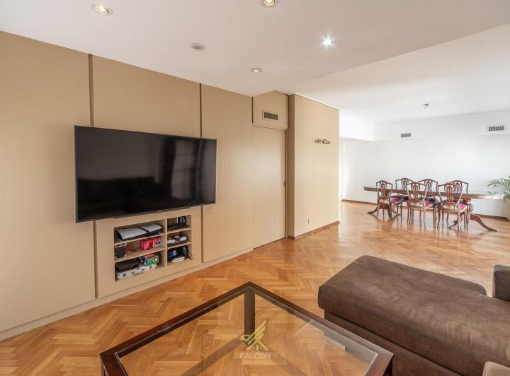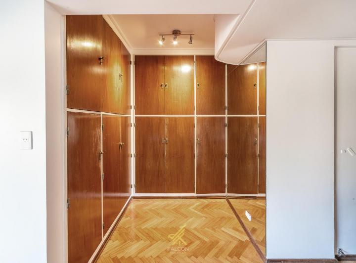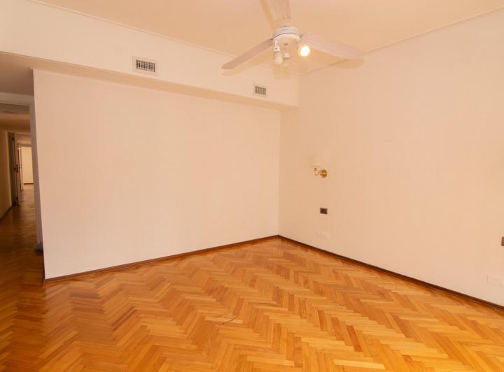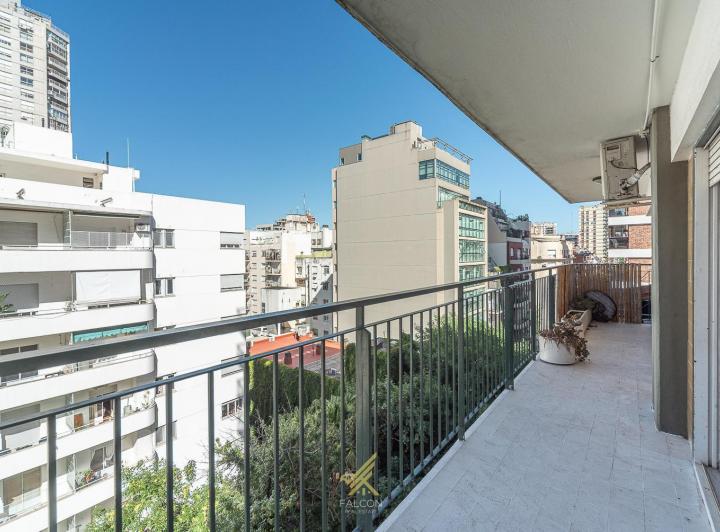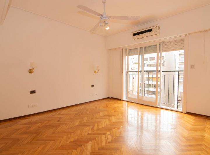 Six-room apartment on the 8th floor in Belgrano with a fixed parking space and a storage room. Private landing and double circulation, with a main elevator and a service elevator. Includes a large living-dining room, separate kitchen, laundry area, service quarters, and full bathrooms. Delivered freshly painted white; option to rent a second parking space.