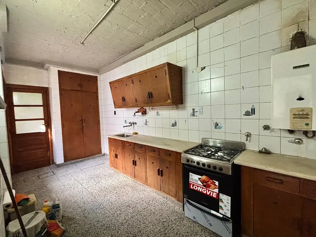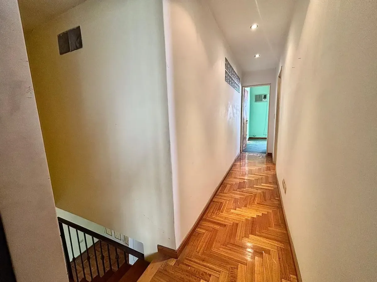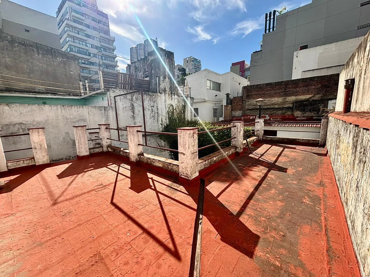 House for rent with 4 bedrooms in Belgrano. It is spread over 2 floors with 4 bathrooms (2 on the ground floor, 1 on the upper floor and 1 exterior) and includes a garage space. The layout has a living-dining room, kitchen, 2 bedrooms and 2 bathrooms on the ground floor, plus front and rear gardens, with access to a terrace only from the park area; the ground floor also includes an outdoor bathroom. On the upper floor there are 2 additional bedrooms and 1 full bathroom. Covered area is 206.88 m²