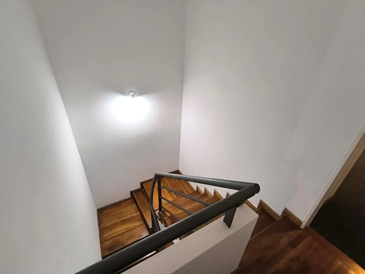 Five-room triplex apartment with uncovered space for parking a small car, a small patio and a grill, spread over three floors. It has radiators in all rooms, air conditioning, an individual boiler, 2 full bathrooms and 1 powder room. On the ground floor there is an entry hall, living-dining room, garage for a small car, laundry area with connection for a washing machine, a kitchenette with dining area and access to the garden with a grill. On the first floor there is a master bedroom en suite wi