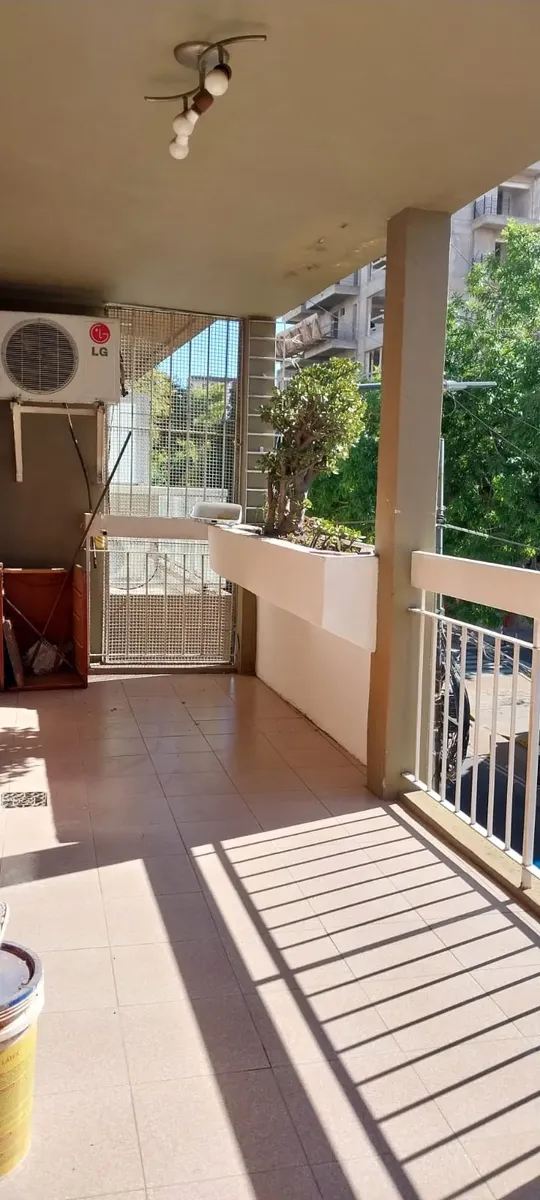 Four-room apartment in Caballito with a service room, front terrace balcony and an assigned parking space. It has a bright living room with access to the terrace balcony and a separate dining area. There are 3 bedrooms, with the primary bedroom opening onto the balcony and a dressing room, plus 2 full bathrooms (one with a bathtub, one with a shower). At the back there is a service room with a toilet, which can also be used as an office or storage area. Located a short distance from Av. Pedro Go
