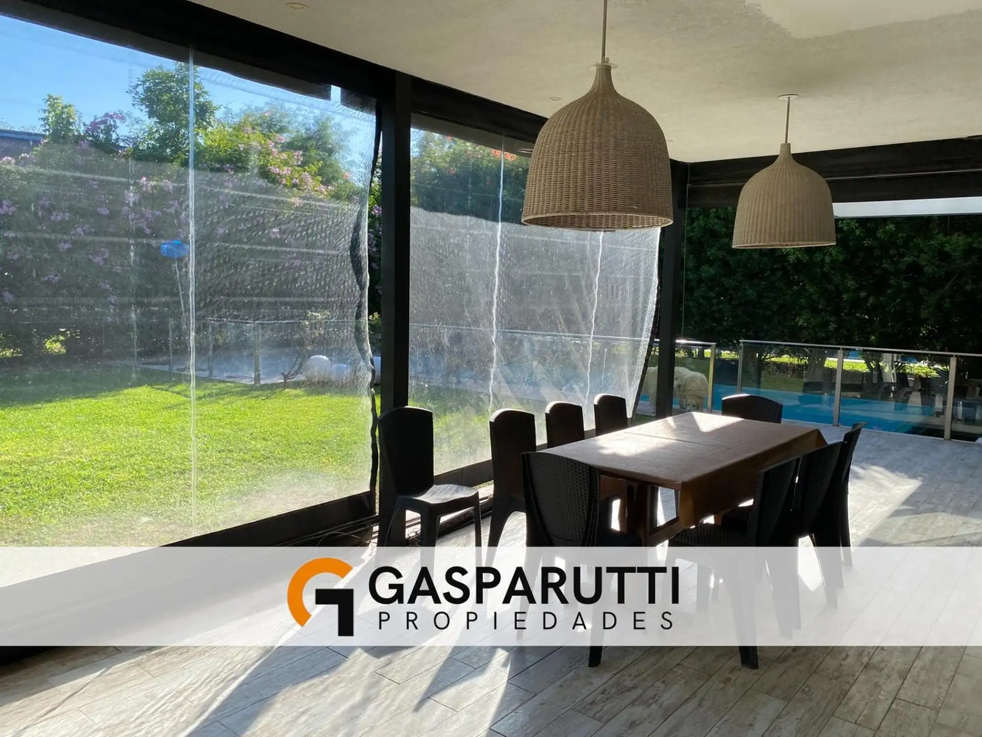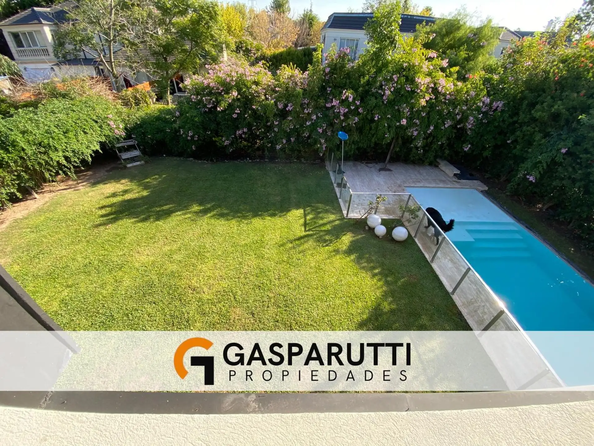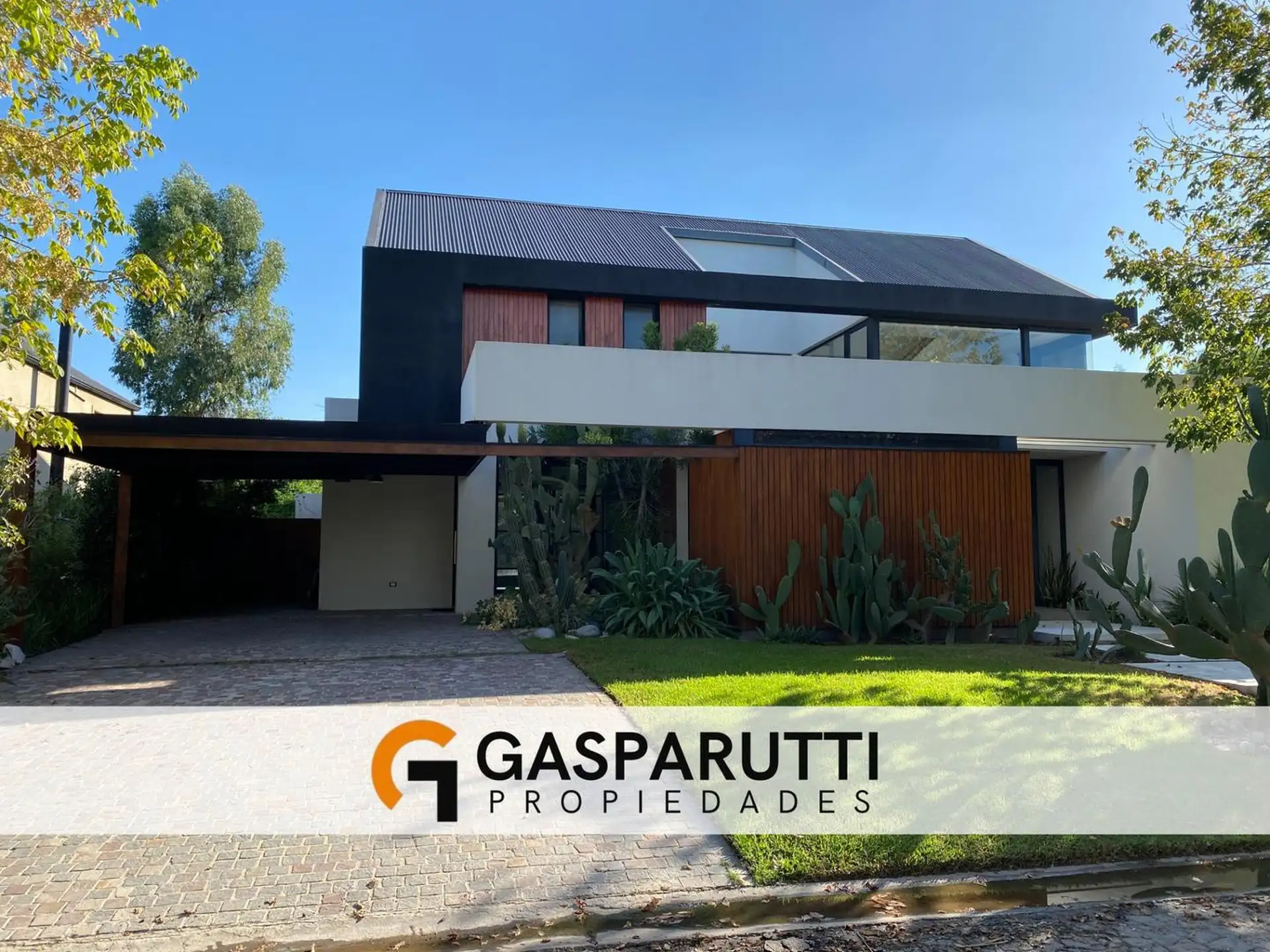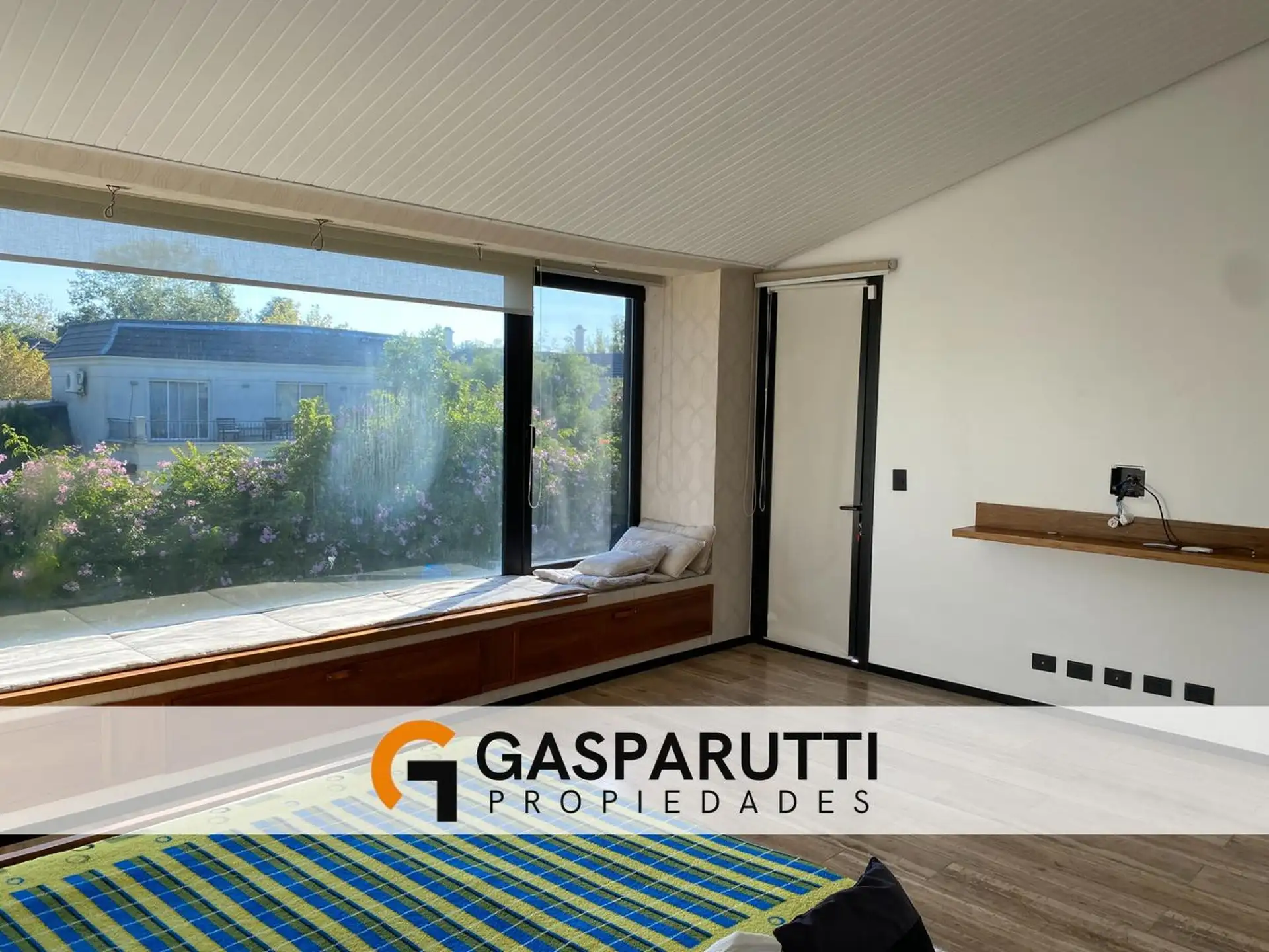 Four-bedroom house built in Septiembre, Escobar, with a covered gallery, garden at the rear and front, and a pool. Ground floor includes an entry hall, a living-dining room, a kitchen with a daily dining area and island, a full bathroom, a service room with a bathroom, and an office. Upper floor has an office with access to the front balcony, a master suite with dressing room and balcony overlooking the garden, and 2 en-suite bedrooms. There is also a playroom on a third level, plus an outdoor s