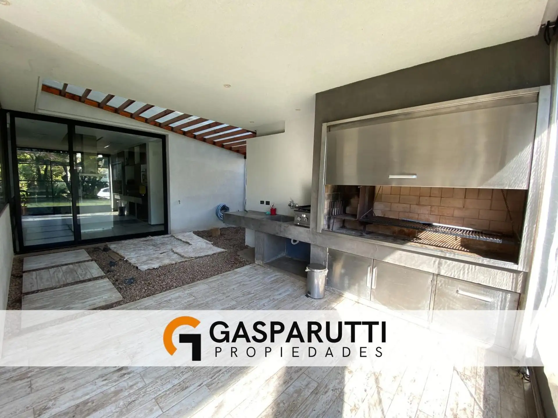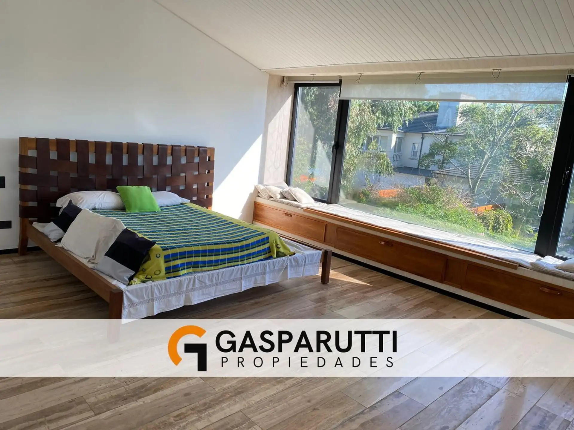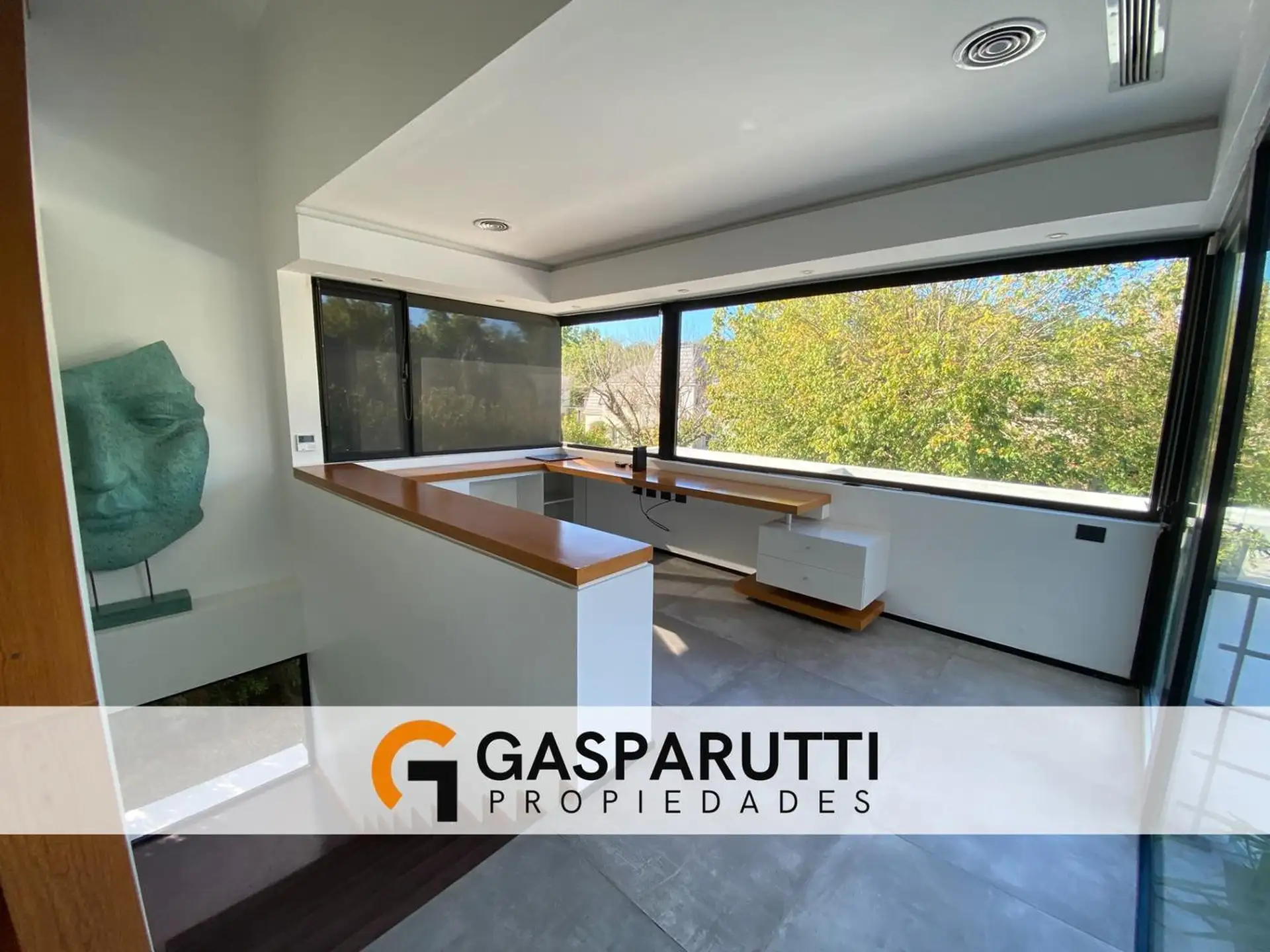 Four-bedroom house built in Septiembre, Escobar, with a covered gallery, garden at the rear and front, and a pool. Ground floor includes an entry hall, a living-dining room, a kitchen with a daily dining area and island, a full bathroom, a service room with a bathroom, and an office. Upper floor has an office with access to the front balcony, a master suite with dressing room and balcony overlooking the garden, and 2 en-suite bedrooms. There is also a playroom on a third level, plus an outdoor s