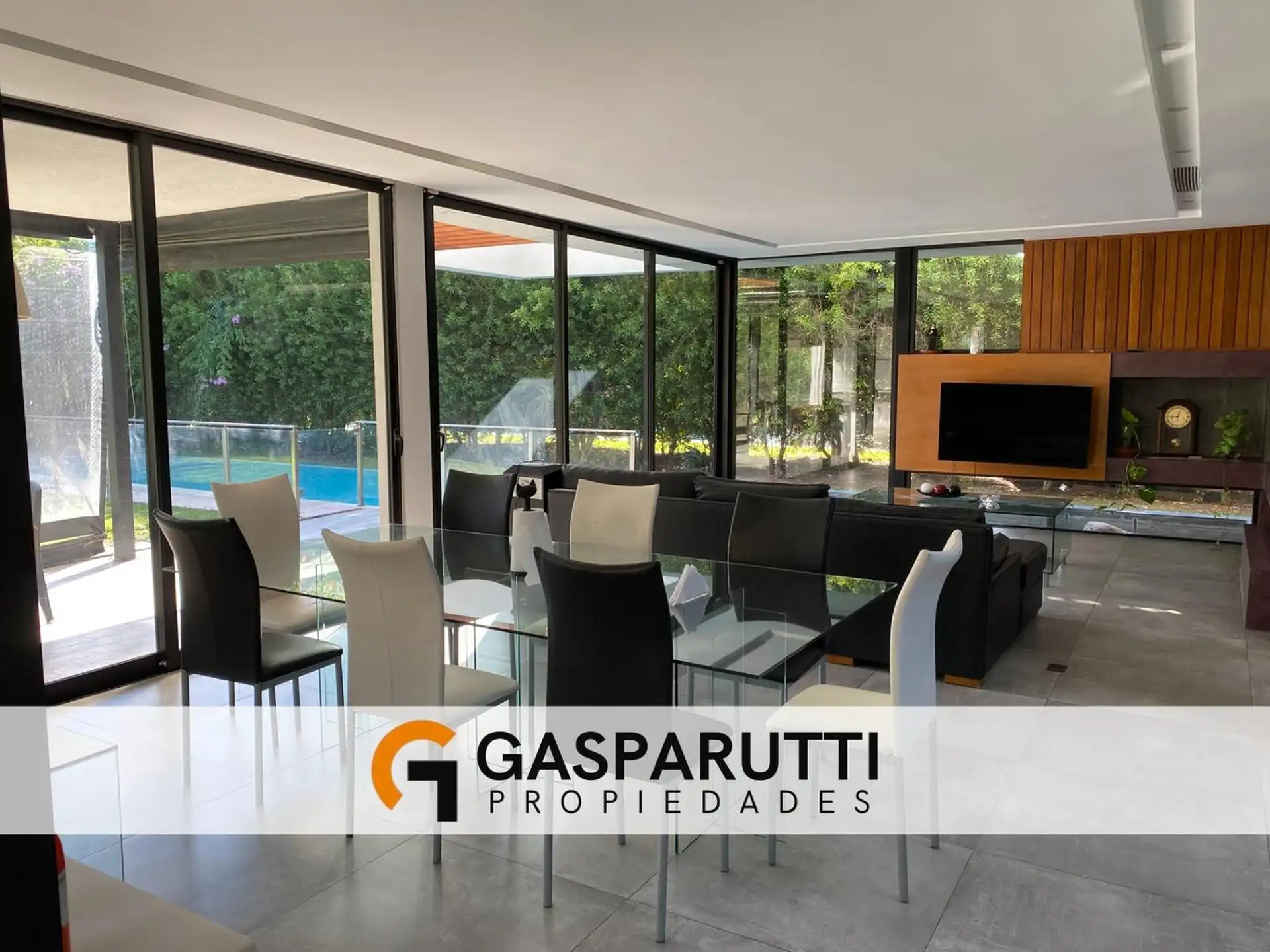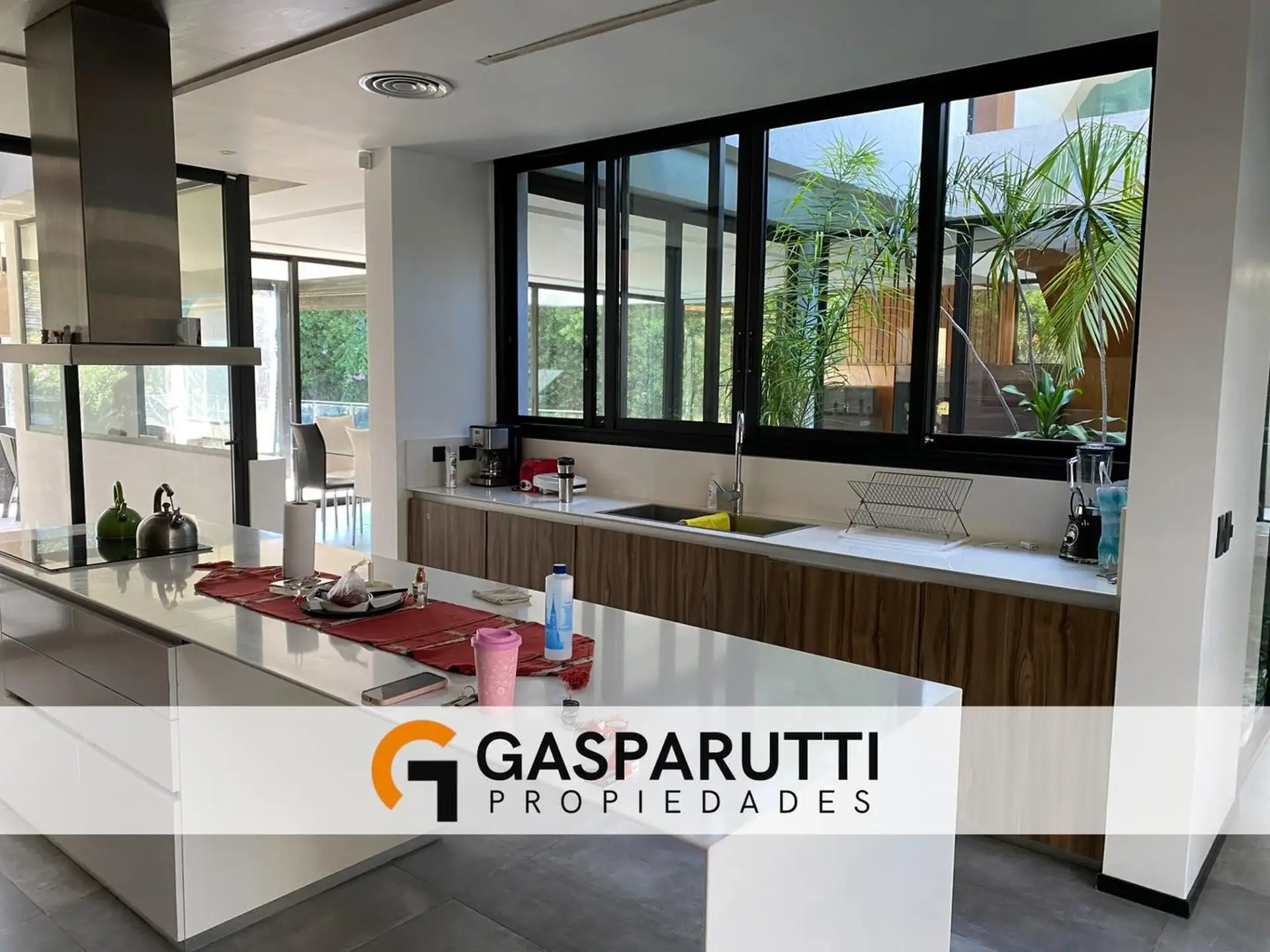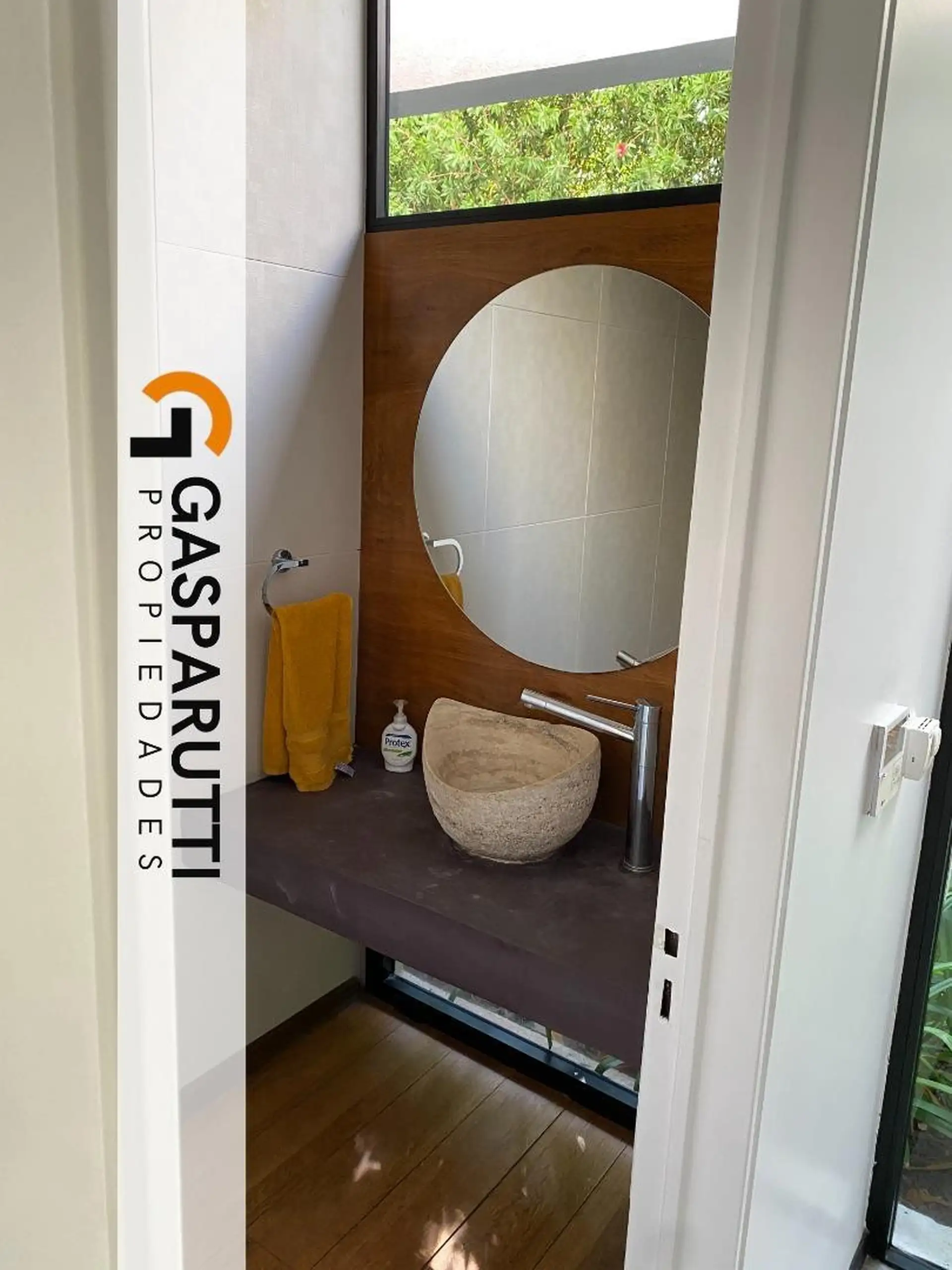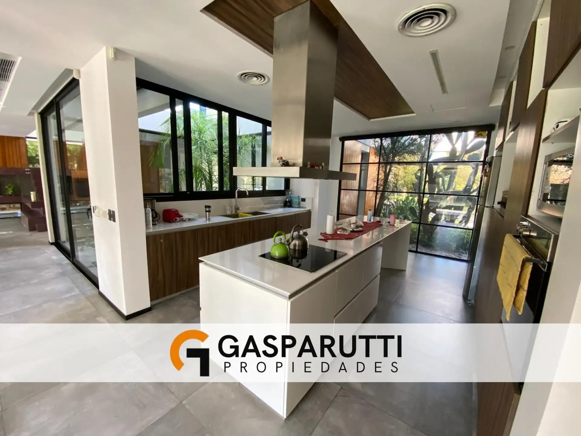 Four-bedroom house built in Septiembre, Escobar, with a covered gallery, garden at the rear and front, and a pool. Ground floor includes an entry hall, a living-dining room, a kitchen with a daily dining area and island, a full bathroom, a service room with a bathroom, and an office. Upper floor has an office with access to the front balcony, a master suite with dressing room and balcony overlooking the garden, and 2 en-suite bedrooms. There is also a playroom on a third level, plus an outdoor s