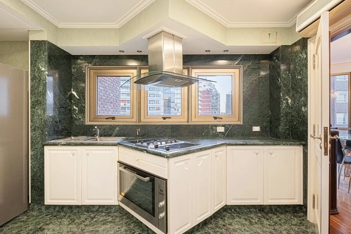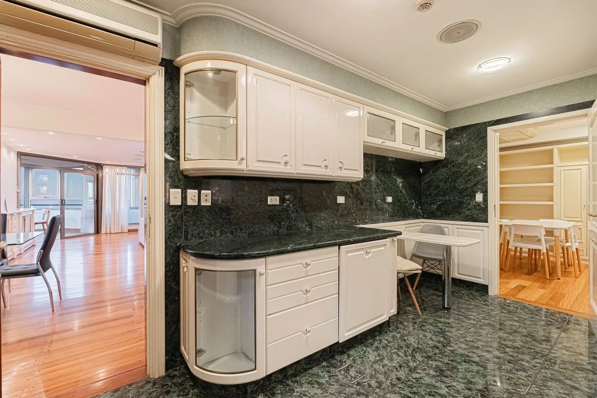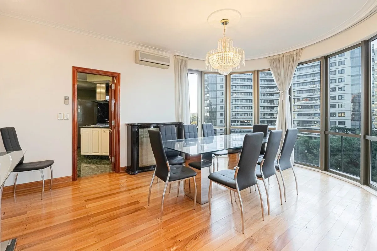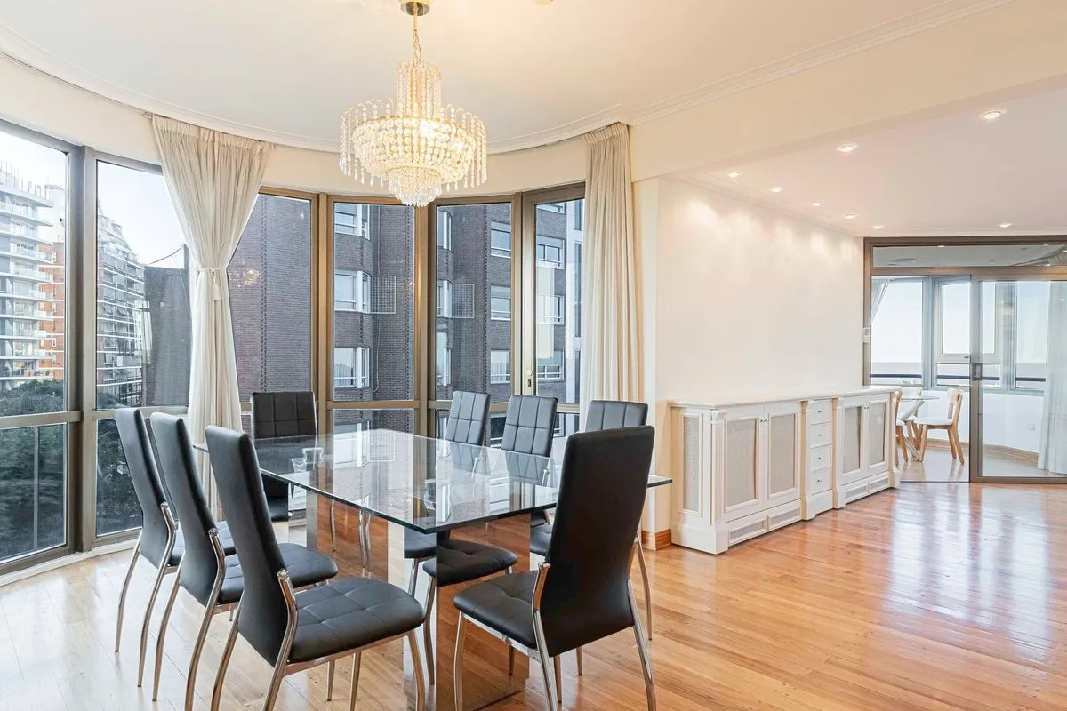 Furnished apartment on the 7th floor in La Lucila, Vicente López, with river views. It has 4 bedrooms, 2 of them en suite, the main suite with a sauna and Scottish shower; a total of 3 bathrooms and 1 guest toilet. The unit includes a living-dining area, study, family room, separate kitchen with new appliances, daily dining room, maid’s quarters and laundry room, plus enclosed balconies with anodised glazing facing the river. Amenities include 24-hour security, central music system, double therm