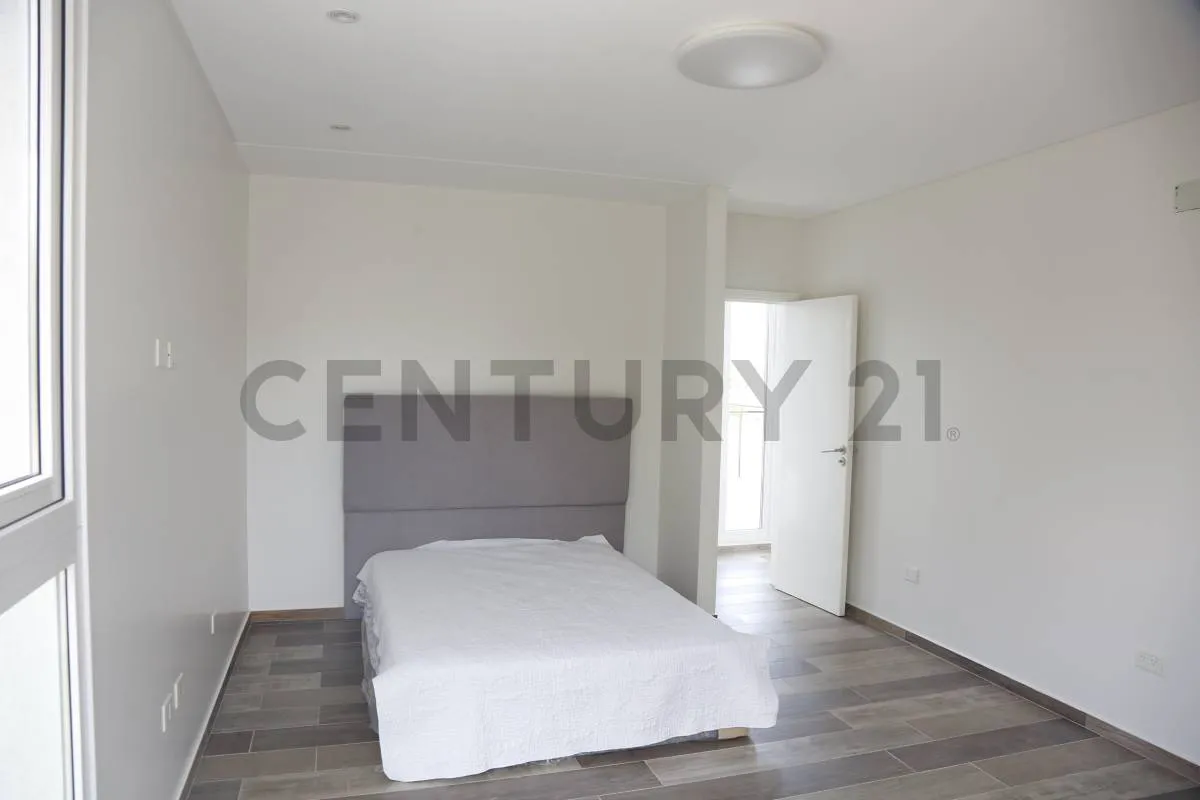 Contemporary-design house in La Victoria, Lote 232, with direct access to the lake. It has 4 bedrooms, including 1 en suite, and 4 full bathrooms. The integrated kitchen connects to the dining room and living area; the home has porcelain tiles and white PVC double-glazed windows, with heating via radiators in each space.
