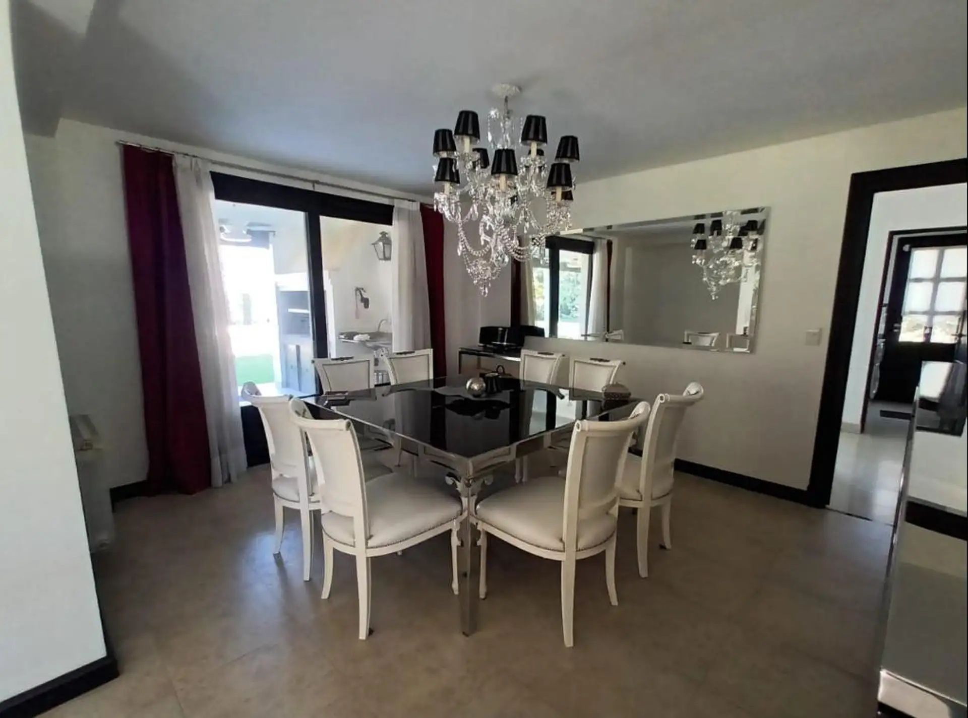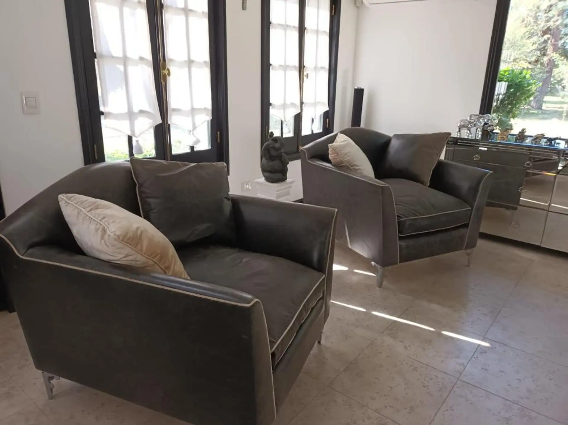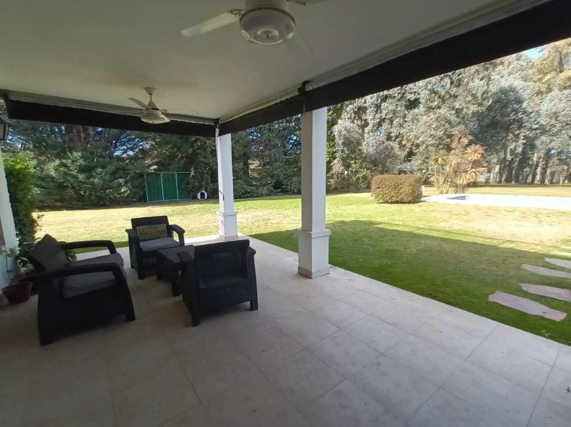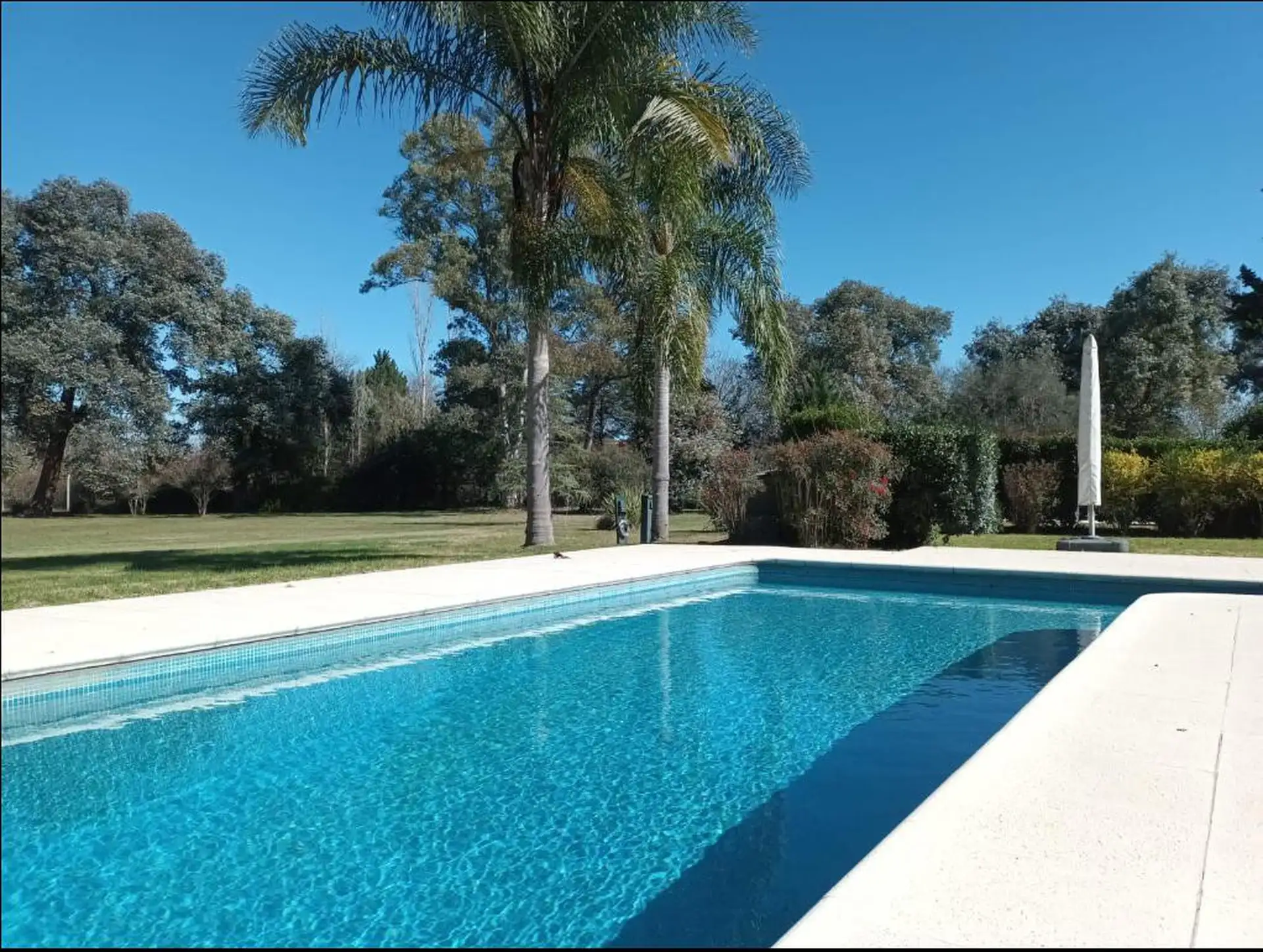 Two-storey chalet-style house on an internal lot of 1,800 m² in Club de Golf Praderas de Luján, Luján, Buenos Aires Province. On the ground floor it has a large living-dining room with windows, direct access to a gallery with a grill, a main dining room, a modern kitchen with double oven and dishwasher, a breakfast nook overlooking the garden, a separate laundry room, a reception hall with a guest toilet, and a ground-floor suite that could be used as a guest room. Upstairs there is a distributi