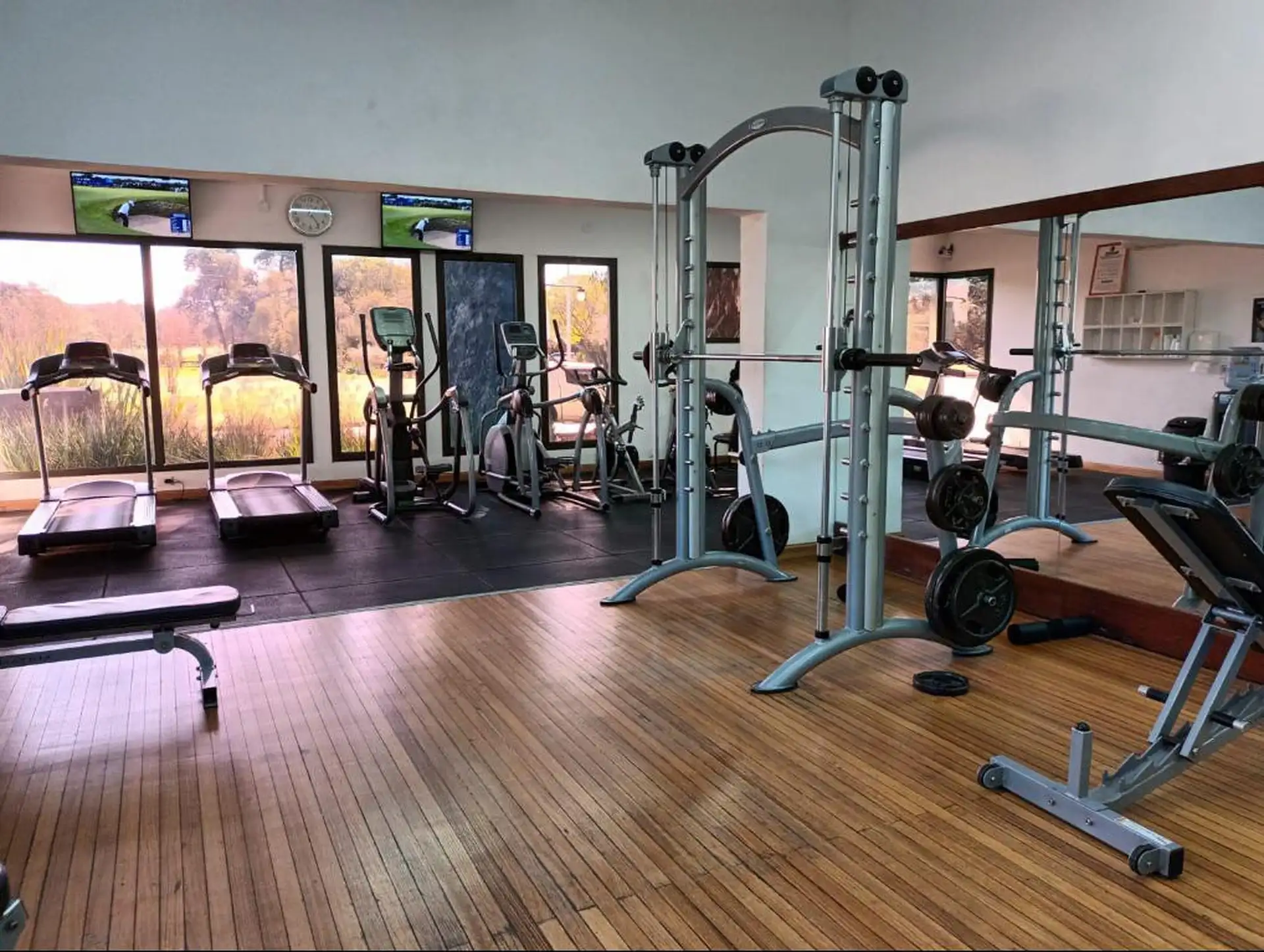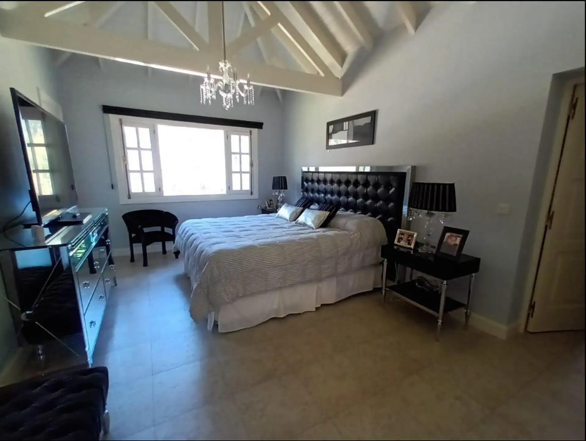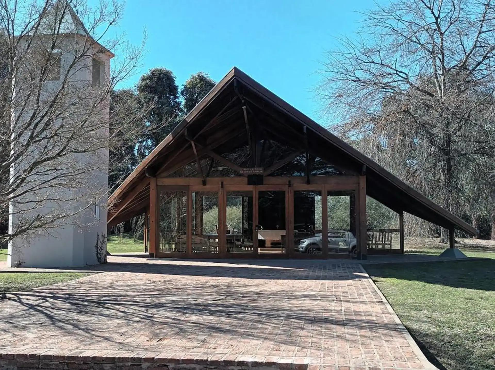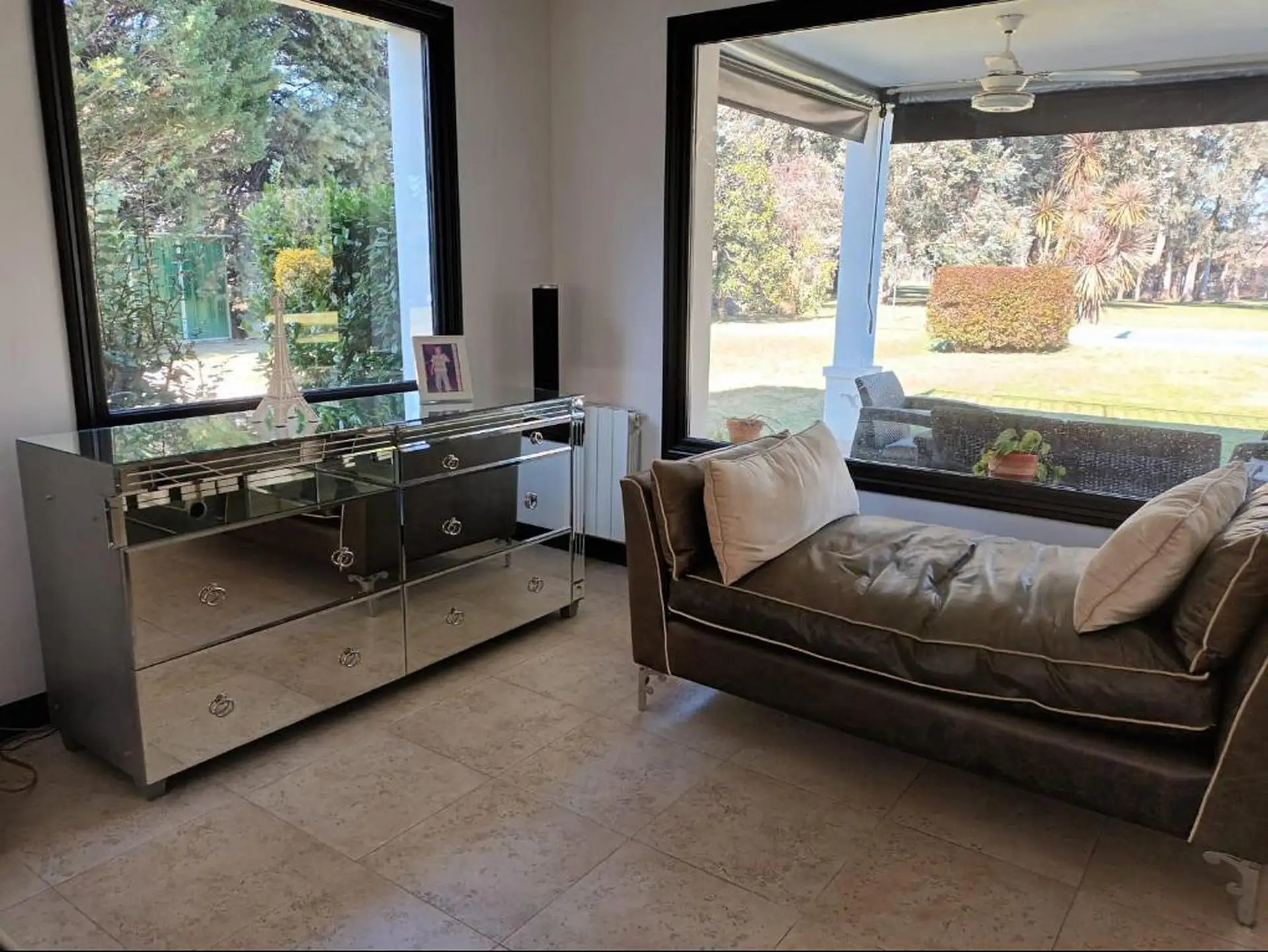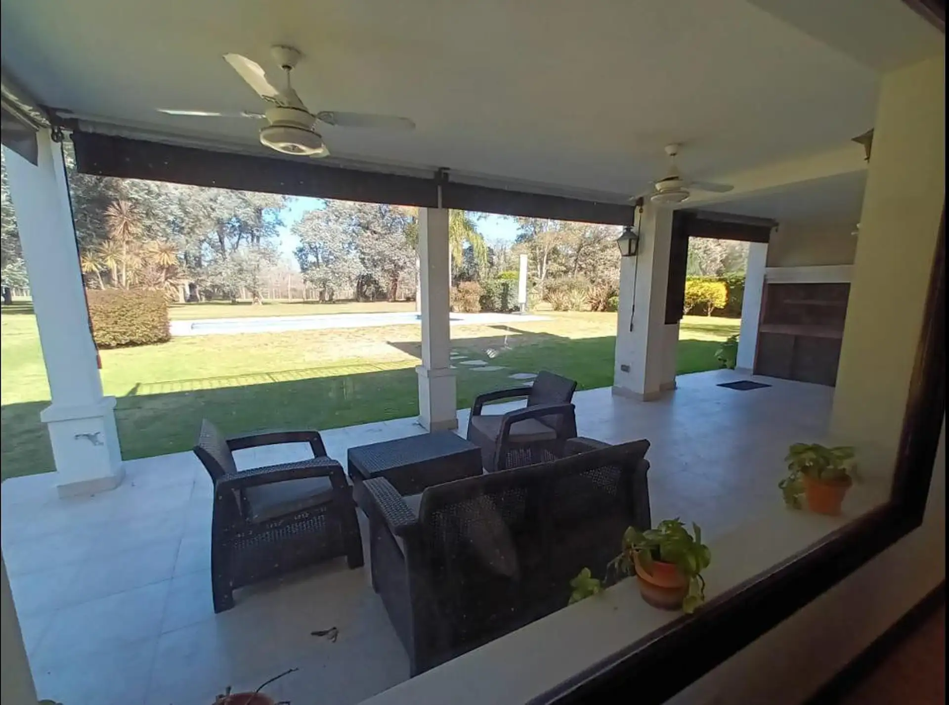 Two-storey chalet-style house on an internal lot of 1,800 m² in Club de Golf Praderas de Luján, Luján, Buenos Aires Province. On the ground floor it has a large living-dining room with windows, direct access to a gallery with a grill, a main dining room, a modern kitchen with double oven and dishwasher, a breakfast nook overlooking the garden, a separate laundry room, a reception hall with a guest toilet, and a ground-floor suite that could be used as a guest room. Upstairs there is a distributi