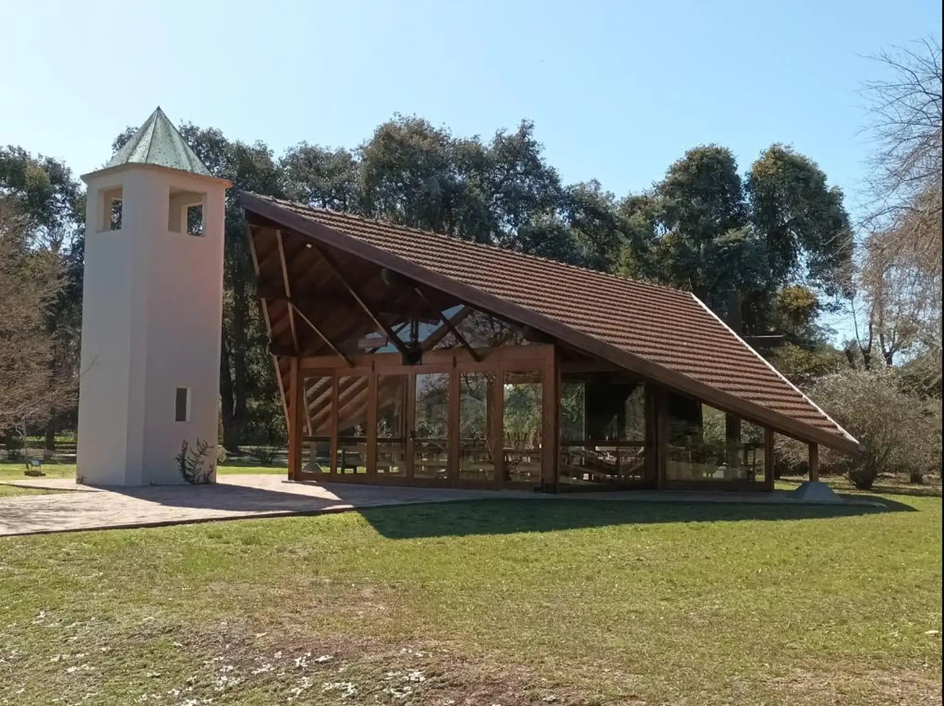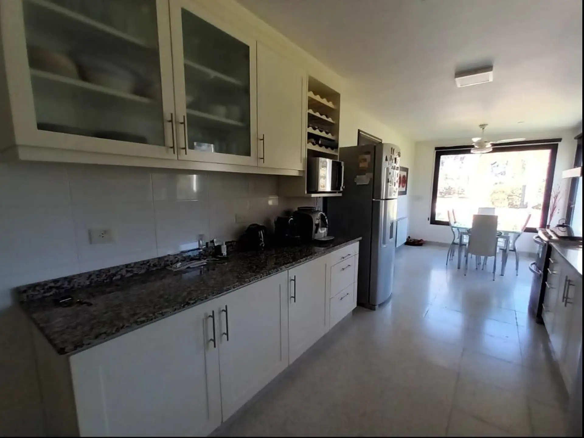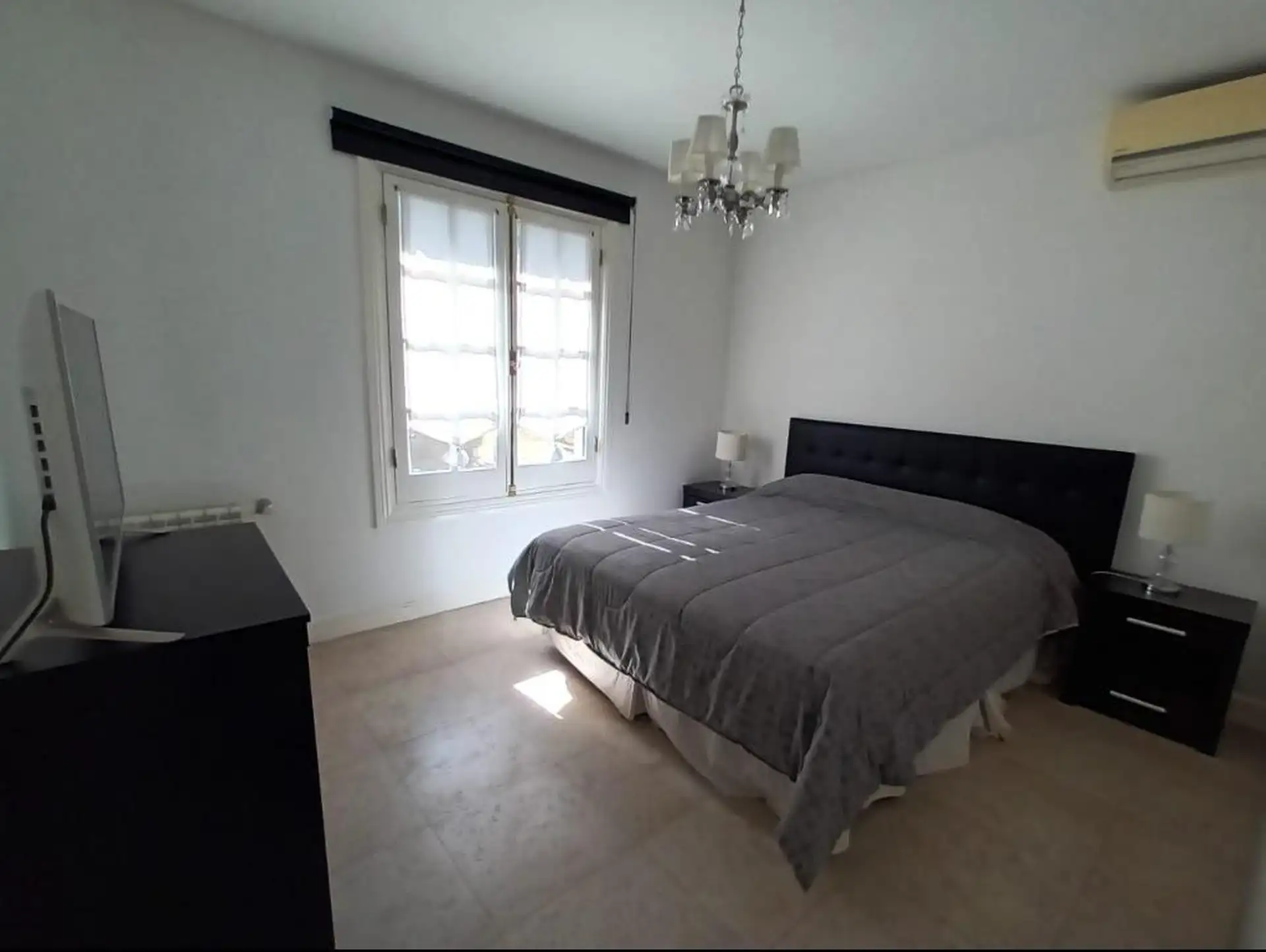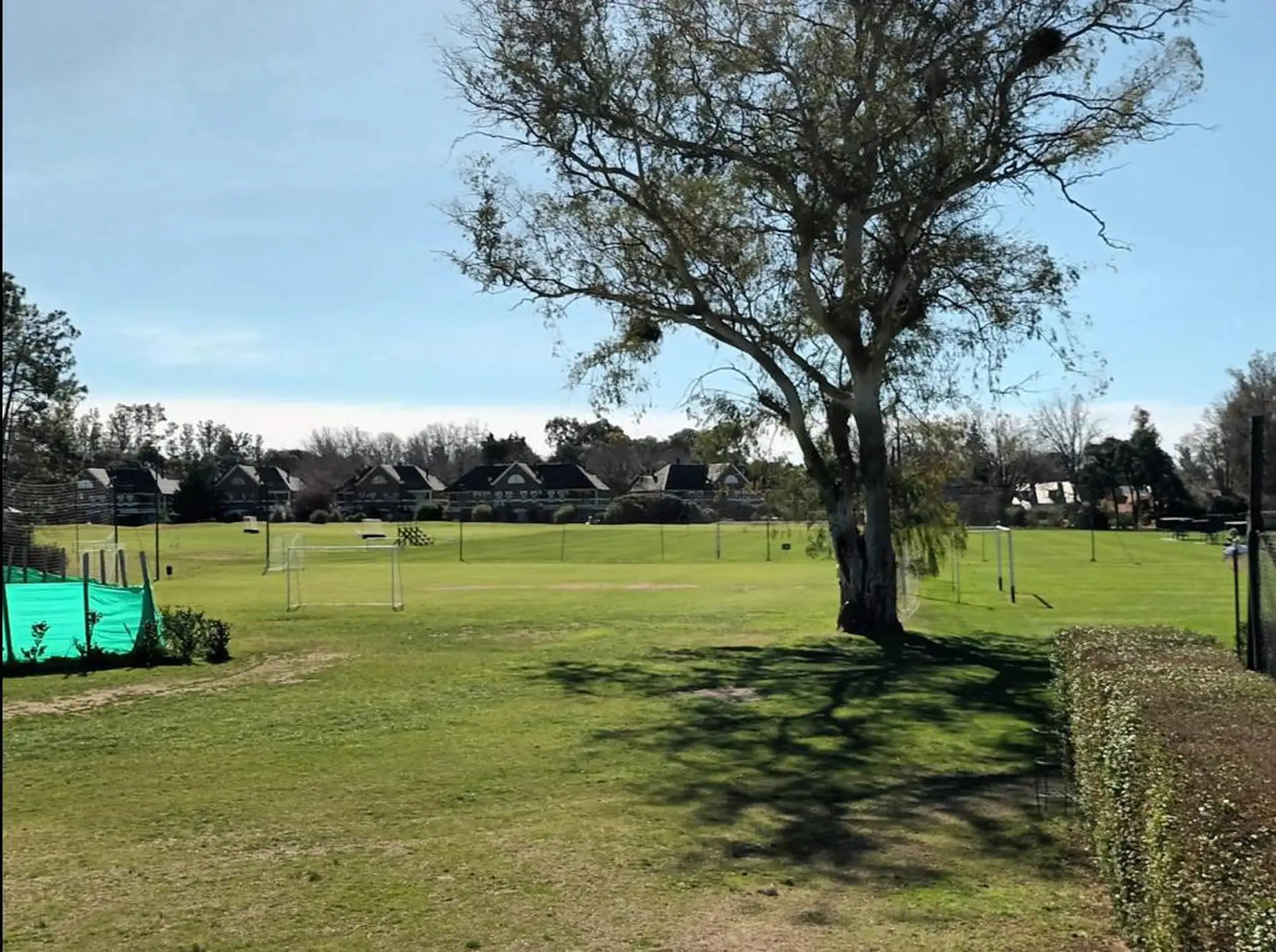 Two-storey chalet-style house on an internal lot of 1,800 m² in Club de Golf Praderas de Luján, Luján, Buenos Aires Province. On the ground floor it has a large living-dining room with windows, direct access to a gallery with a grill, a main dining room, a modern kitchen with double oven and dishwasher, a breakfast nook overlooking the garden, a separate laundry room, a reception hall with a guest toilet, and a ground-floor suite that could be used as a guest room. Upstairs there is a distributi
