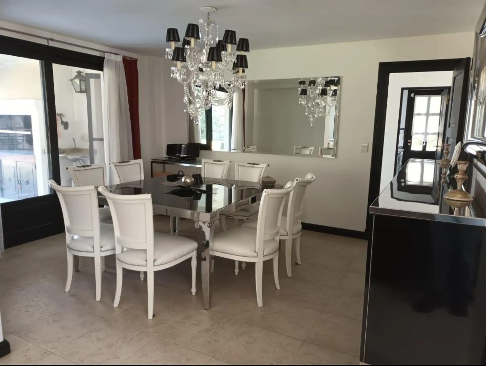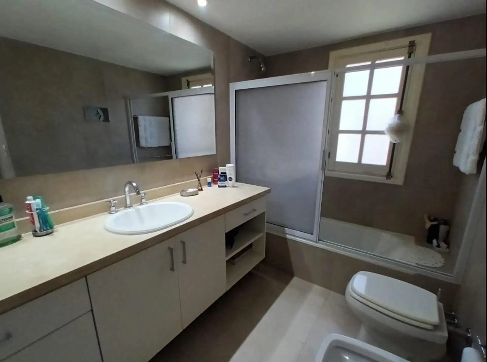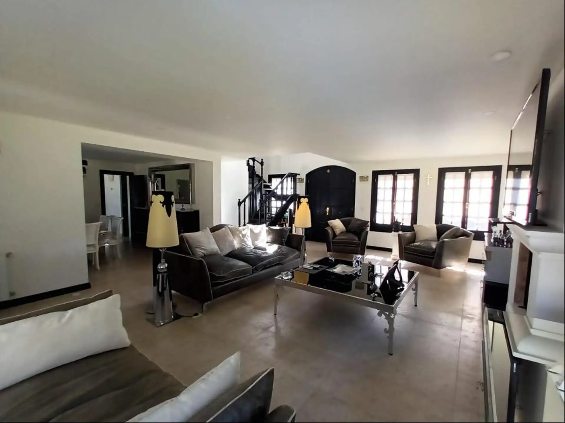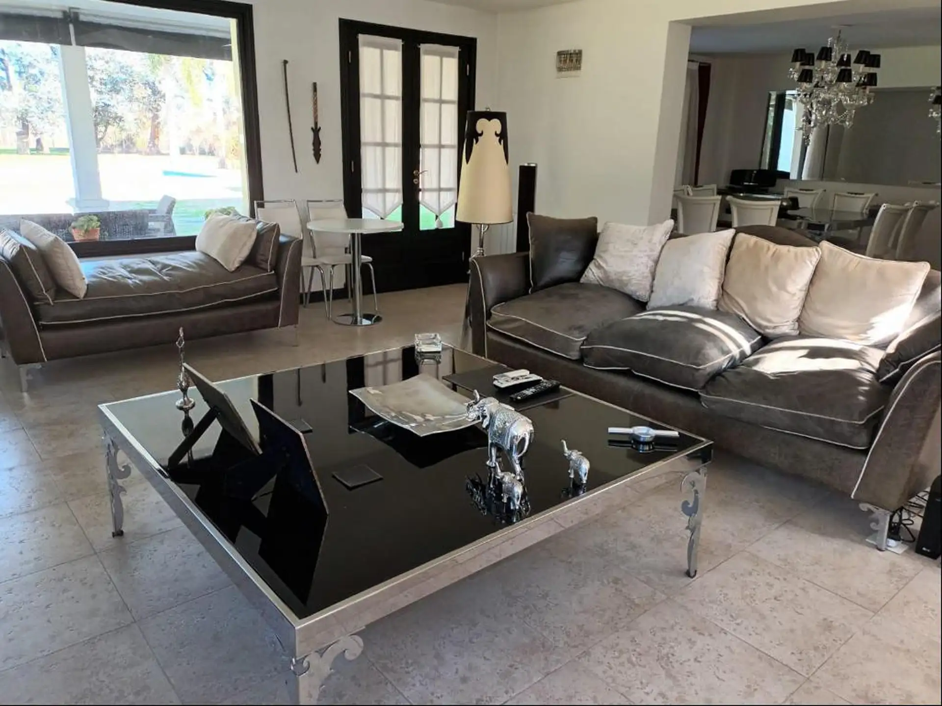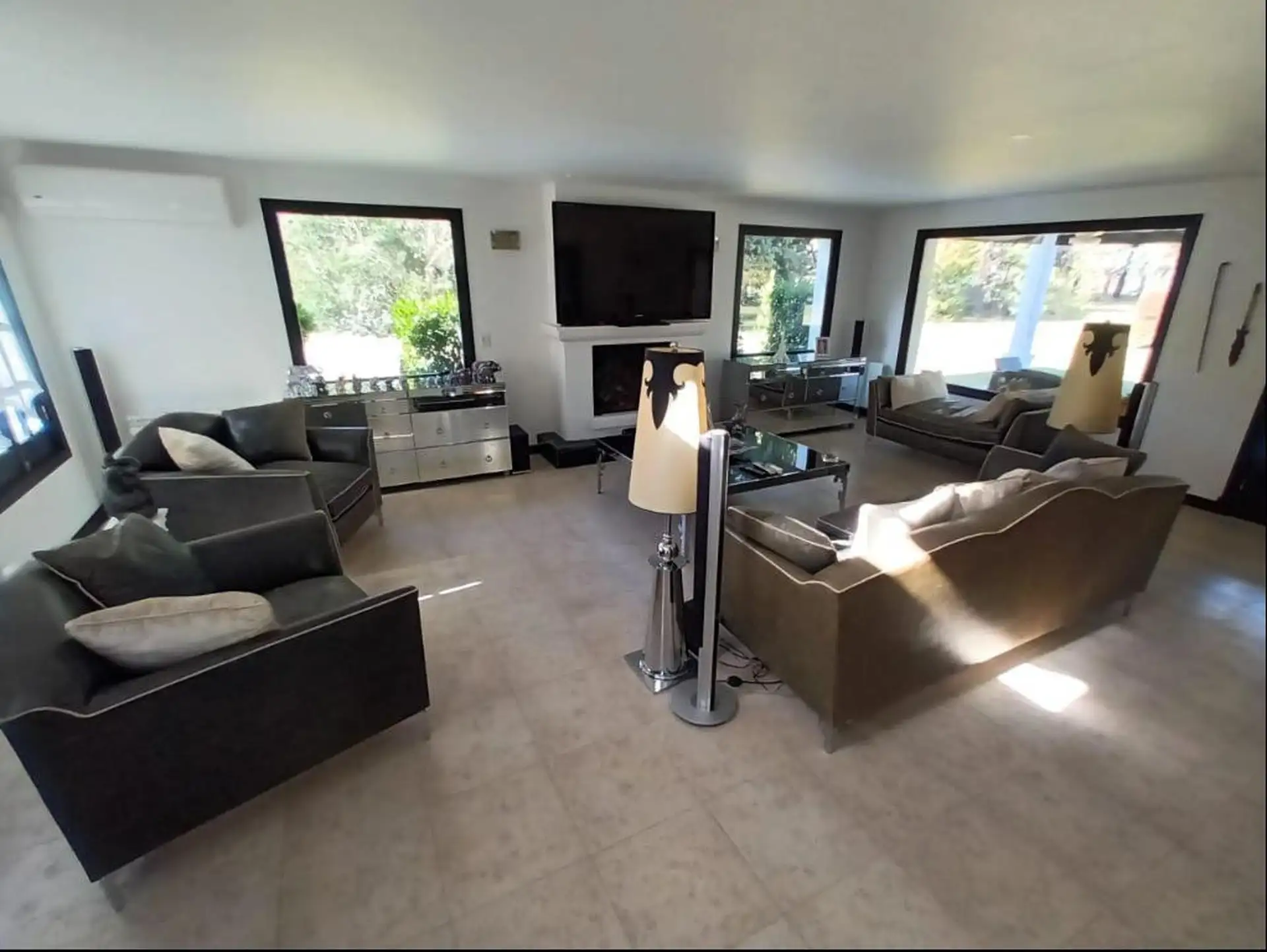 Two-storey chalet-style house on an internal lot of 1,800 m² in Club de Golf Praderas de Luján, Luján, Buenos Aires Province. On the ground floor it has a large living-dining room with windows, direct access to a gallery with a grill, a main dining room, a modern kitchen with double oven and dishwasher, a breakfast nook overlooking the garden, a separate laundry room, a reception hall with a guest toilet, and a ground-floor suite that could be used as a guest room. Upstairs there is a distributi