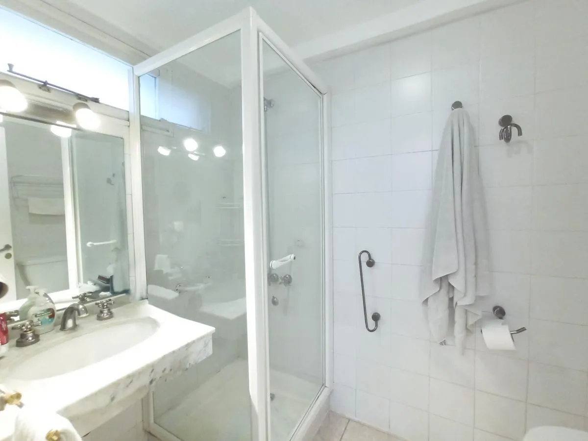 Apartment in a tower in Martínez with private access hall and service access via lift and stairs. The layout has dual circulation connecting the bedrooms with the living-dining area, plus a service bedroom, laundry area and kitchen. The living-dining room has a continuous balcony and electric roller blinds on the openings. There are 3 bedrooms with built-in wardrobes, including a master en suite with shower cubicle, electric towel warmer (PEISA), mirrored doors and a side balcony. The other 2 be