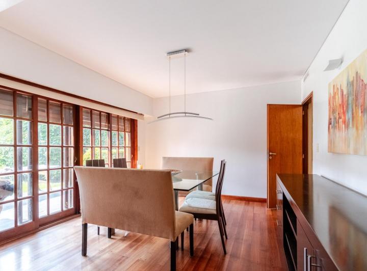 House for sale and rent in Martínez, on Av. Libertador towards the river, on a low-traffic street. Four bedrooms, including two suites, plus a playroom; the ground floor has a reception hall, living-dining room with garden access and a wood-burning fireplace, a guest toilet, and a kitchen with daily dining area, Silestone island and porcelain stoneware floors; there is a separate laundry area and service quarters. The upper floor includes a pass-through office, a distributor hall with storage, a