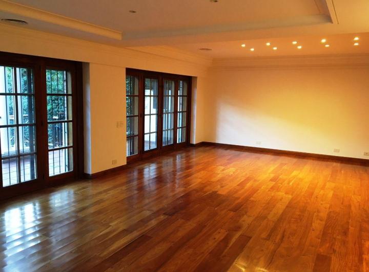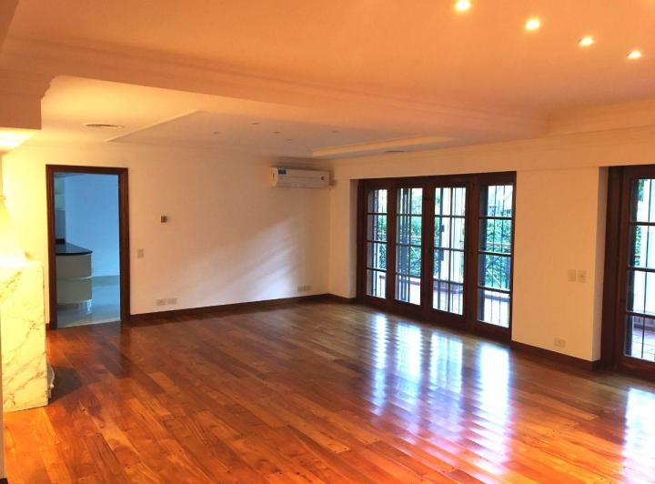 House for rent in Martínez with 5 rooms across 3 levels, built in exposed brick. Ground floor includes a reception hall, living and dining room with parquet floors, guest toilet, office, kitchen, and a daily dining area with access to the garden. Upper floor has a distribution hall and 4 bedrooms, including 2 en suite: the principal bedroom with a dressing area, full bathroom with Jacuzzi and sauna, and a junior suite with a full bathroom; the other two bedrooms are semi-suite. A playroom is on