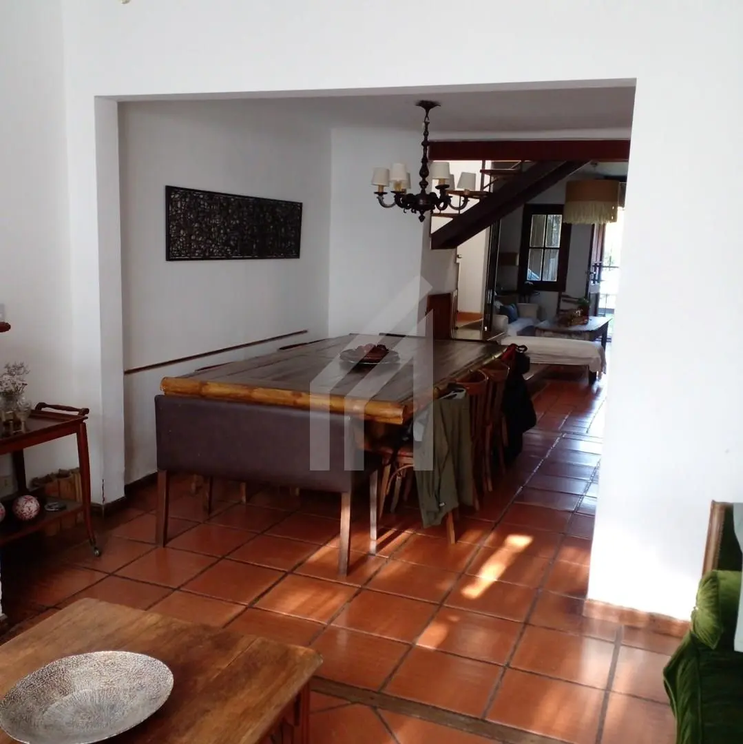 Chalet-style apartment over 2 floors in Martínez, San Isidro, with 4 bedrooms and fully furnished interiors. Upstairs there are 3 bedrooms and a full bathroom, plus 1 additional bedroom outside with its own bathroom. There is a covered and open gallery with a grill and dining area overlooking the garden, and a fenced pool for children and pets. The kitchen is fully equipped with a laundry area. The rental price includes all expenses except electricity; February 1st and 2nd half are offered at US