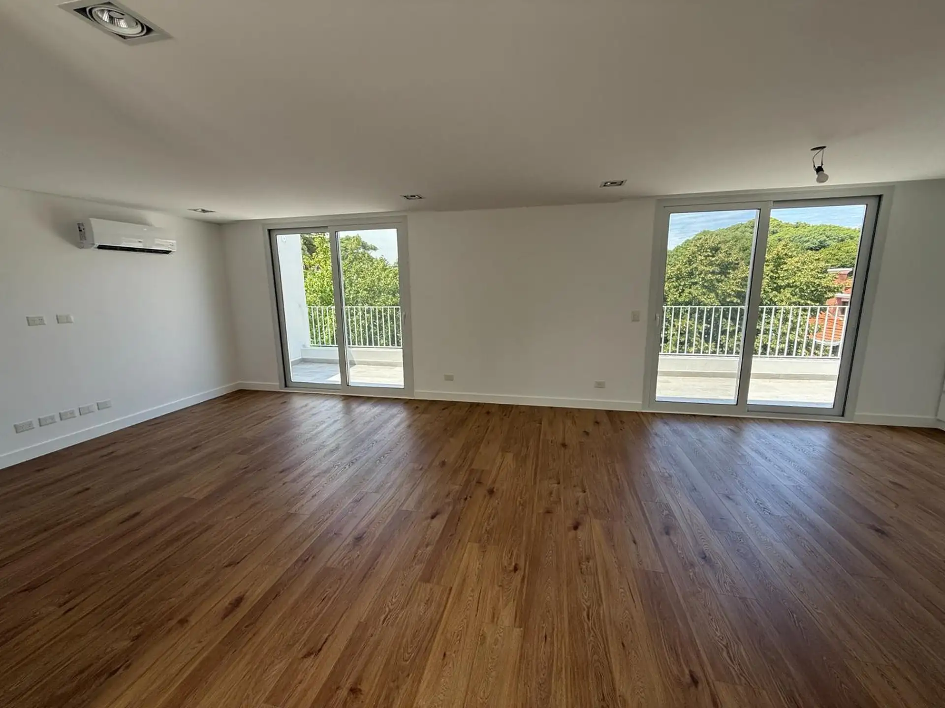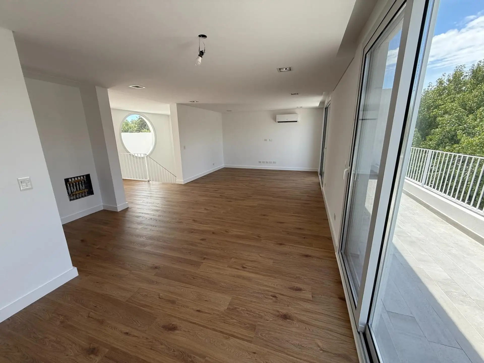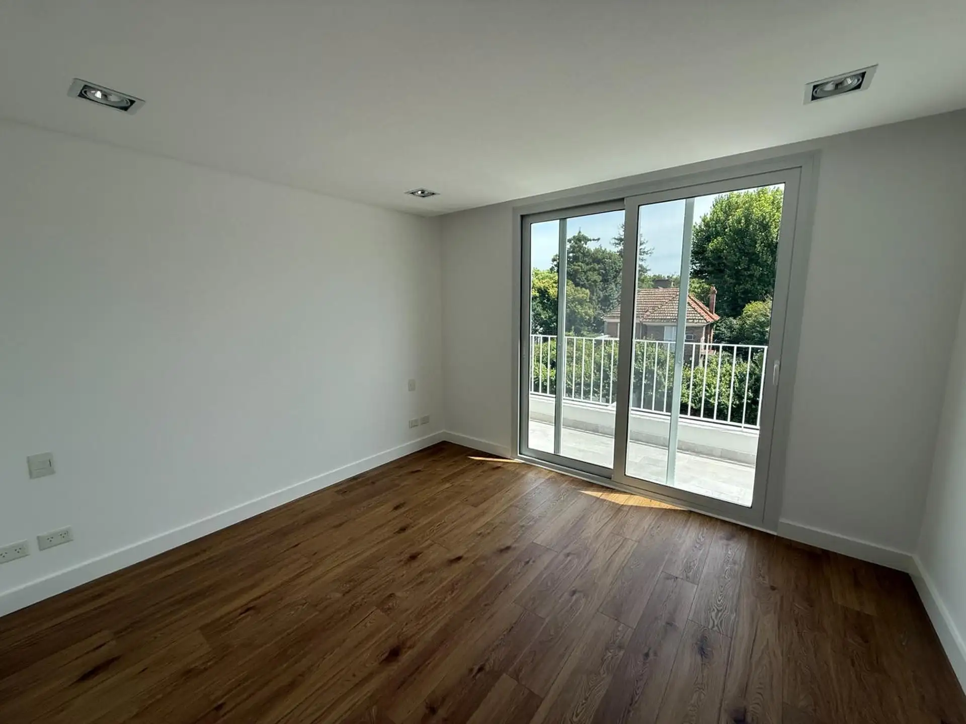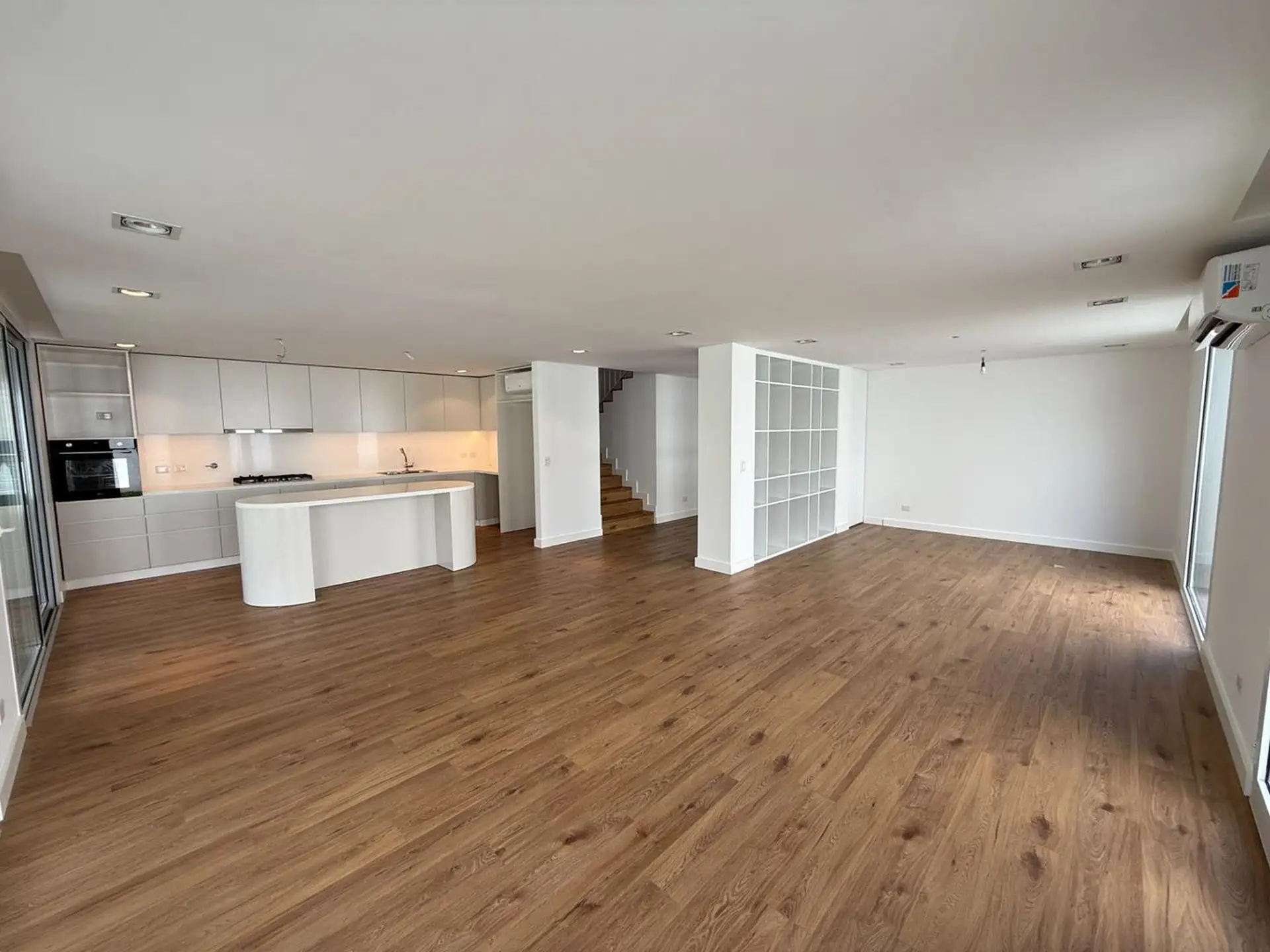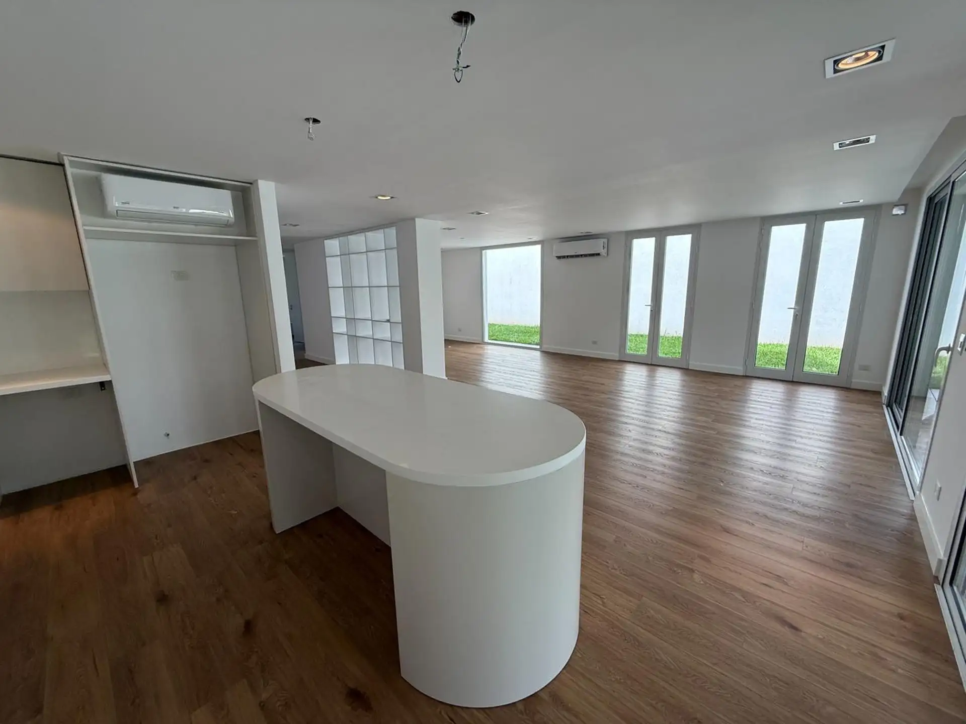 House for rent in Martínez (San Isidro Partido), 5 rooms, brand new. Ground floor has a reception hall, a living-dining room with air conditioning and access to the garden, an integrated kitchen with island, a guest toilet, laundry area, and a garage for 1 car (space for another at the entrance). Upper floor has a distribution hall, 3 en-suite bedrooms, all with air conditioning, plus a fourth en-suite bedroom with air conditioning and balcony access; there is also a playroom with air conditioni