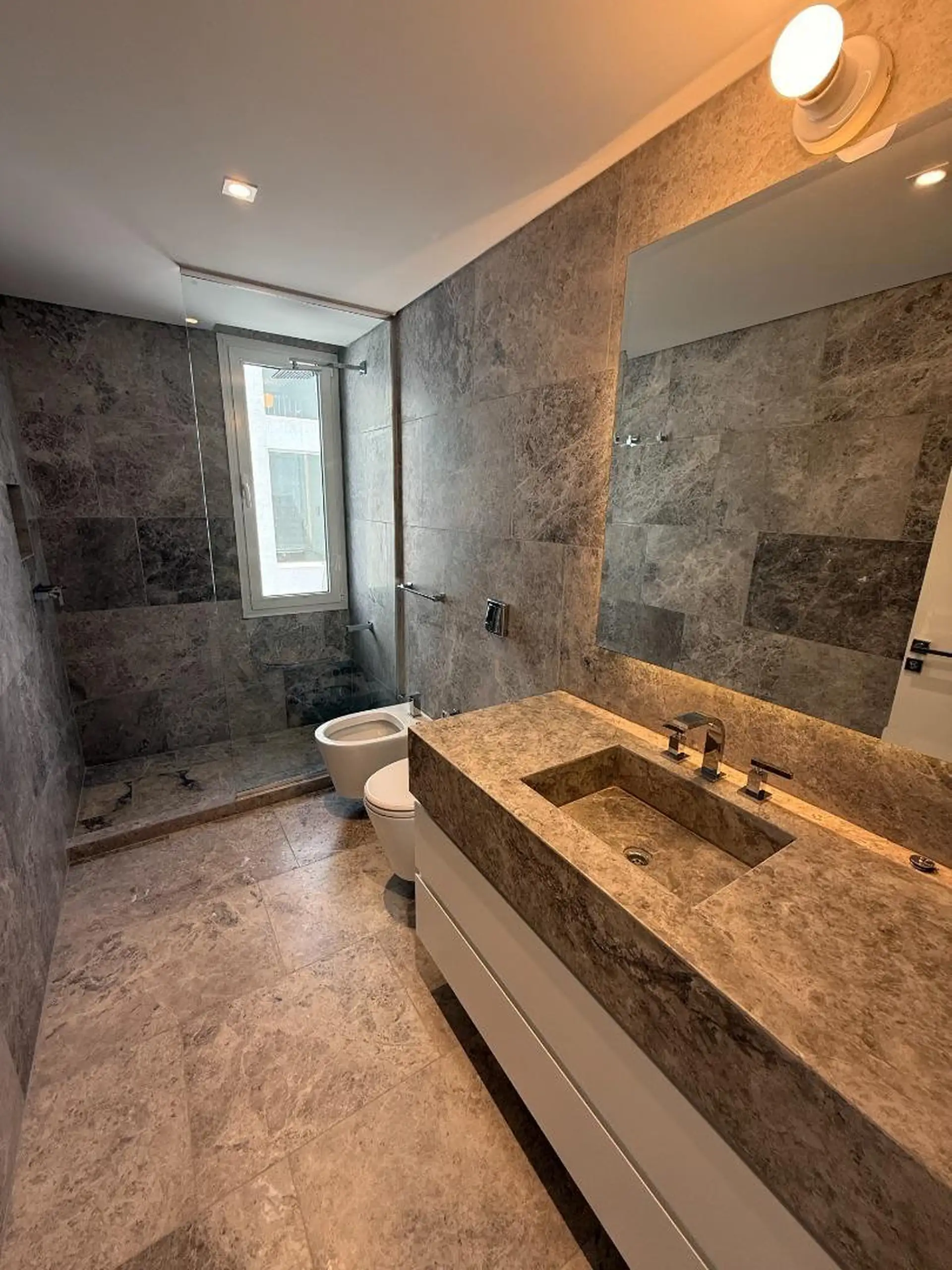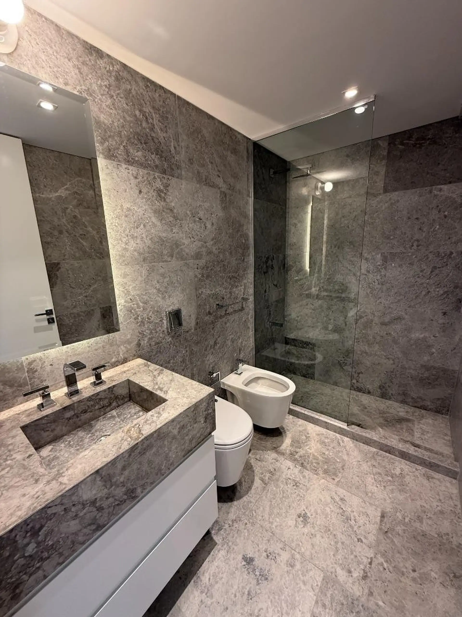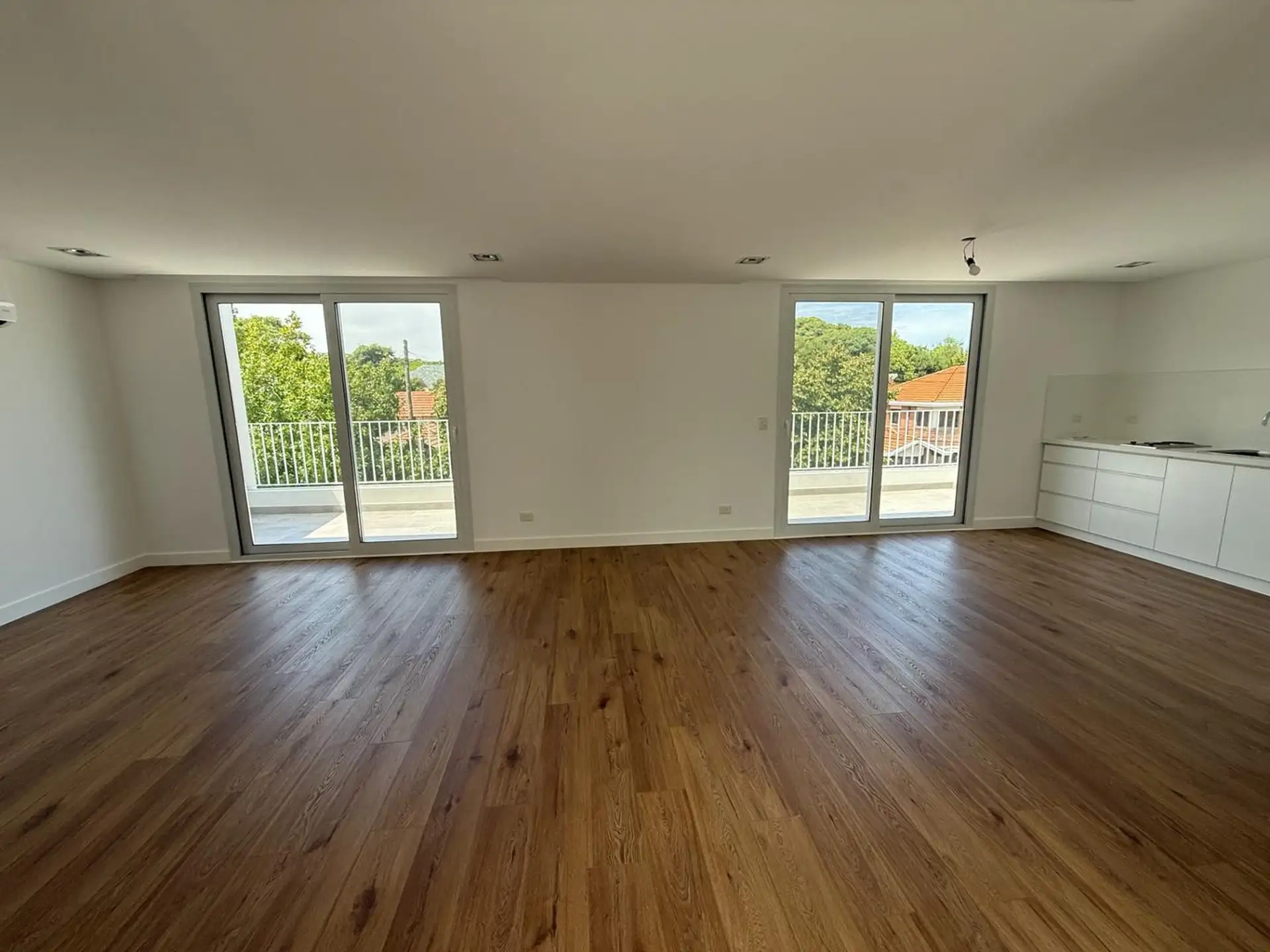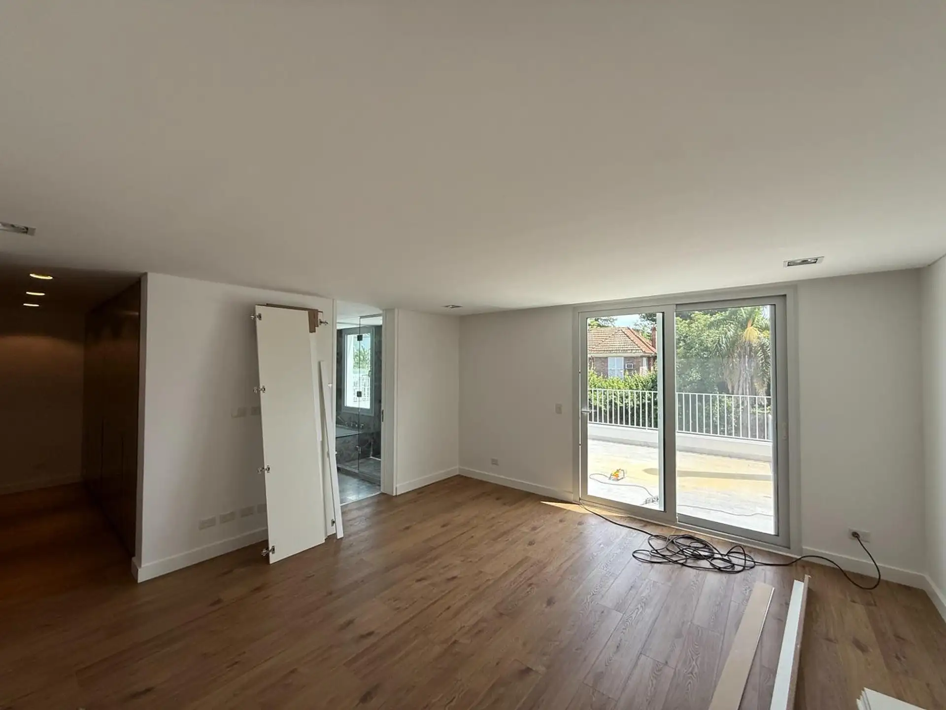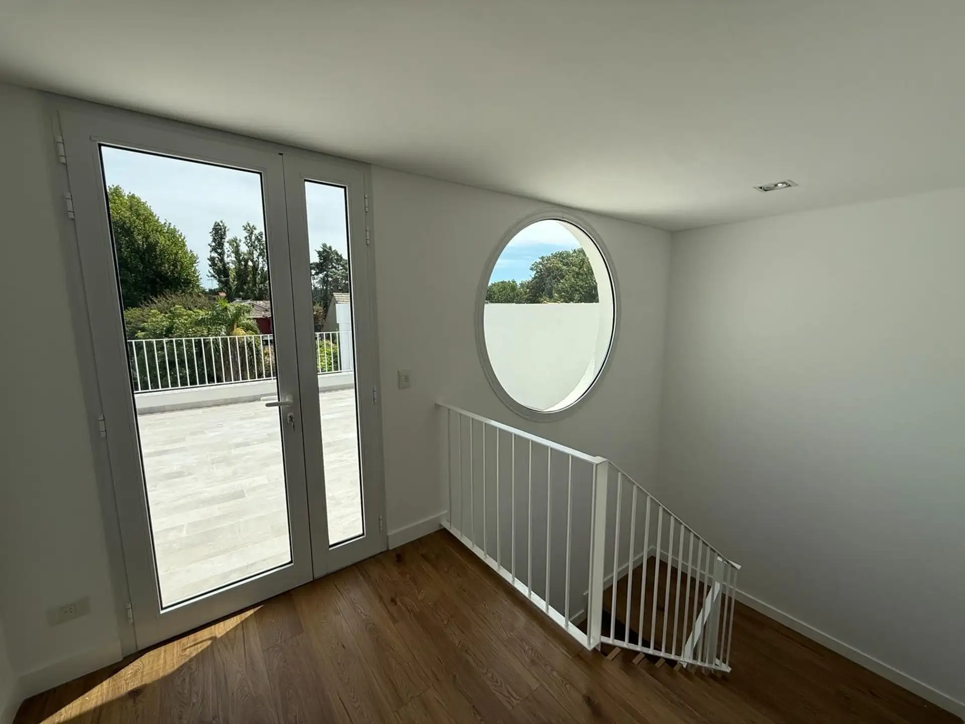 House for rent in Martínez (San Isidro Partido), 5 rooms, brand new. Ground floor has a reception hall, a living-dining room with air conditioning and access to the garden, an integrated kitchen with island, a guest toilet, laundry area, and a garage for 1 car (space for another at the entrance). Upper floor has a distribution hall, 3 en-suite bedrooms, all with air conditioning, plus a fourth en-suite bedroom with air conditioning and balcony access; there is also a playroom with air conditioni