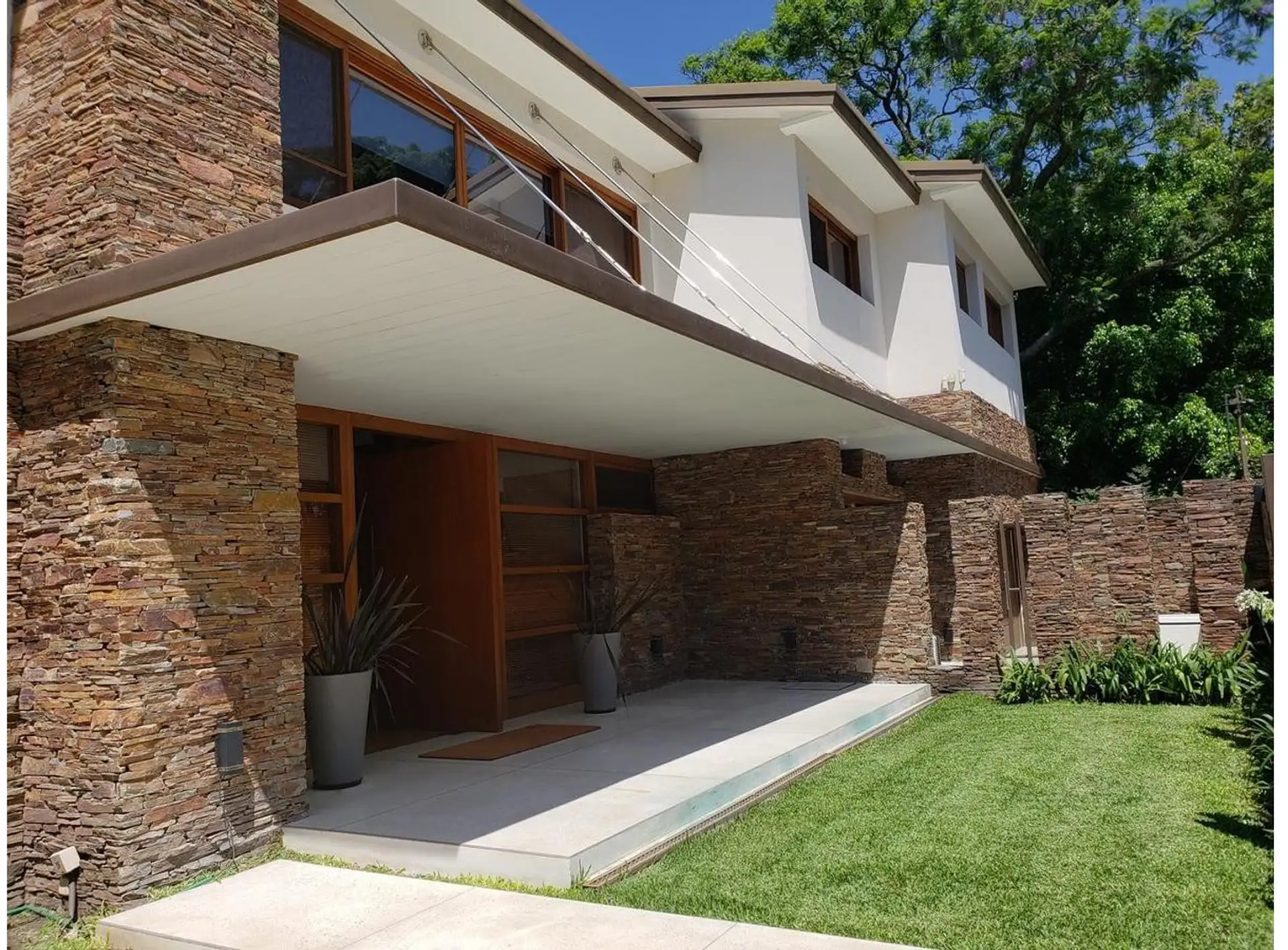 House with 4 bedrooms in Martínez, spread over two levels with central heating by radiant floor system. The main suite includes a dressing area, a Calacatta marble bathroom with double vanity and black Marquina marble countertop, a jacuzzi, and access to a balcony-terrrace with wood deck. The upper floor has a bright playroom with en-suite bathroom and access to the garden via an English patio, plus a wine cellar, laundry room, storage room, and machine room. The property includes a north-facing
