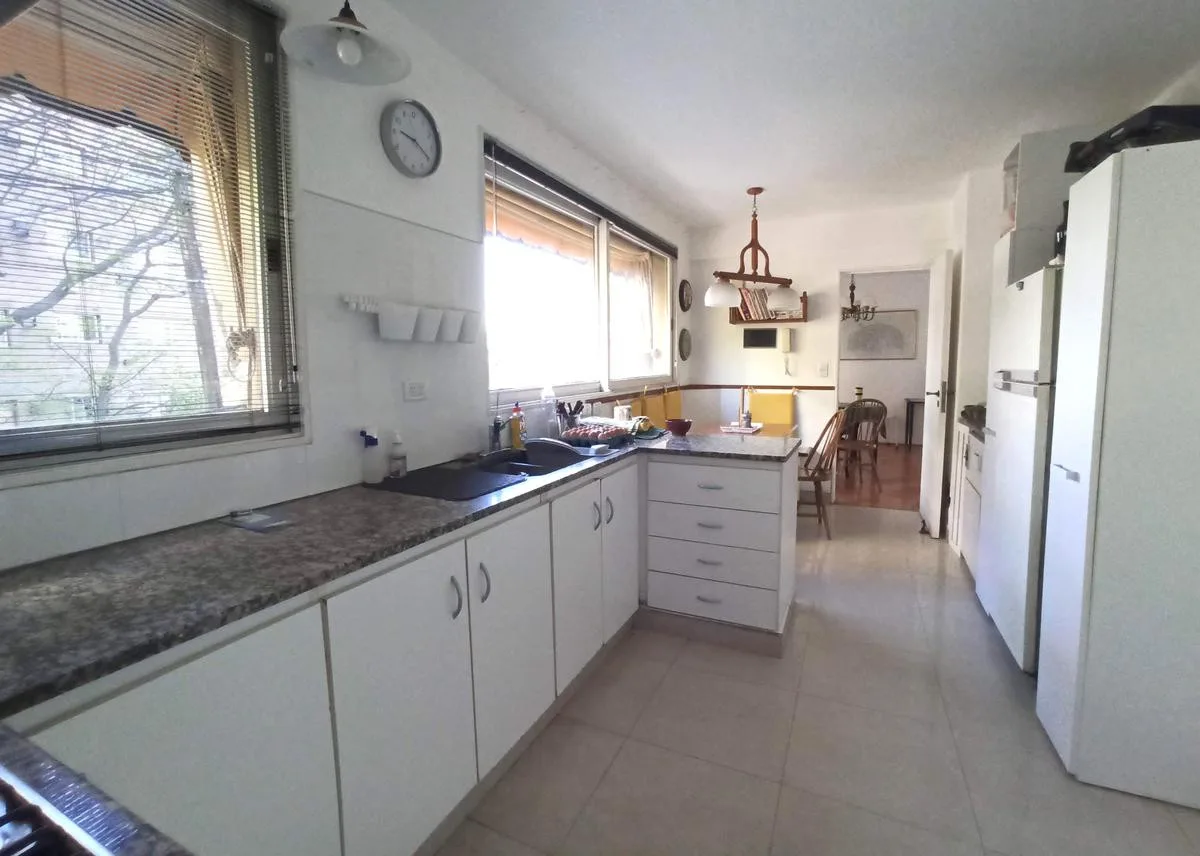 Apartment in a tower in Martínez, in Partido de San Isidro, on an interior block courtyard facing with cross ventilation. Private foyer with a key, plus service access via elevator and stairs. It has a living-dining room with a continuous balcony, electric blinds throughout the living-dining area, a reception closet and a guest toilet. The unit includes 4 bedrooms: the main bedroom is en suite with a shower, electric towel warmer (PEISA) and mirrored-door wardrobes, and has a side balcony; the o