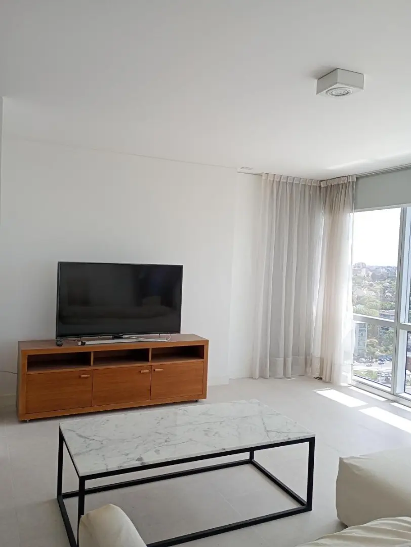 Apartment in the Complejo Alrio - Vicente López, in an exclusive residential tower. Furnished and equipped, with a living room with a balcony, a full kitchen, a bedroom with fitted wardrobes, a modern bathroom, and an (assigned) parking space. Building amenities include a 26-metre outdoor pool, a heated pool, gym, two communal rooms (SUM), residents’ lounge, sauna, microcinema, work zone, laundry, a kids’ area, pet-wash area, and 24-hour security. Long-term lease; proof of income, property guara