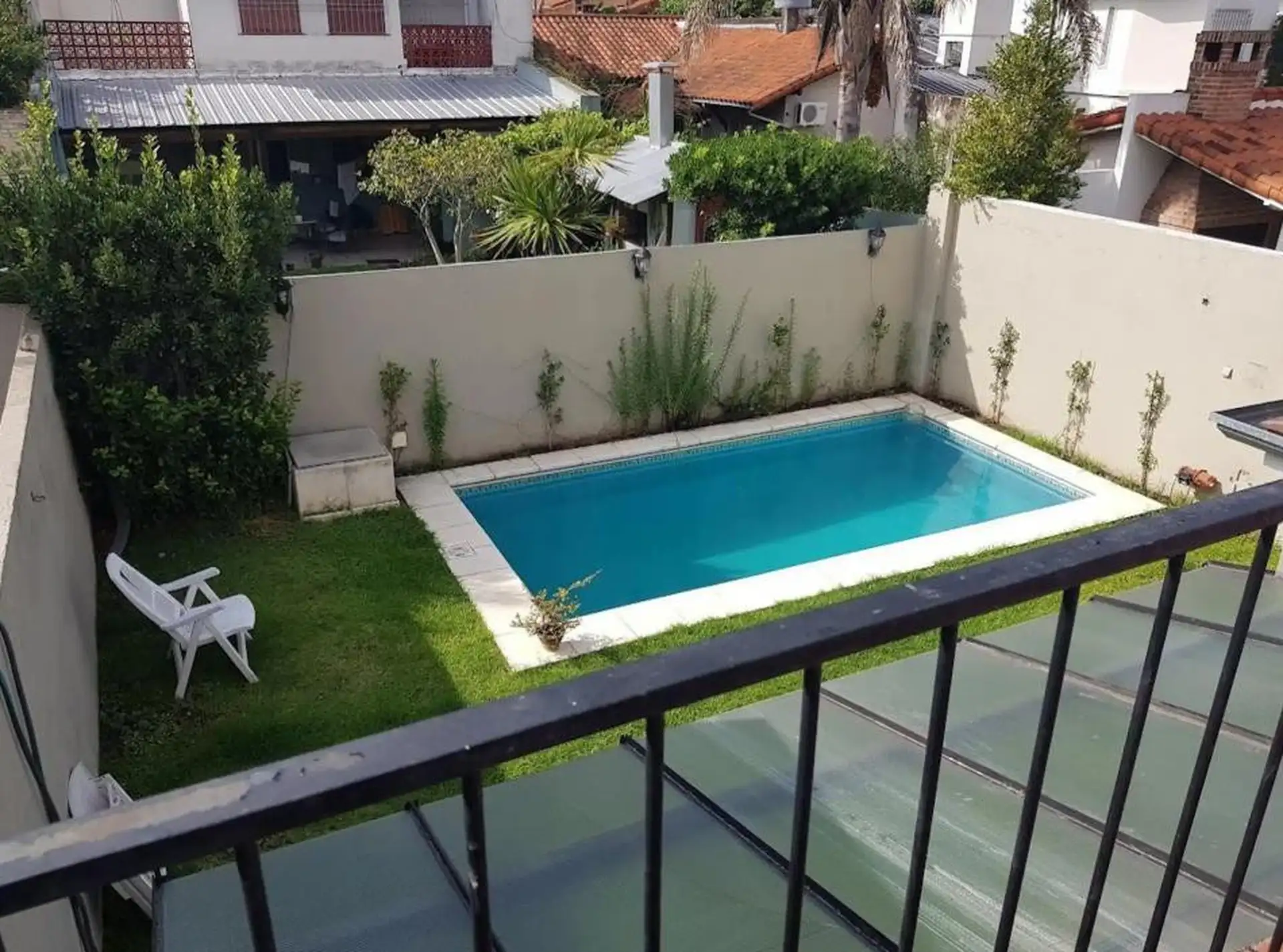 Unfurnished two-storey, five-room house with a garden and pool in Olivos (Vicente López). It has a north orientation and is available from 1 June; viewings are scheduled for the second half of May. Ground floor includes a reception hall, living-dining room with porcelain floors, dining kitchen with a grill, a living/reading area with access to the patio, garden and pool, an independent laundry room, garage, a storage room and double circulation. Upper floor has a distribution hall, a master bedr