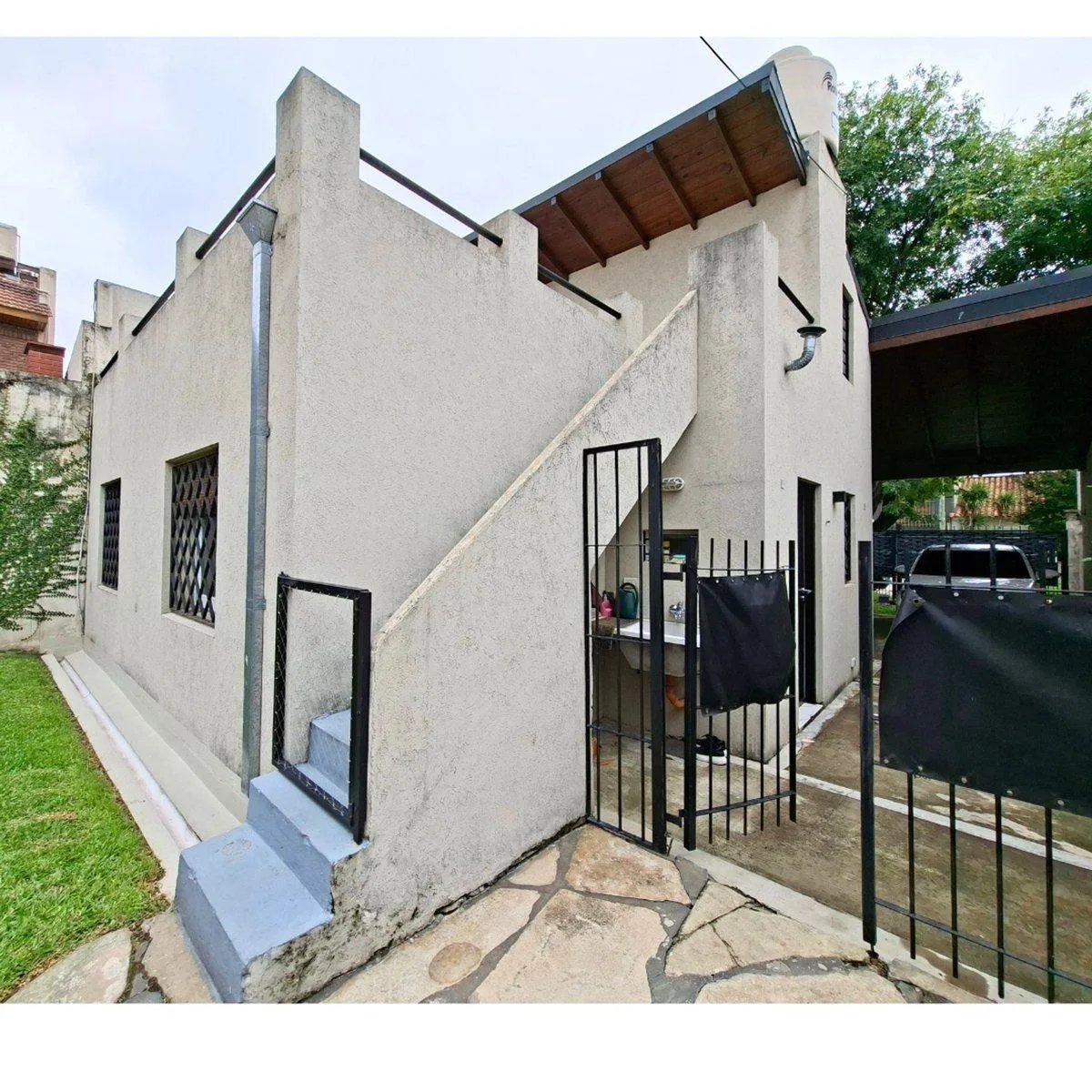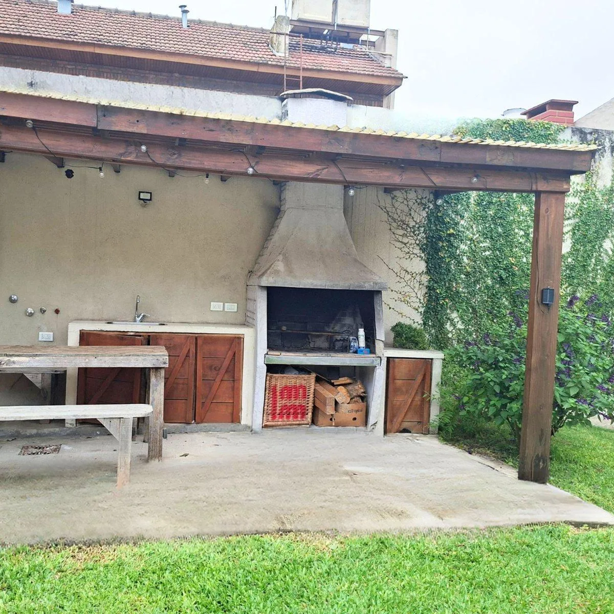 House for rent in Olivos with 4 bedrooms. The main unit has 2 bedrooms, a living-dining room, a separate kitchen, a full bathroom, a separate laundry room and an attic suitable as a third bedroom or office. At the rear of the property there is a second independent unit with 2 bedrooms, a kitchen and 2 bathrooms. Exterior features include a covered gallery with pergola and a grill with sink, plus a terrace and garden. Covered parking with automatic gate, ceramic, porcelain and floating floors, al