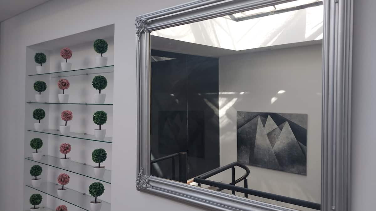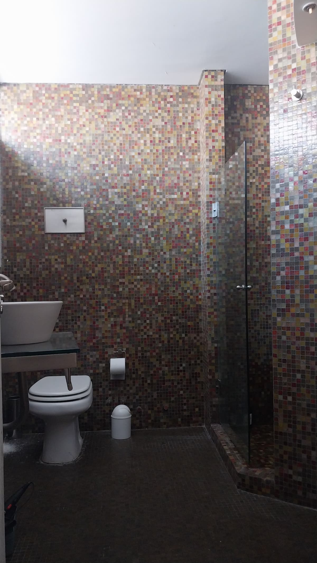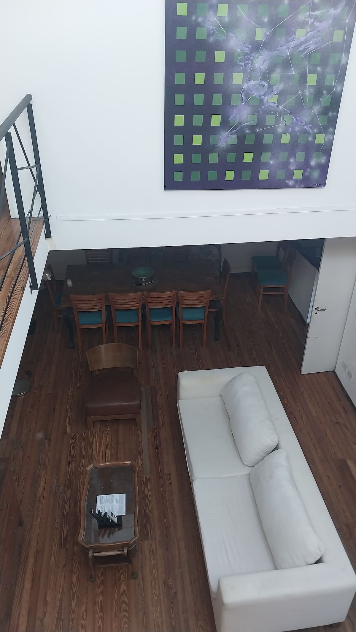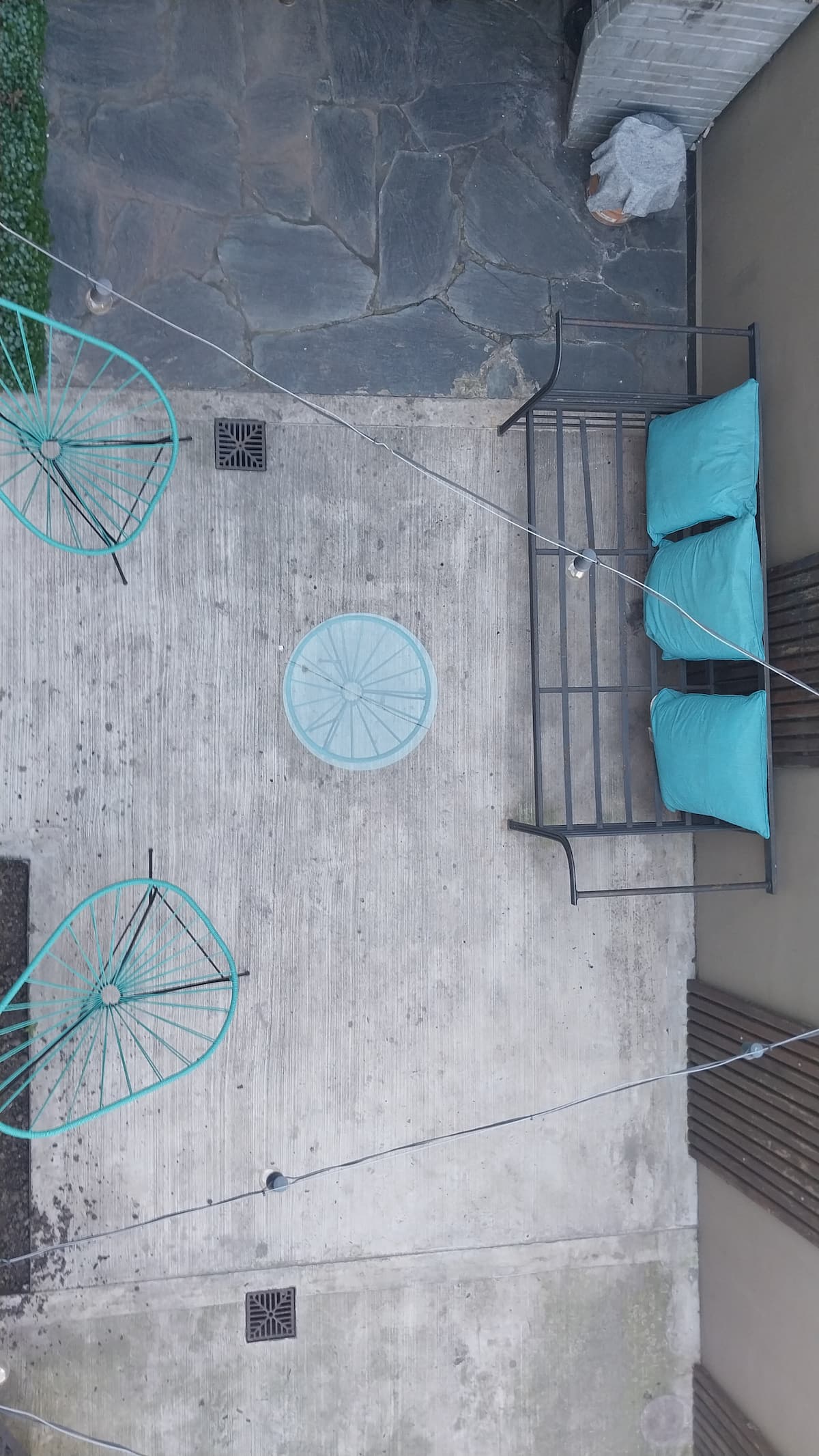 House-style apartment in Palermo Soho for up to 12 people, with a ground-floor patio and a covered grill. It includes a full kitchen with oven, microwave, Nespresso coffee maker, toaster, blender, and tableware, plus a living/dining room with air conditioning and a smart TV with cable. There are 4 bedrooms distributed across the ground floor, a first-floor level reached by stairs, and an independent annex accessed from the patio by a steep staircase; the annex is not suitable for people with red