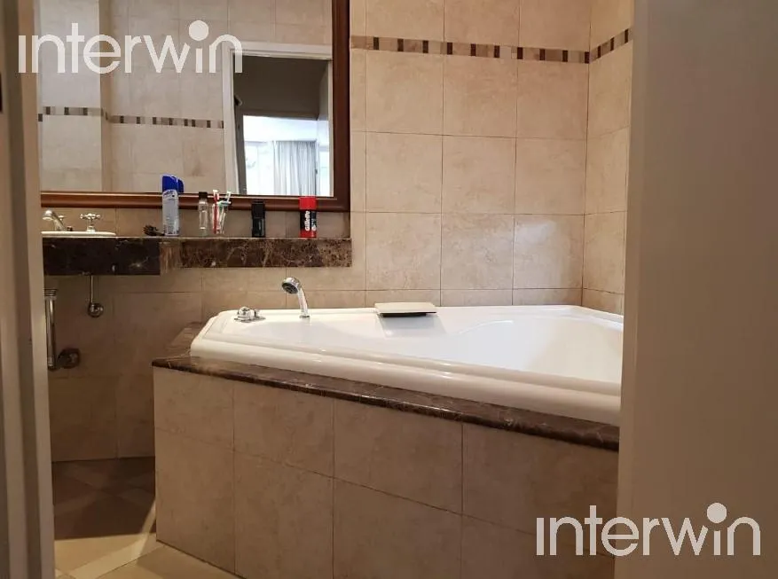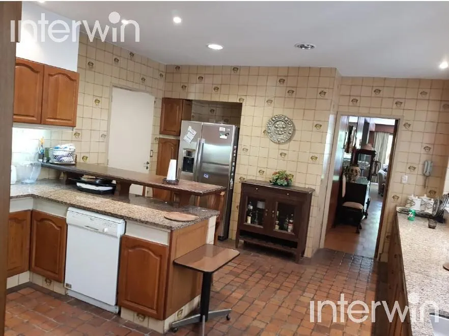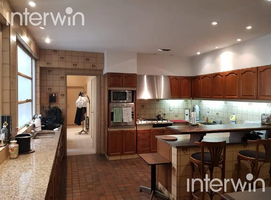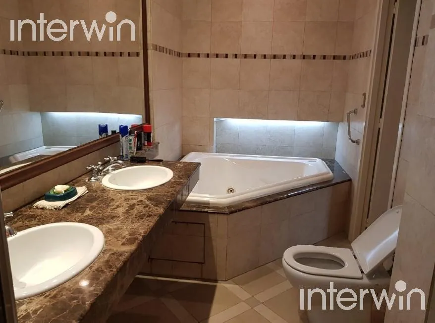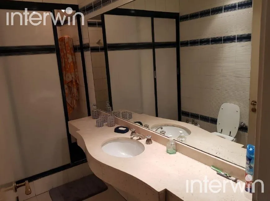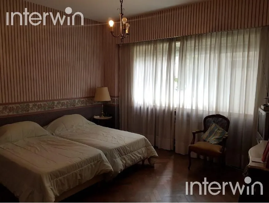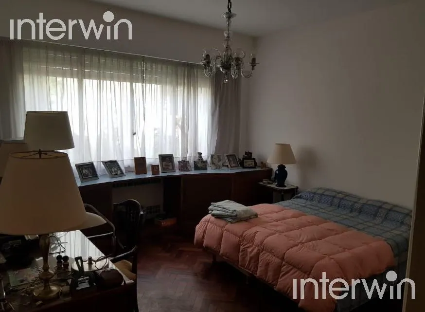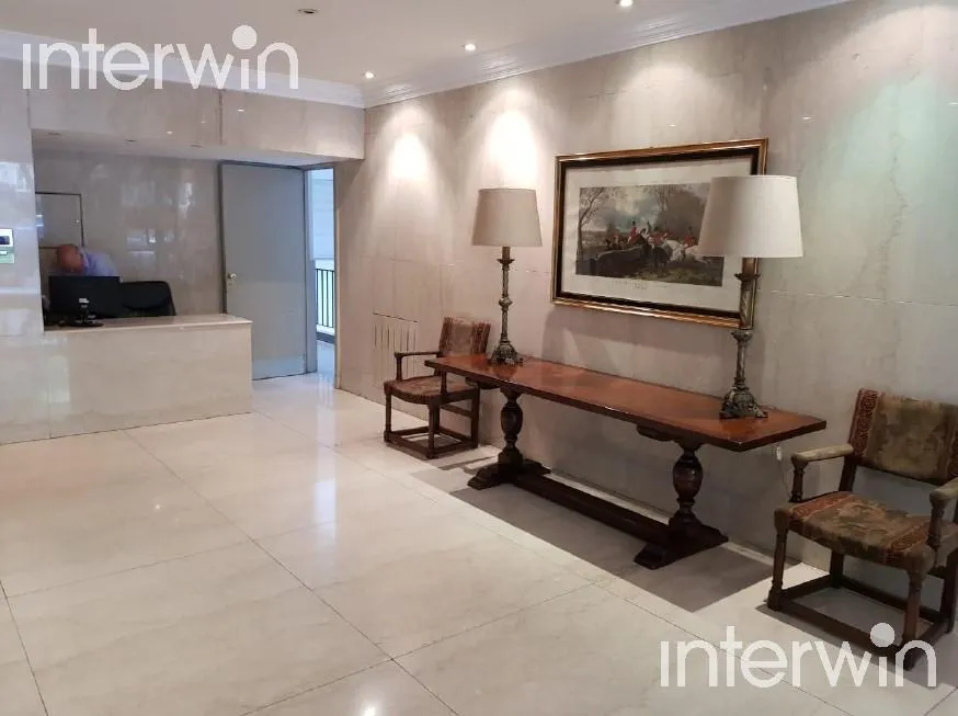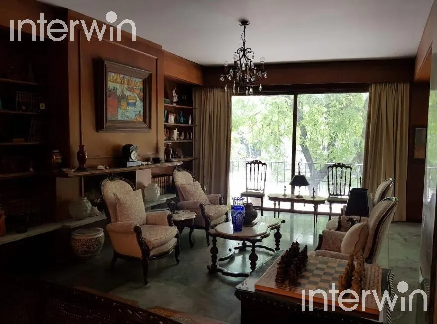 Furnished and equipped five-room apartment with a balcony in Palermo. 400 m² covered, with a living-dining area opening to a long balcony. One en-suite bedroom faces the street, plus 3 additional bedrooms with built-in closets. There are 2 bathrooms and 1 guest toilet, a staffed-service area with bathroom, a kitchen with a breakfast bar and a daily dining area, and a laundry area with separate circulation. The unit has a main entrance with a reception area and a service entrance, plus two parkin