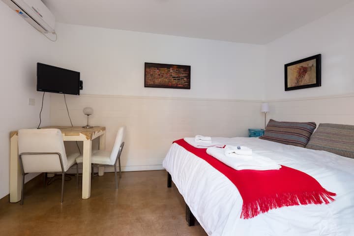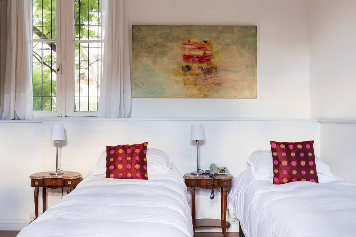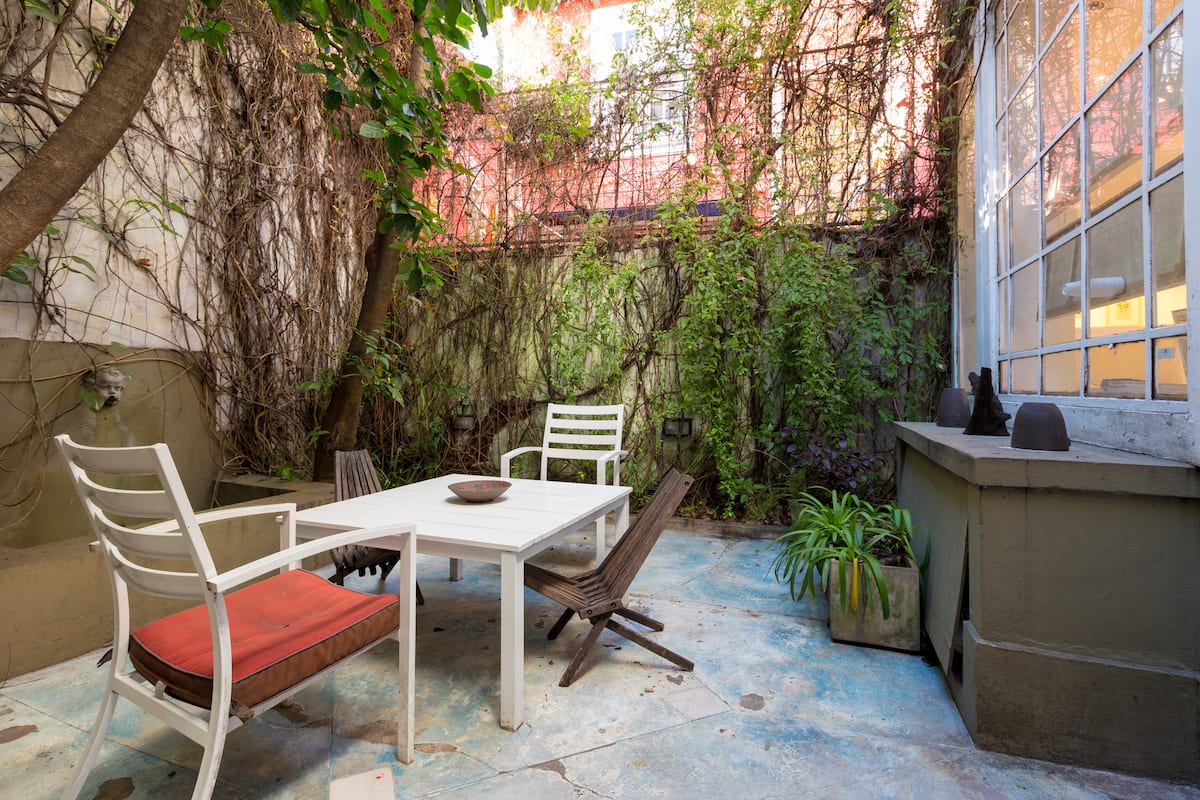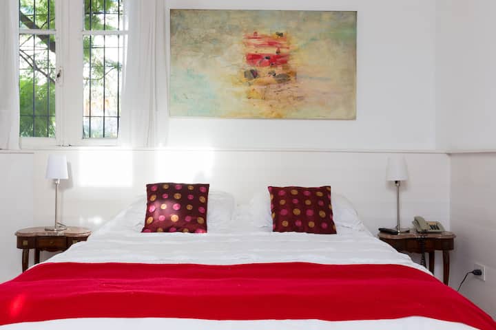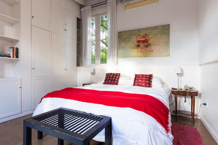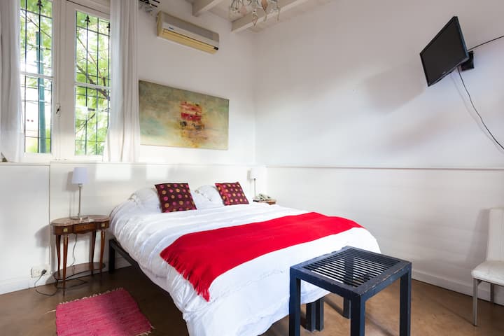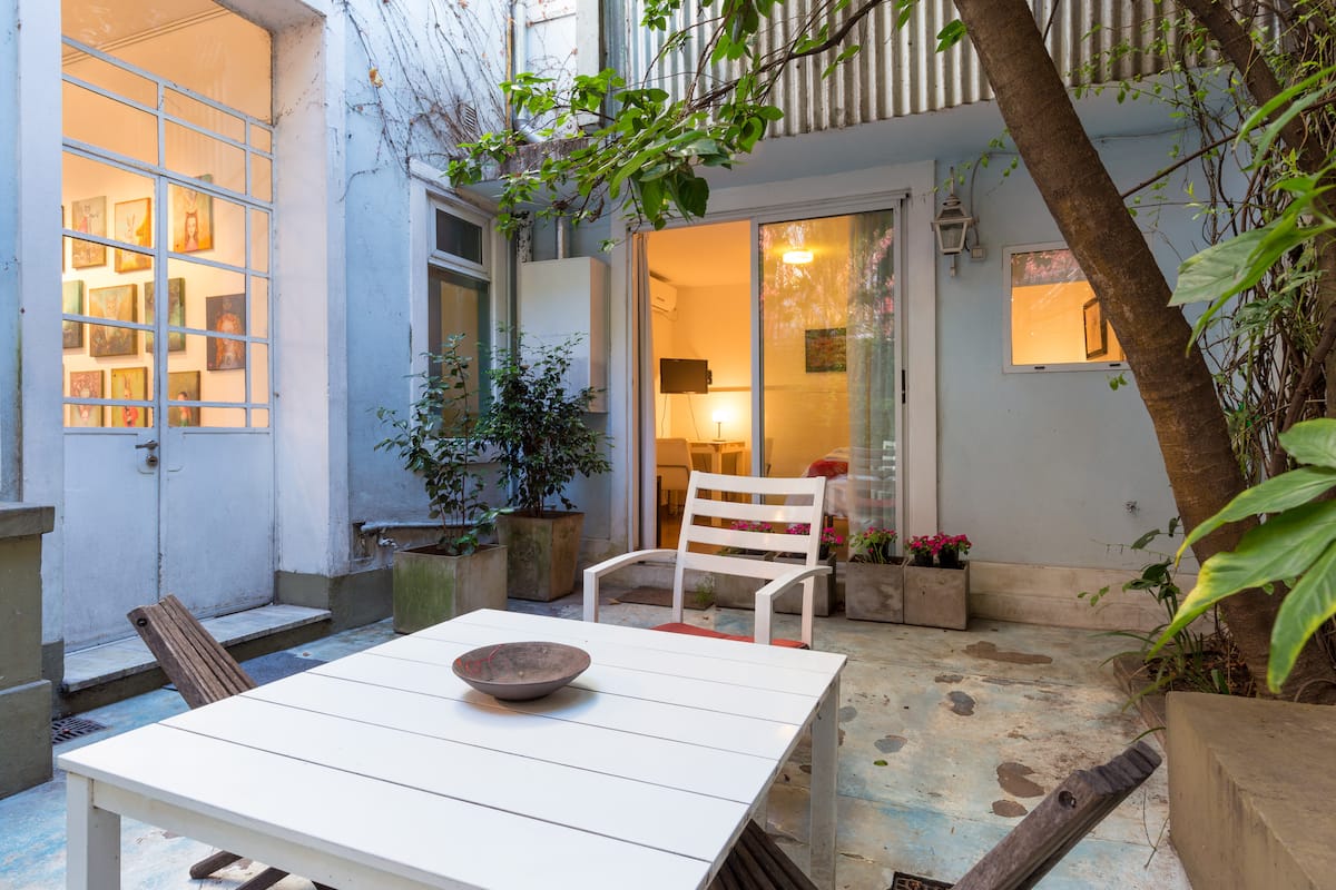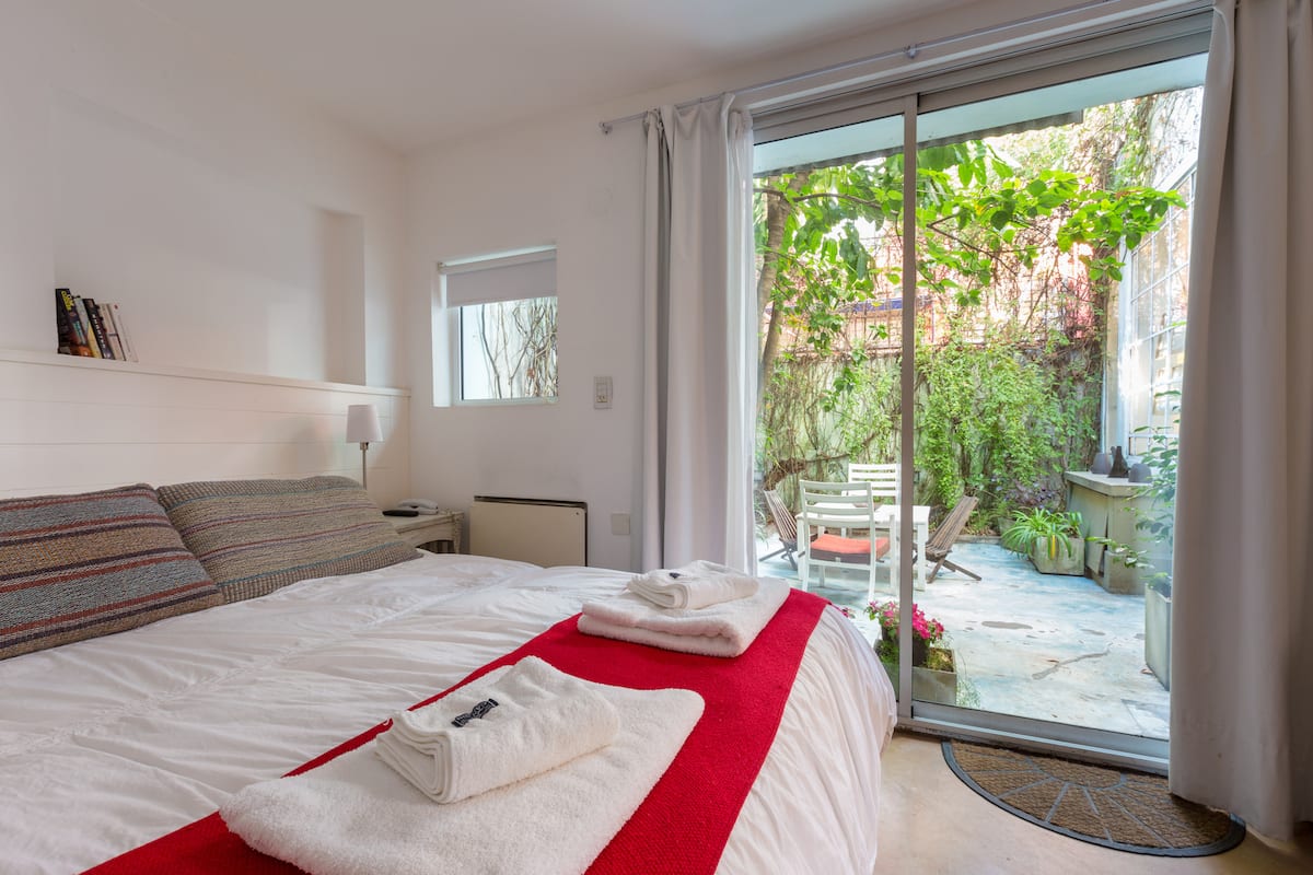 Set in a recently renovated house, this property in Palermo is arranged as three apartments: a ground-floor garden studio with private access to the interior courtyard, and two first-floor units overlooking the garden. The Jacaranda Suite is a 2-room apartment with a private bathroom with a bathtub and a pre-bathroom, with sleeping options including a queen bed or 2 twin beds in the main bedroom and another room that can be used as a second bedroom with twin beds or a queen bed; an extra bed can