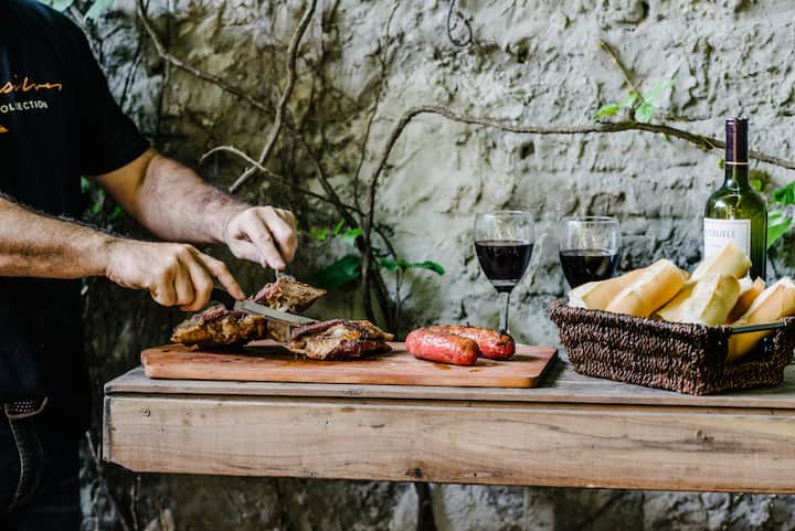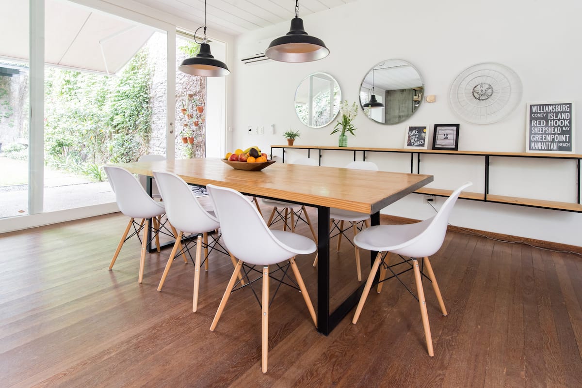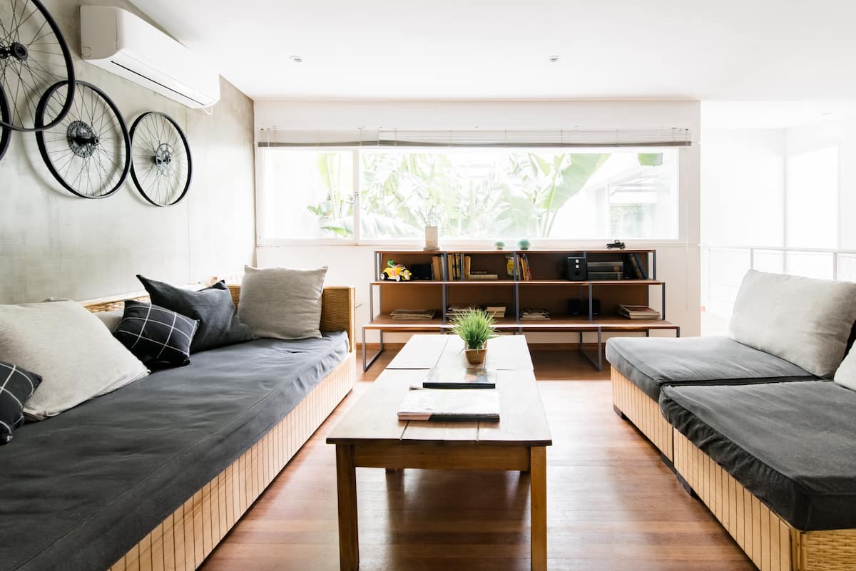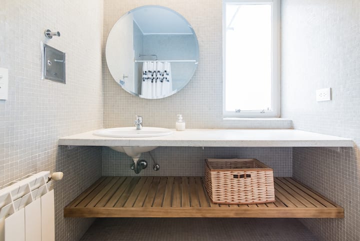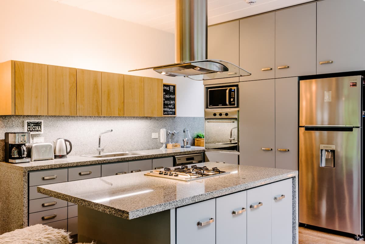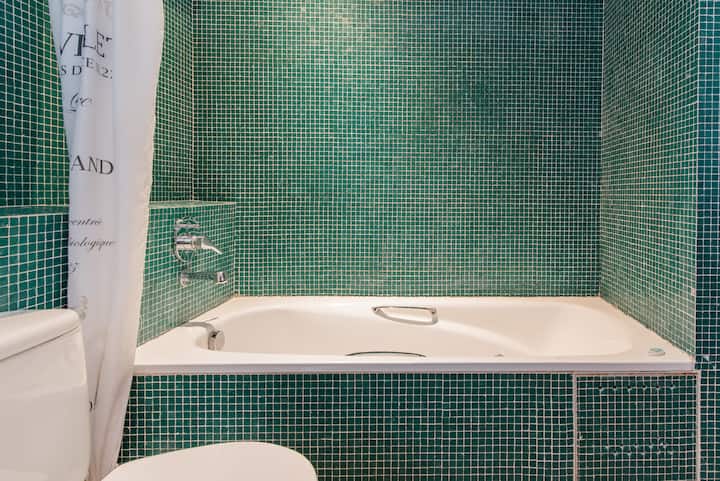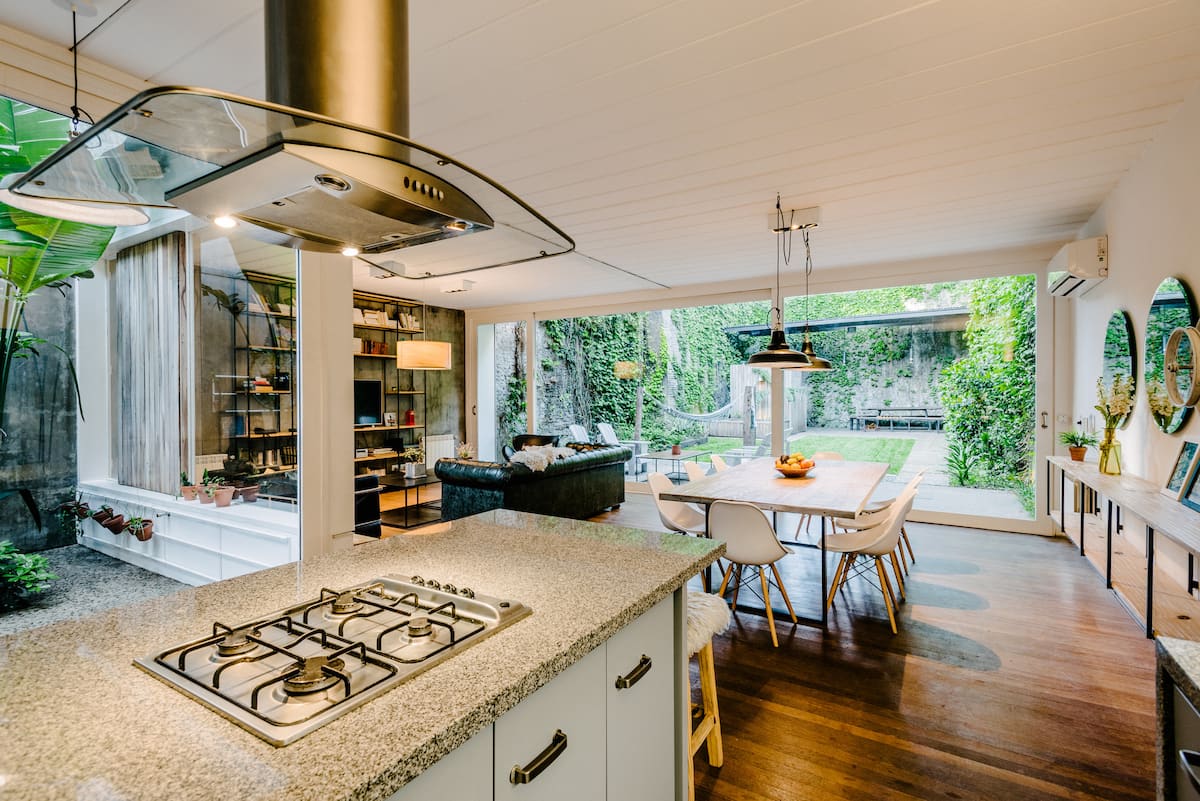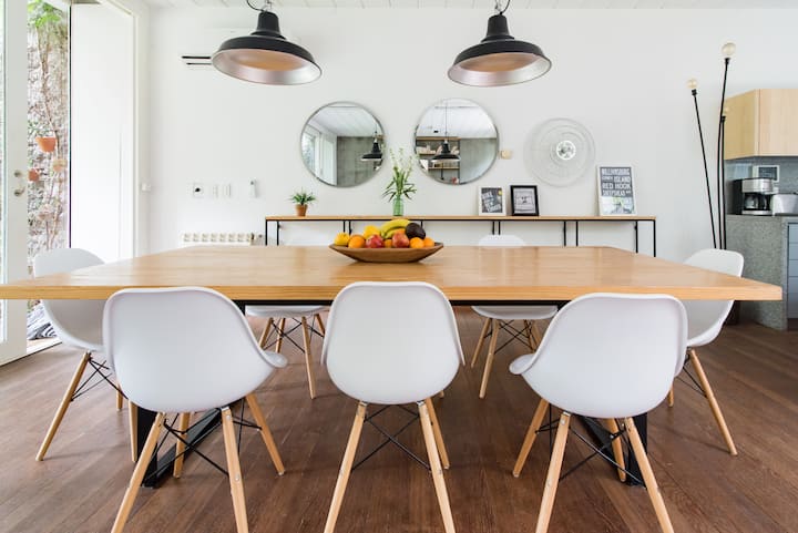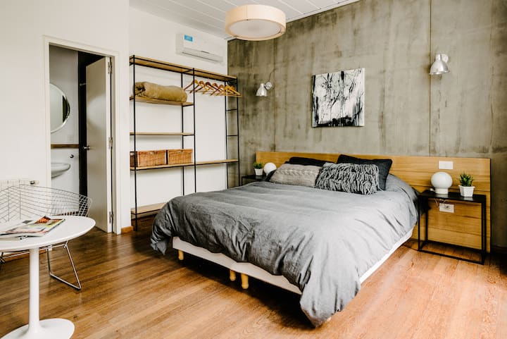Two-storey apartment house in Palermo with 4 bedrooms and a private garden. The ground floor has a living room, kitchen-dining room with a patio and garden view, plus a barbacue area and mini pool. A suite with a king-size bed is on the first floor, along with laundry and a garage. The second floor includes a master bedroom with king-size bed, an en-suite bathroom with jacuzzi and access to a terrace, two guest bedrooms sharing a bathroom, and a second, more private living room area.