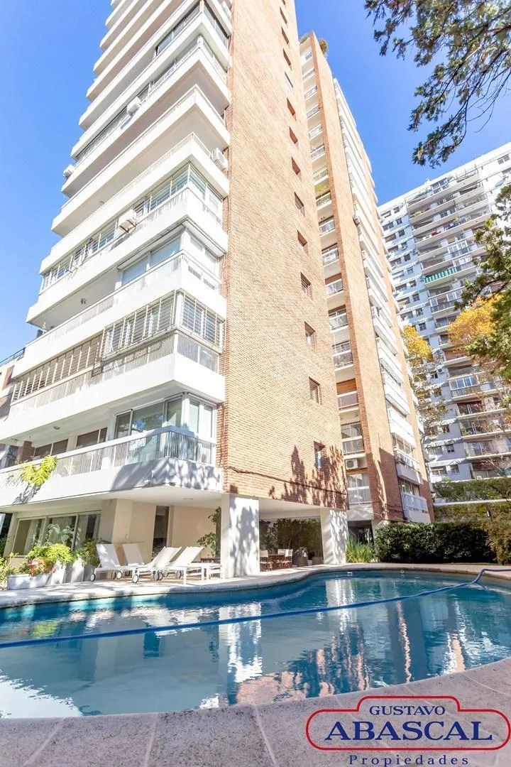 Apartment on a high floor in Palermo, unfurnished. Four to five bedrooms, including two en suite, with 3 full bathrooms, a living and dining area, an intimate sitting room, a family room, a study, and a reception area with a toilet. Street-facing features include a terraced balcony and new PVC with double-glazed windows (DVH), parquet floors, and reinforced doors. Building amenities include a pool, gym, communal room (SUM), solarium, garden, and 24-hour security, plus a standby generator. The un