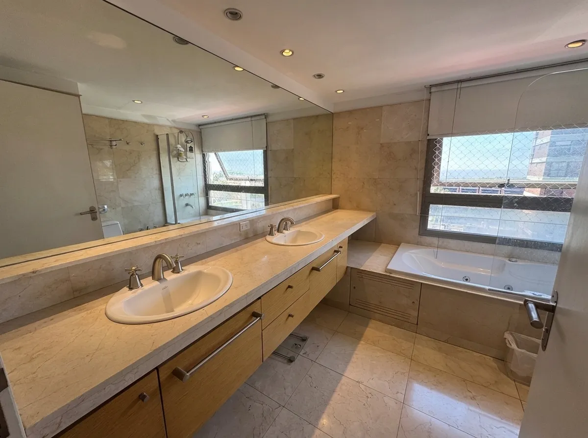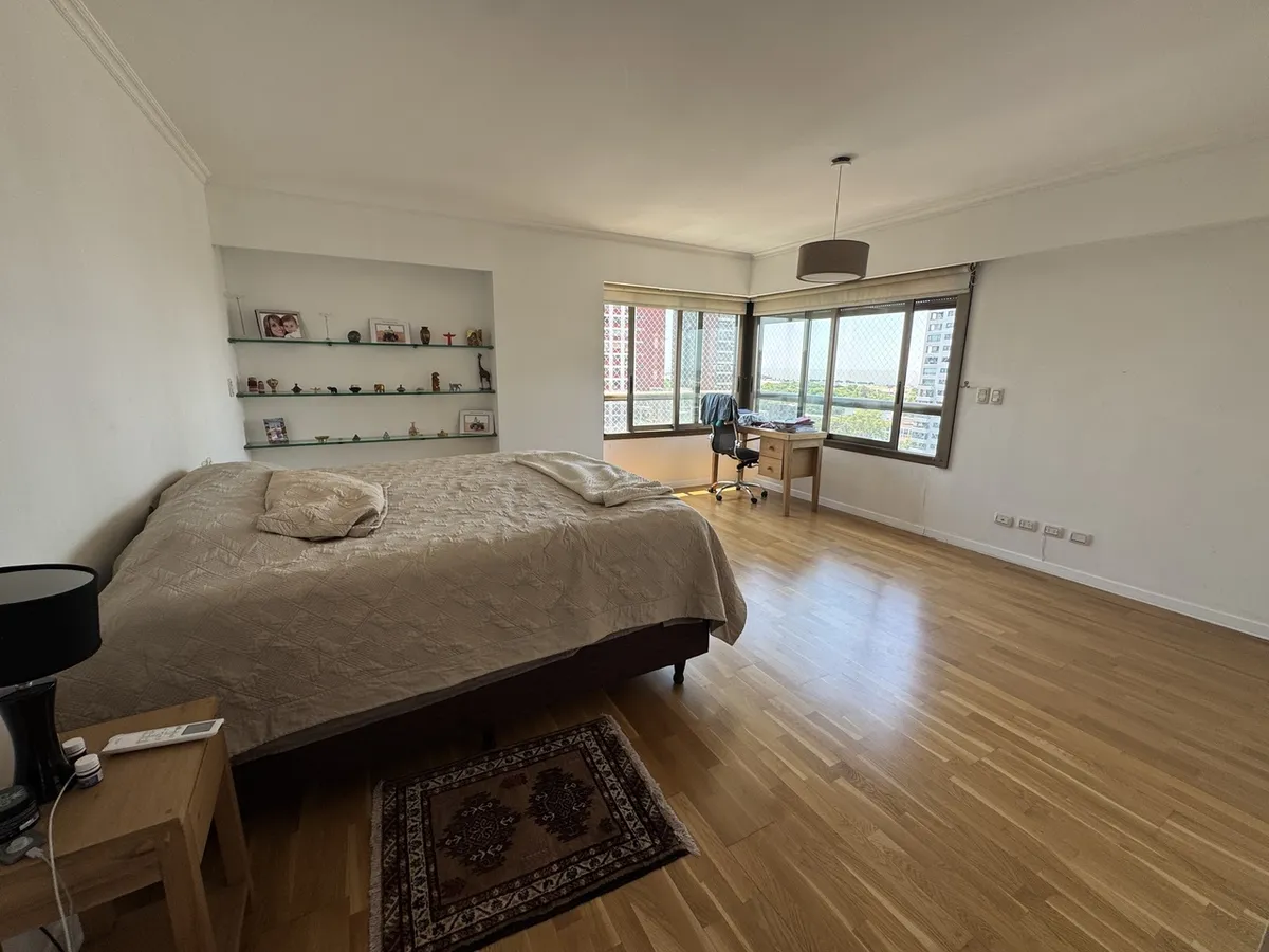 Semi-floor (semipiso) apartment with 5 rooms, including 4 bedrooms, on a high floor in Palermo. It has city and river views, a street-facing balcony with enclosure, two (assigned) parking spaces and two toilets. The living-dining area connects to the balcony, and there is a family room that can be used as an office or cinema room. The suite master bedroom has a walk-in closet and a full bathroom with hydromassage with river views; the second and third bedrooms each have built-in wardrobes and fu