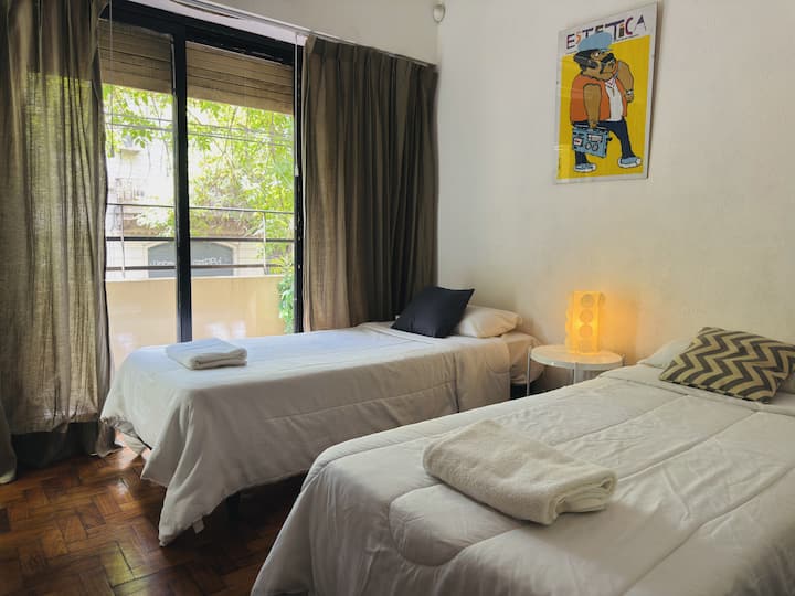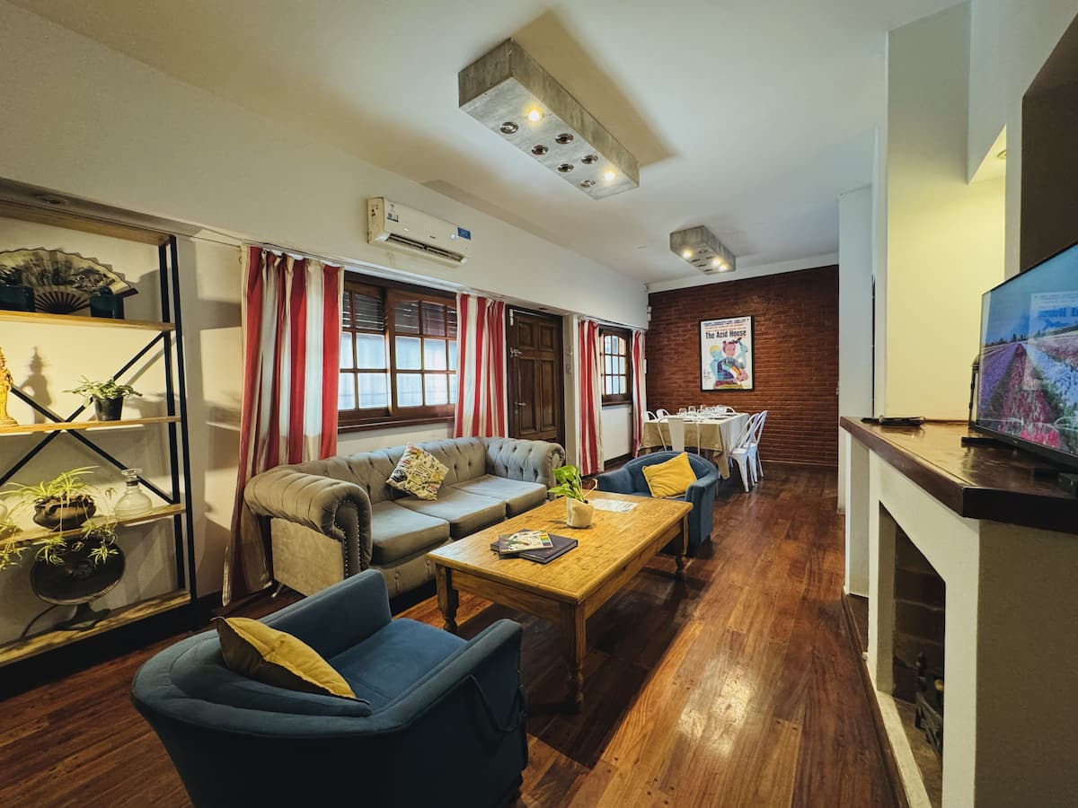 House in Palermo with 4 bedrooms spread over 3 floors. The ground floor has a main kitchen, living and dining room, a toilet and a gas fireplace. The first floor has three bedrooms and a full bathroom. The second floor includes a private terrace with a grill and a winter garden with a kitchenette, living room and toilet; the floors are connected by stairs. The property is on Calle Honduras near Plaza Serrano and Armenia in under 10 minutes on foot, and within walking distance of the Plaza Mafald