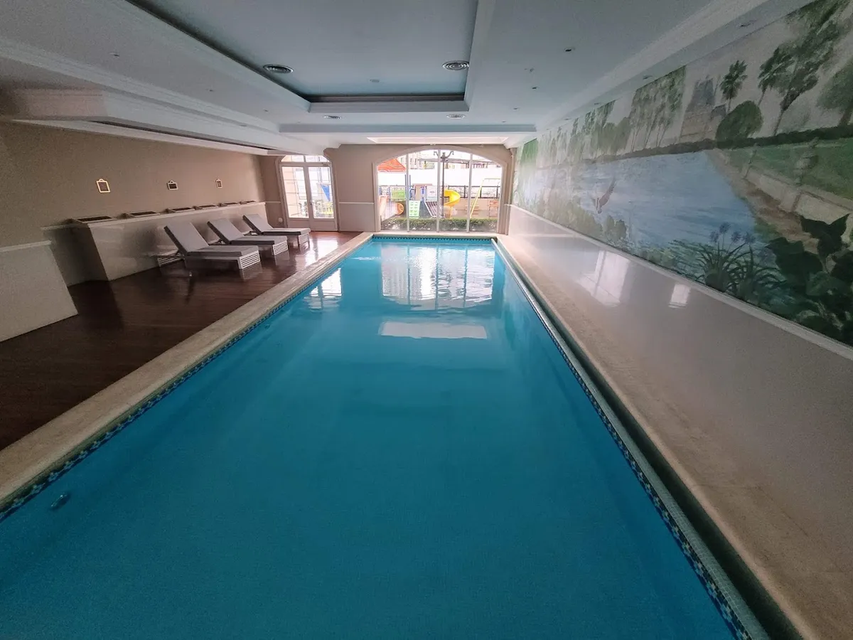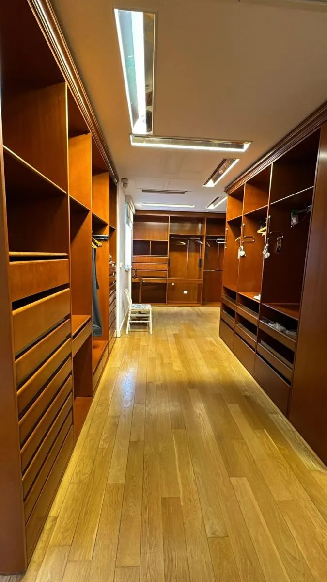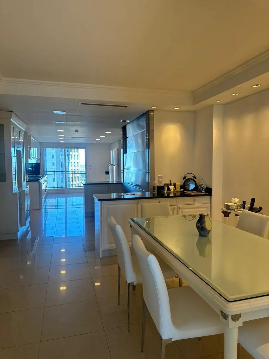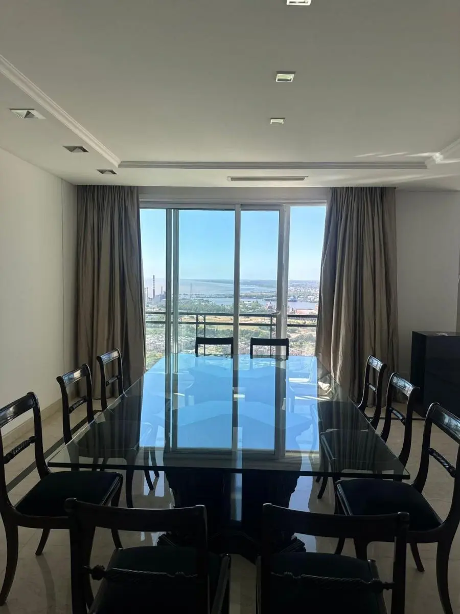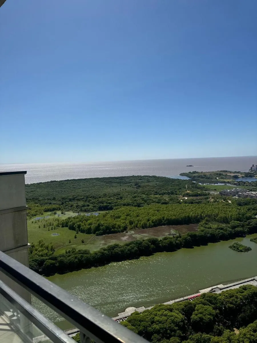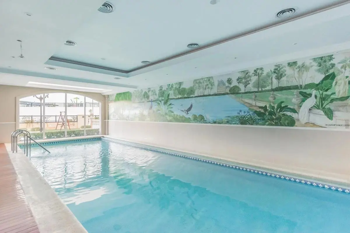 Duplex apartment in Chateau, Puerto Madero, arranged over two floors with a private lift and open views. Building amenities include a party room, communal room, music room, micro-cinema, bar lounge, tennis court, outdoor play area, and a fitness and gym room with an outdoor deck. Additional facilities include massage rooms, dry and wet saunas, a heated indoor pool with hydromassage, and an outdoor pool with a solarium.