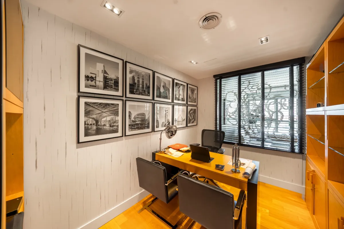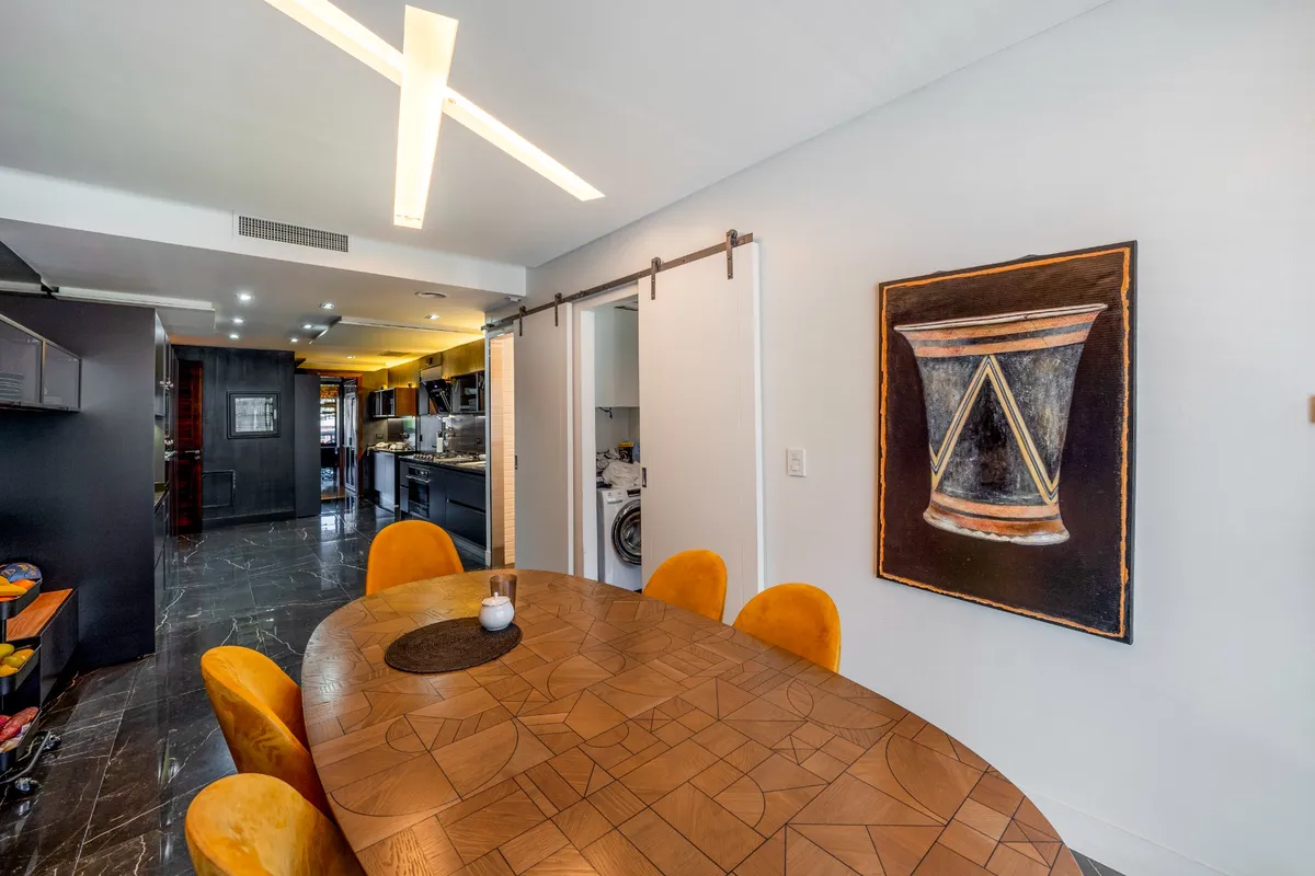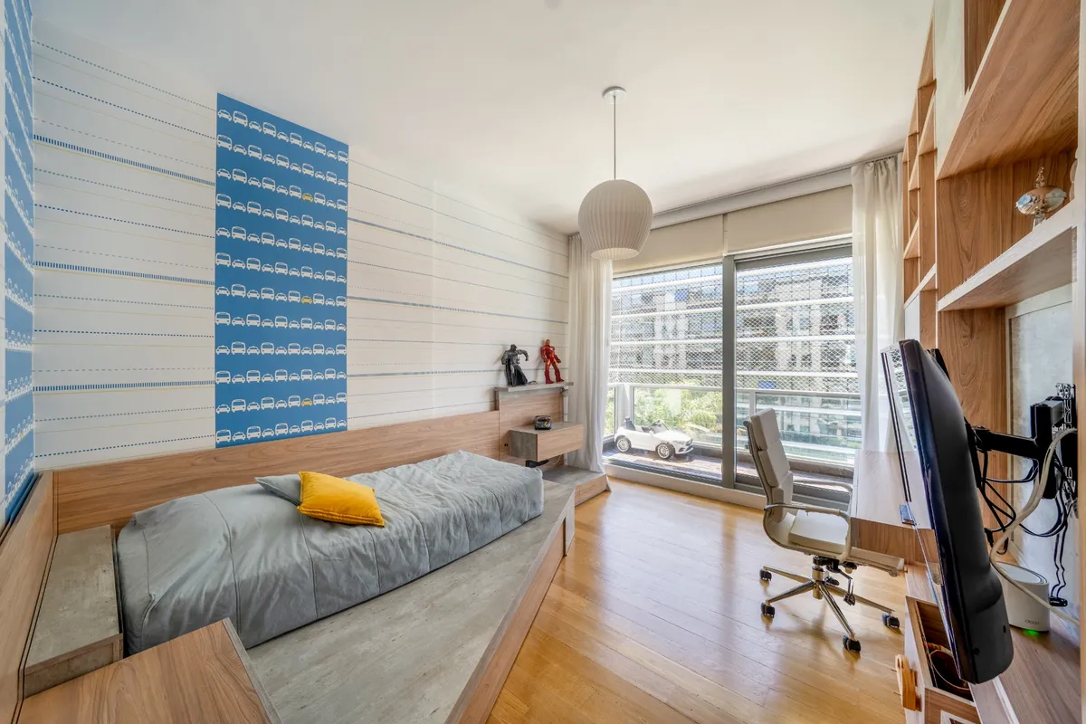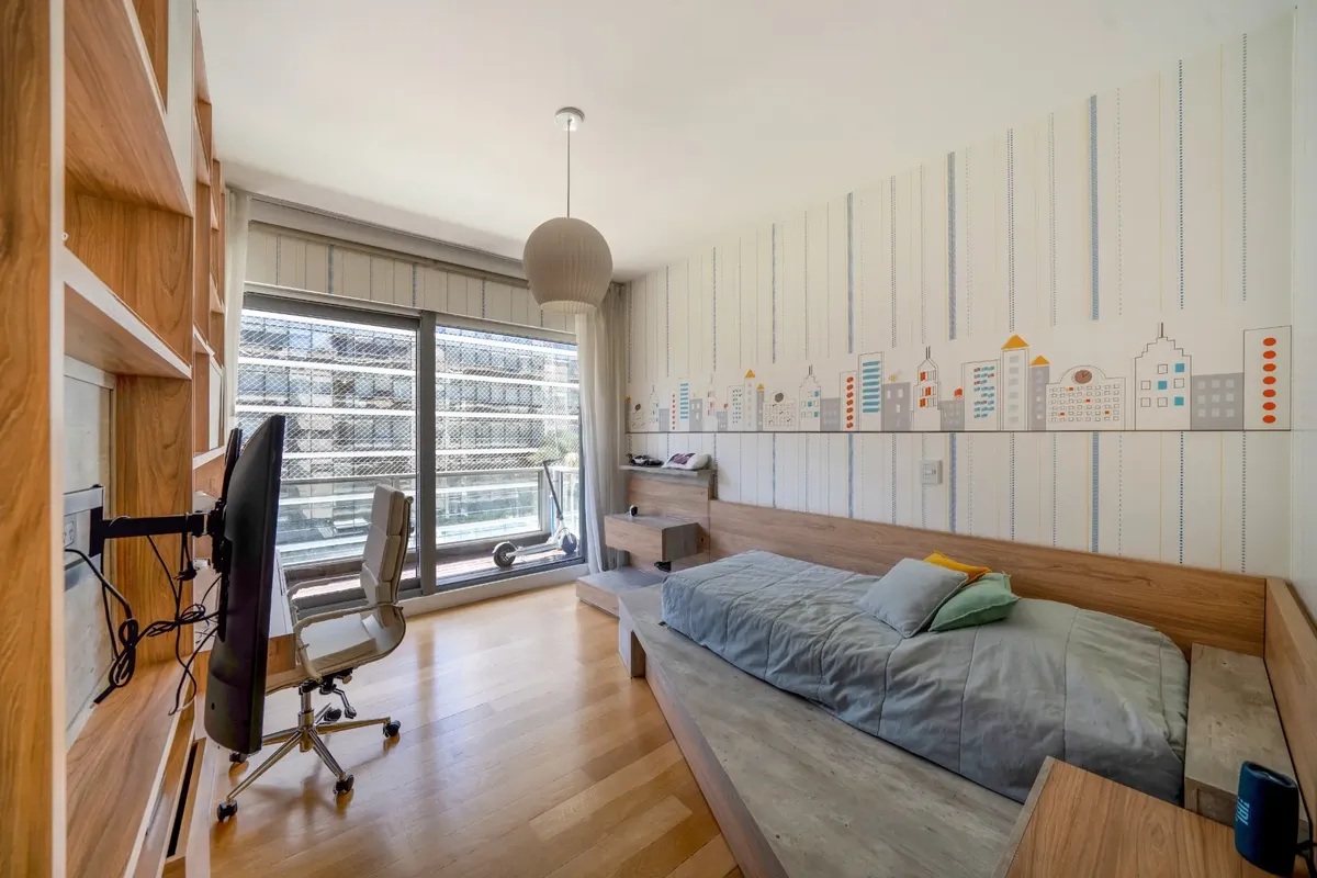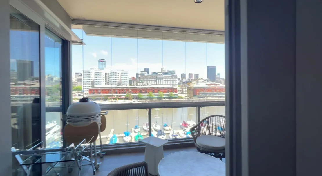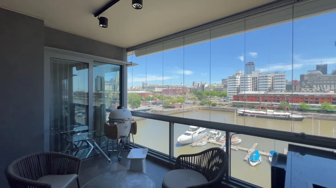 Four-bedroom apartment in Puerto Madero, 350 m², refurbished and redecorated. It has an office, a service quarter, a laundry area, and 3 assigned parking spaces. The building offers amenities including a bar, microcinema, children’s and youth game room, 2 residents' lounges with private entry, reception areas, gym, spinning room, dance room, indoor and outdoor semi-Olympic pool, children’s pool, massage room, wet and dry sauna in changing rooms, hairdresser, garden, solarium, laundry, and car wa