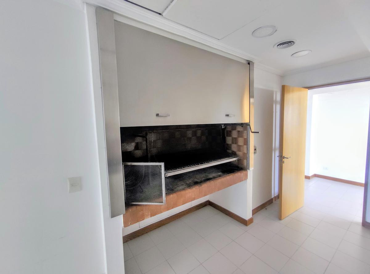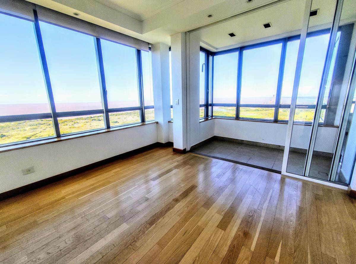 Full-floor apartment with 4 en-suite bedrooms in the Torres El Faro complex, with views of the Río de la Plata and the city. The unit has a private covered BBQ (parrilla) and parquet floors, with double-glazed windows (DVH) and double doors in the main areas. It includes 2 assigned parking spaces. The building offers club-style amenities, including an in-and-out pool, spa area, tennis court, and communal green area on the ground floor with children’s play area, plus security booths and on-site s