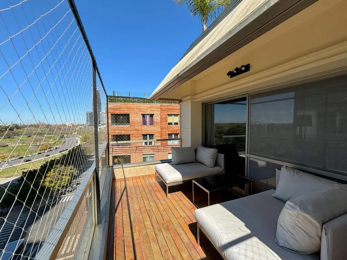 Apartment with 6 rooms and 4 en-suite bedrooms in the RIO PLAZA building, Puerto Madero. Private terrace of 78 m² with views, plus a living/dining room with access to the terrace. Separate kitchen with double circulation, daily dining area and laundry room, playroom, 5 bathrooms and a guest toilet. Includes 2 parking spaces and 1 storage room, walk-in closets and storage areas. Building amenities include a generator, 24-hour security, two pools on the terrace level 10, communal services such as