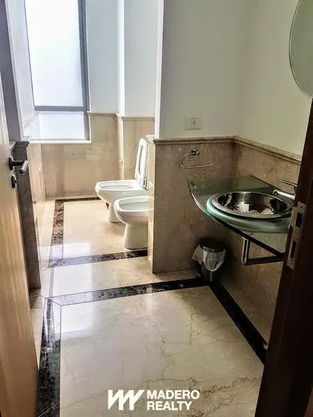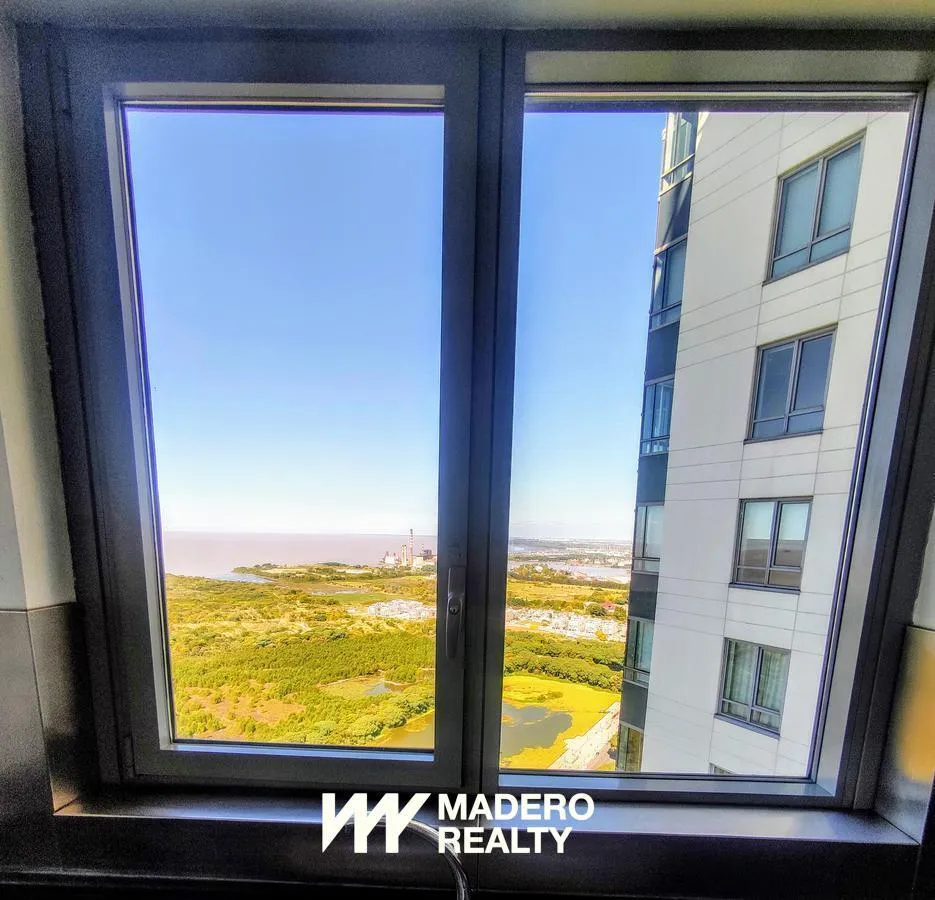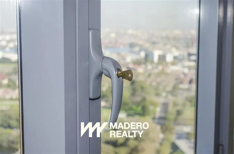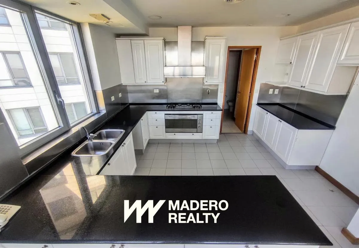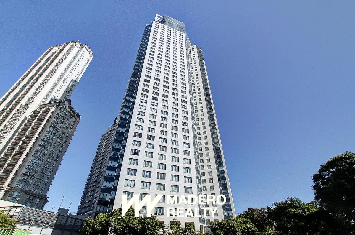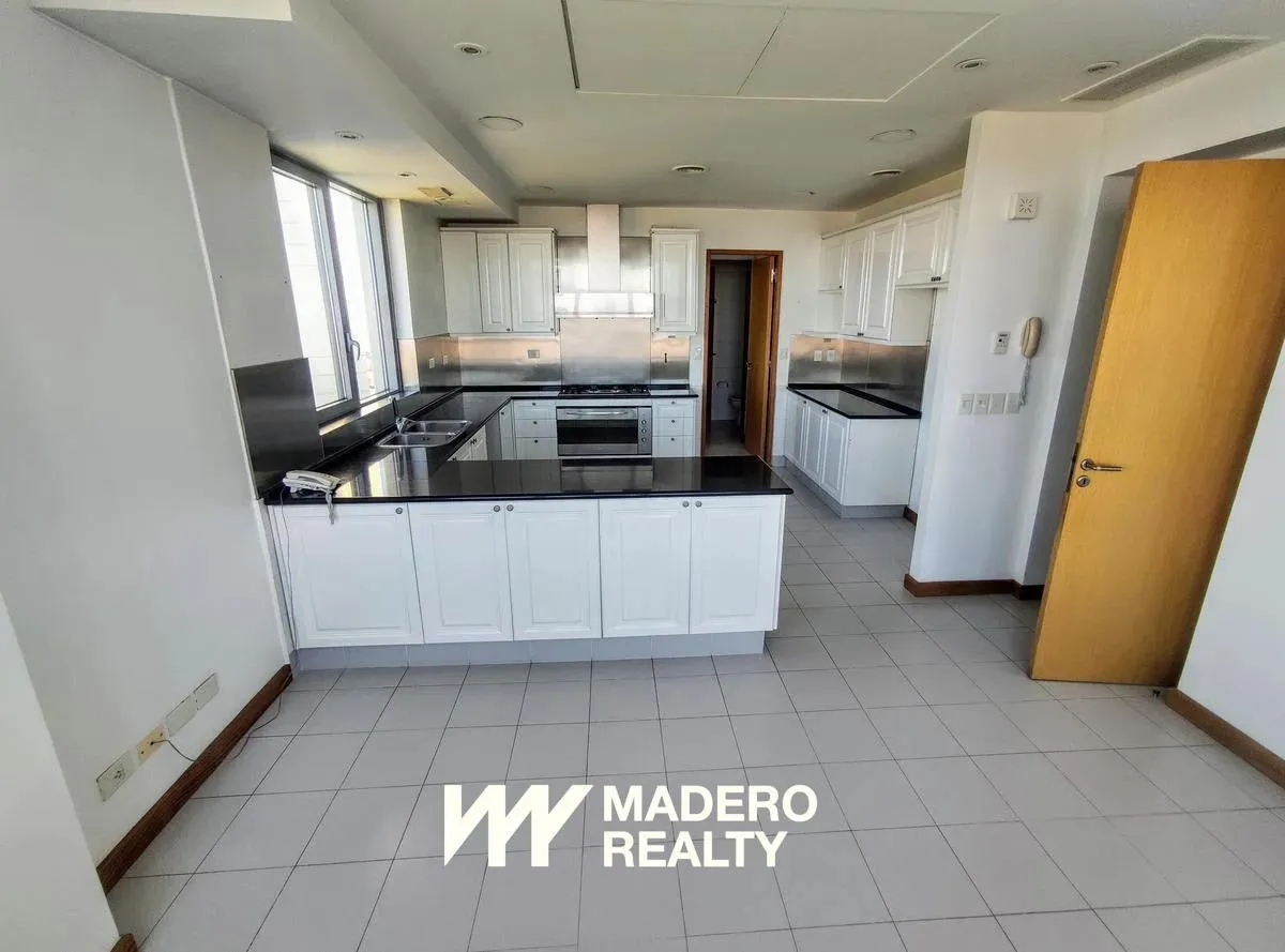 Full-floor apartment for rent in Torres El Faro, Puerto Madero, with 380 m². High floor with panoramic views of the Río de la Plata and the city, and a private grill. Entrance via a private landing from the elevator; large living-dining area with guest toilet; independent kitchen with separate dining room access via a second elevator; separate laundry area and service quarters with bathroom. Private area includes 3 bedrooms (two with shared full bathroom, plus a suite with dressing room and bath