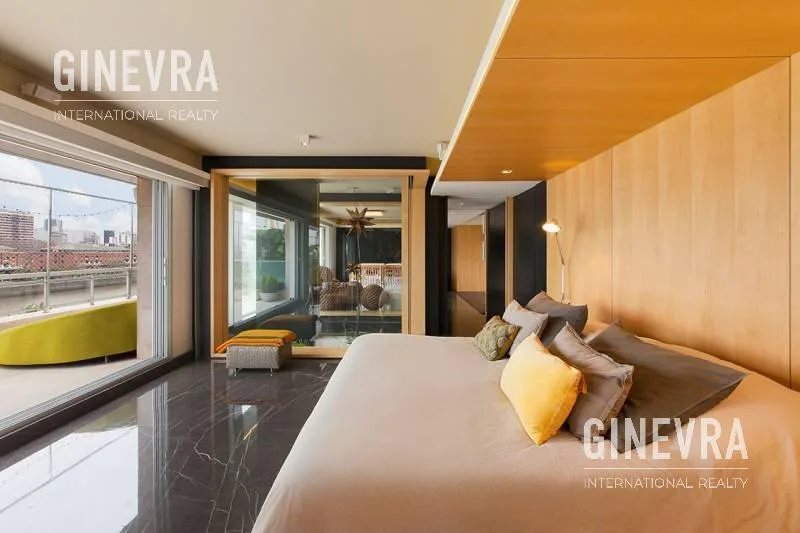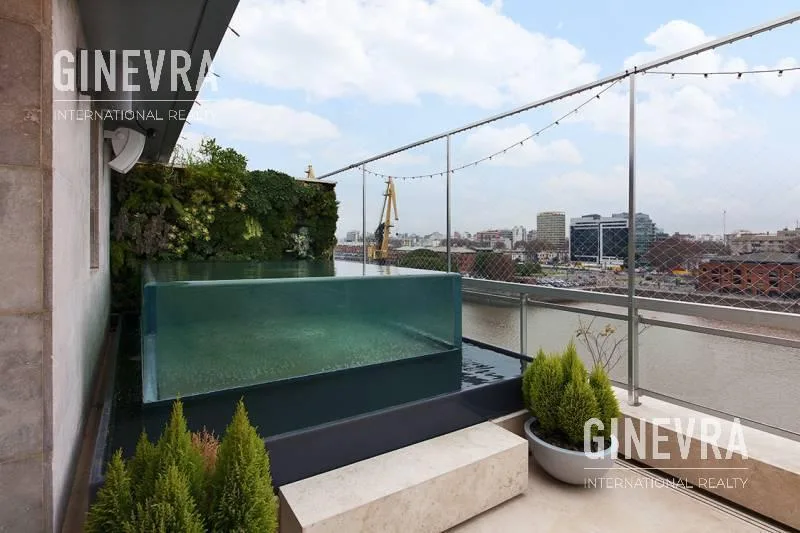 Duplex apartment over two floors with 360 m² of covered area and 180 m² of terrace in the Cruceros building, with an through-unit layout and views of the docks (Pierina Dealessi and Olga Cossetini). VRV air-conditioning runs throughout the unit, with radiant floor heating; double-glazed DVH windows. Main and service entrances. The building has four assigned parking spaces on the 1st basement level, with the 5th space converted into a storage room (baulera) and a motorbike parking space.