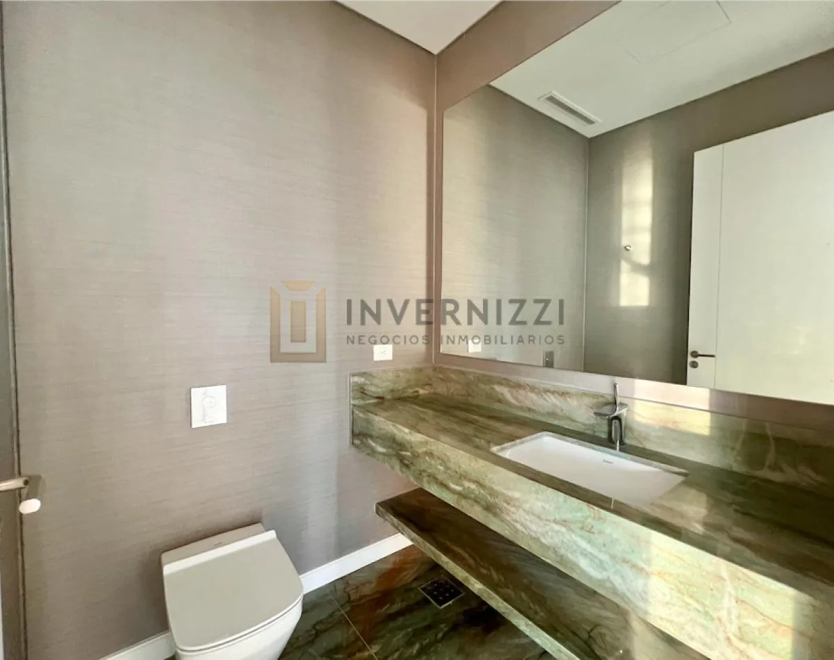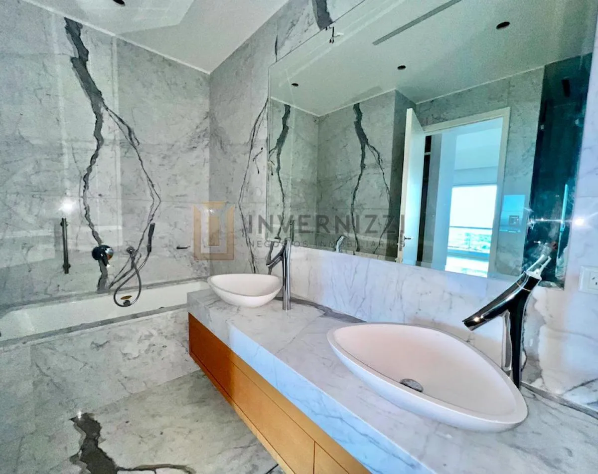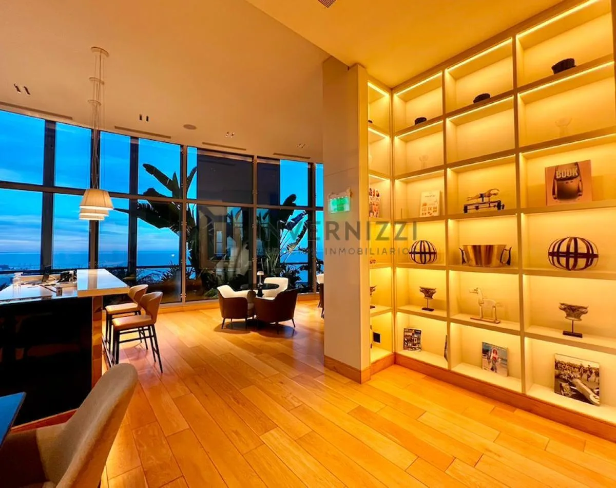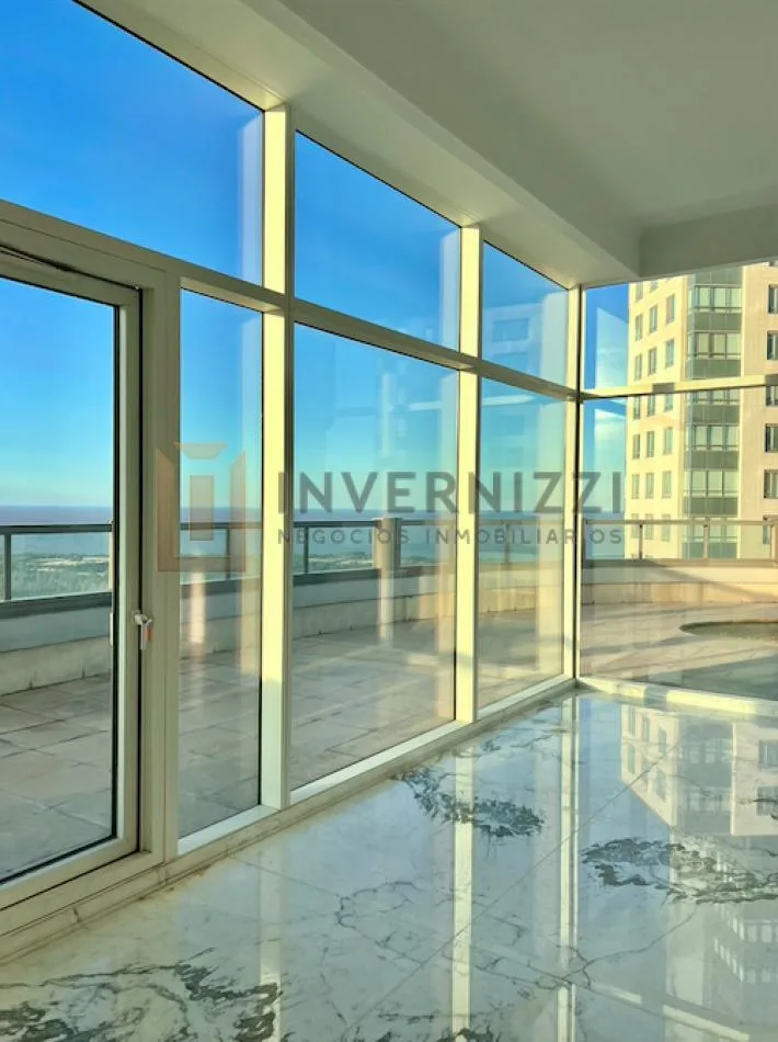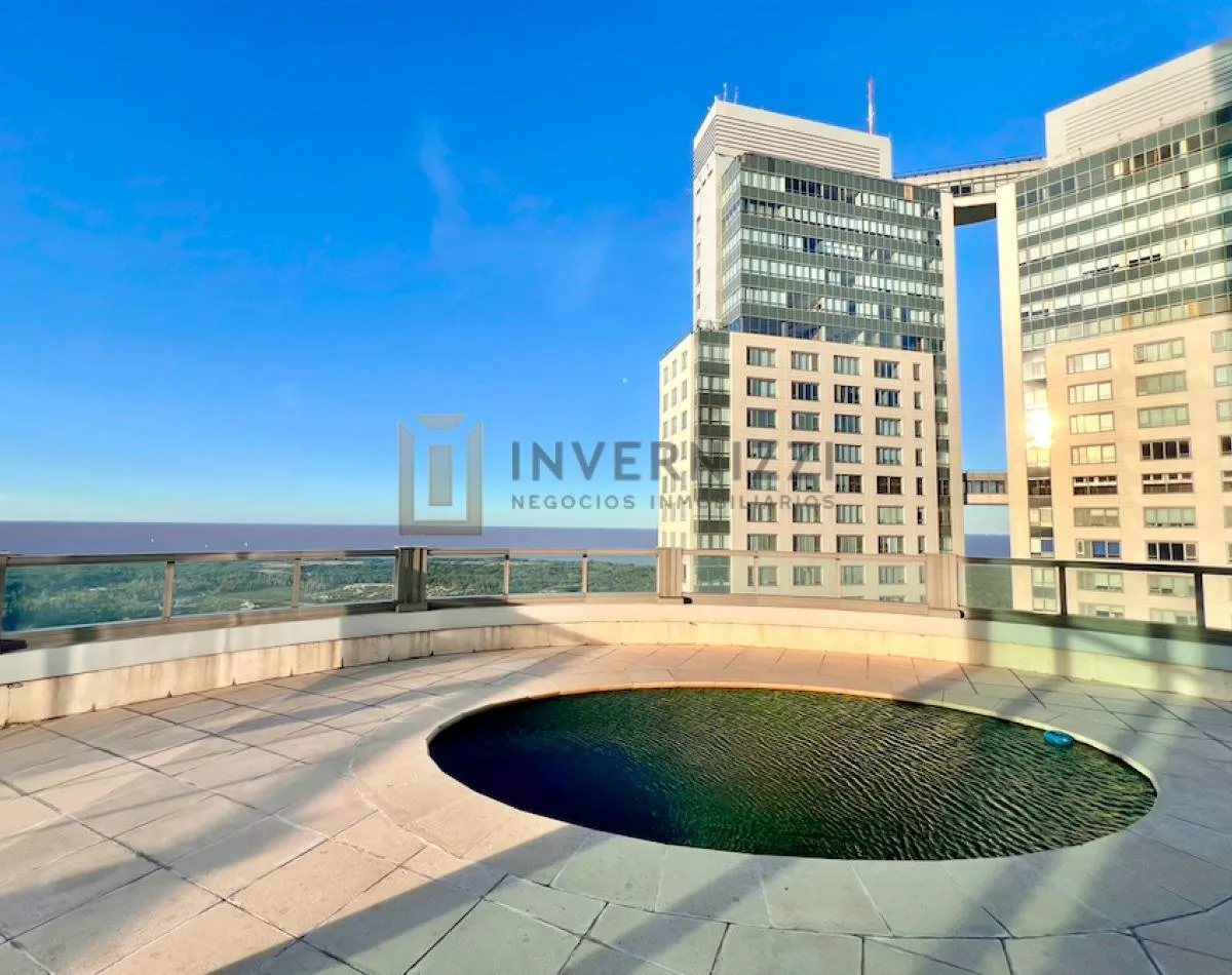 Half-floor apartment in Puerto Madero, furnished, with a total area of 425 m² (300 m² covered and 125 m² semi-covered). High floor with views of the Río de la Plata and the city. The unit has a private lobby with two main elevators, a living-dining room, a wine cellar area, a terrace with a private pool, a separate kitchen with a breakfast area, a guest toilet, 4 bedrooms each with an en-suite bathroom, service staff quarters, and a laundry area. Includes 2 parking spaces and marble and wood flo
