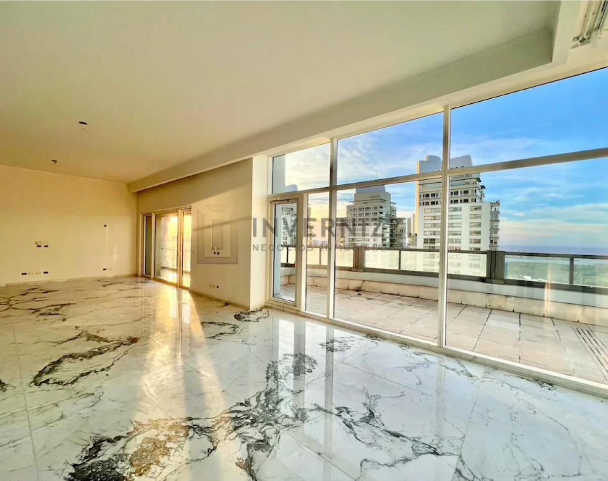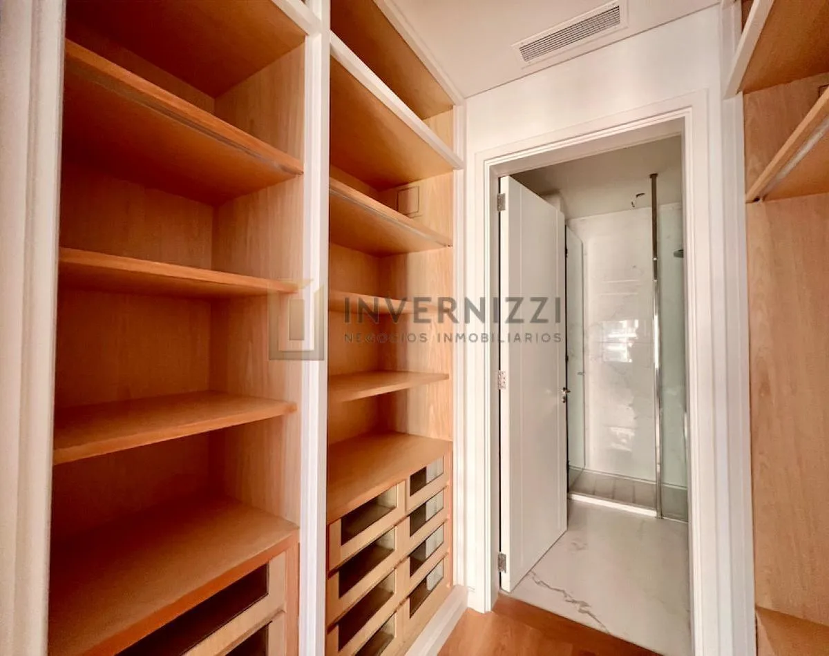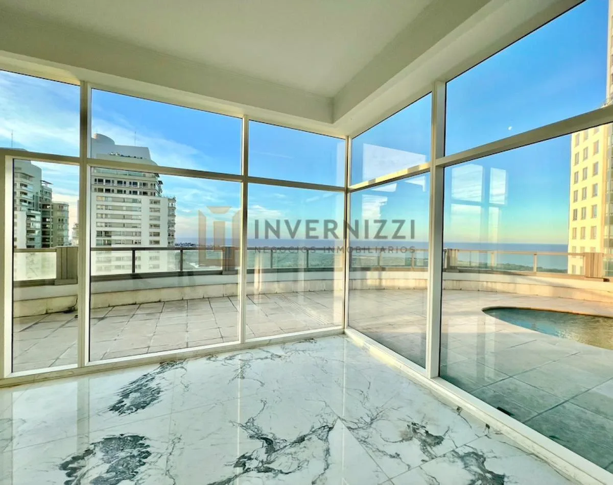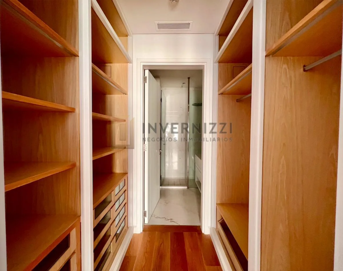 Half-floor apartment in Puerto Madero, furnished, with a total area of 425 m² (300 m² covered and 125 m² semi-covered). High floor with views of the Río de la Plata and the city. The unit has a private lobby with two main elevators, a living-dining room, a wine cellar area, a terrace with a private pool, a separate kitchen with a breakfast area, a guest toilet, 4 bedrooms each with an en-suite bathroom, service staff quarters, and a laundry area. Includes 2 parking spaces and marble and wood flo