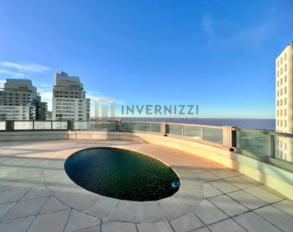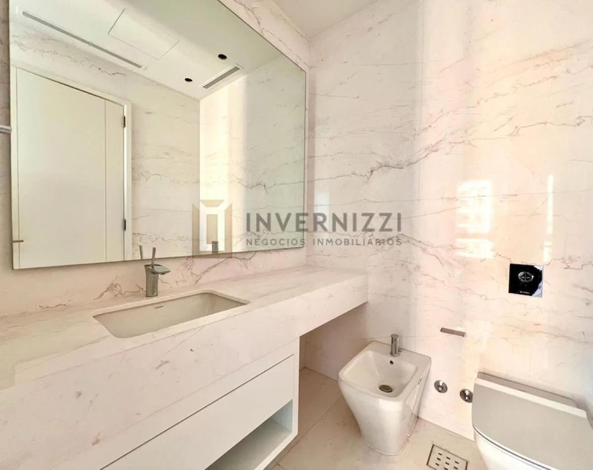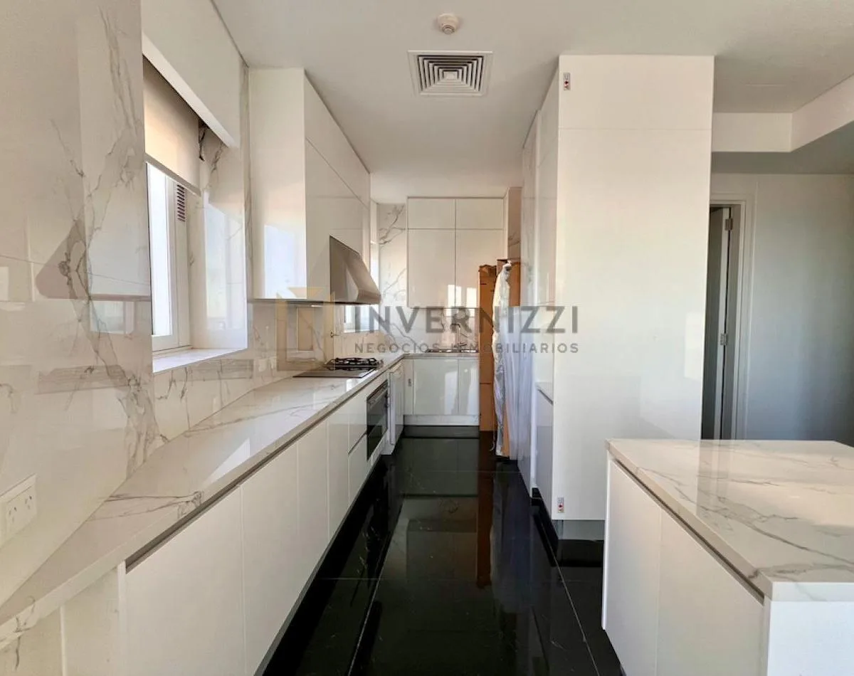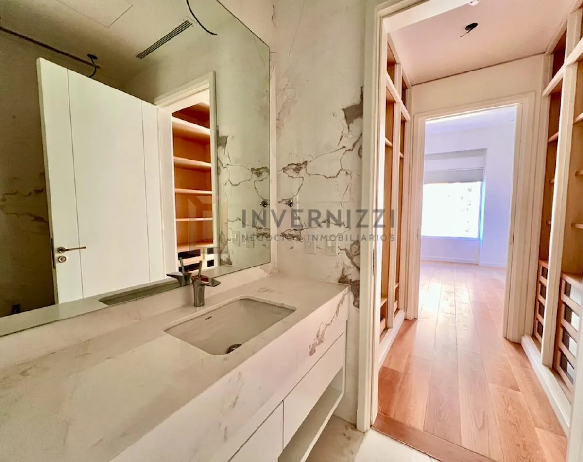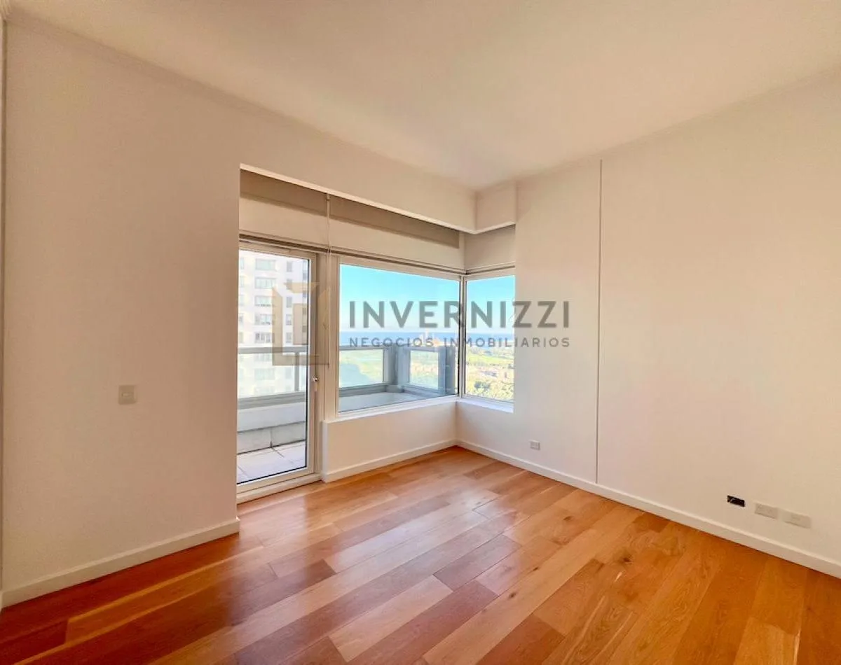 Half-floor apartment in Puerto Madero, furnished, with a total area of 425 m² (300 m² covered and 125 m² semi-covered). High floor with views of the Río de la Plata and the city. The unit has a private lobby with two main elevators, a living-dining room, a wine cellar area, a terrace with a private pool, a separate kitchen with a breakfast area, a guest toilet, 4 bedrooms each with an en-suite bathroom, service staff quarters, and a laundry area. Includes 2 parking spaces and marble and wood flo