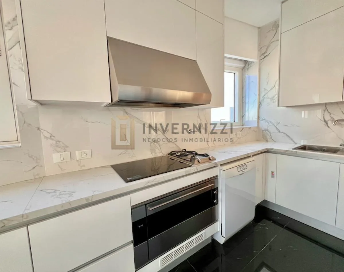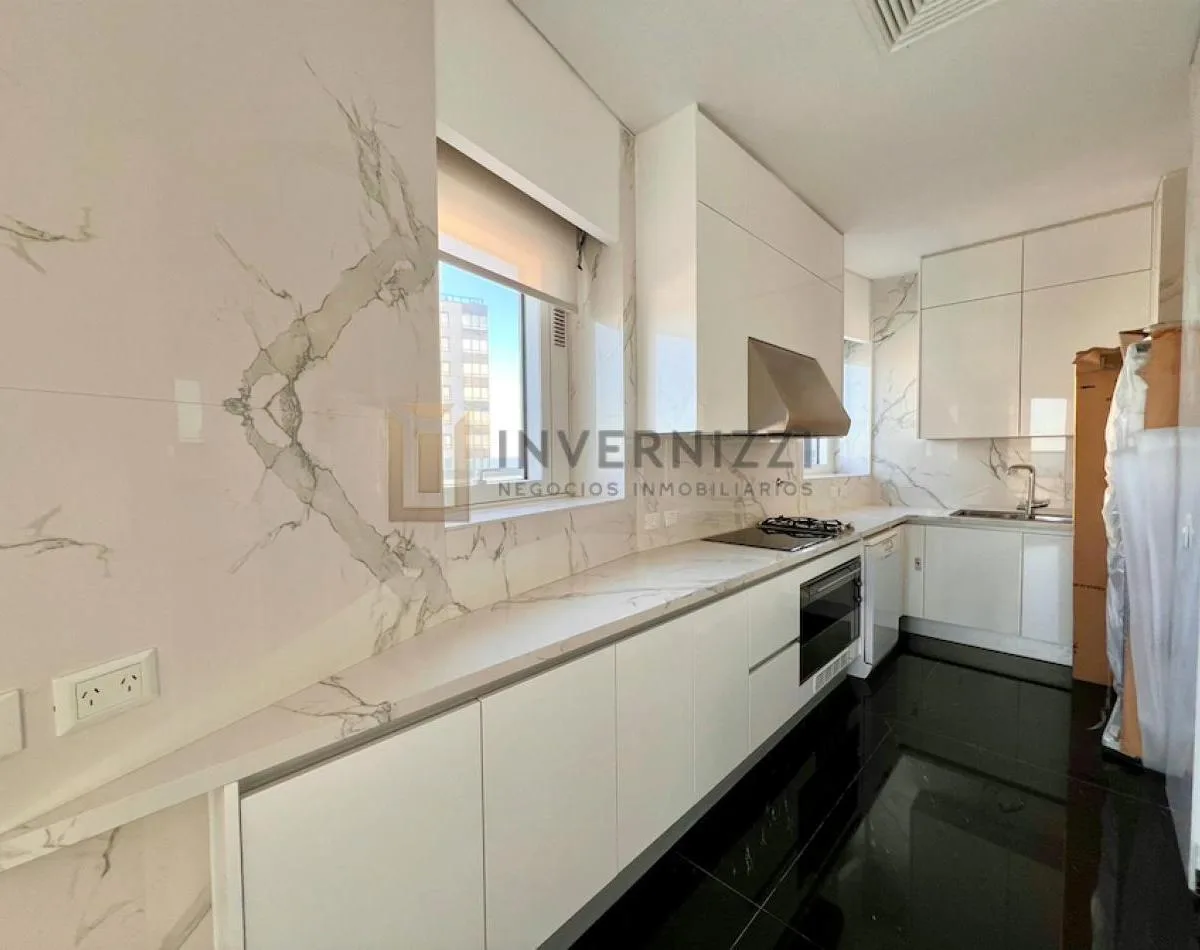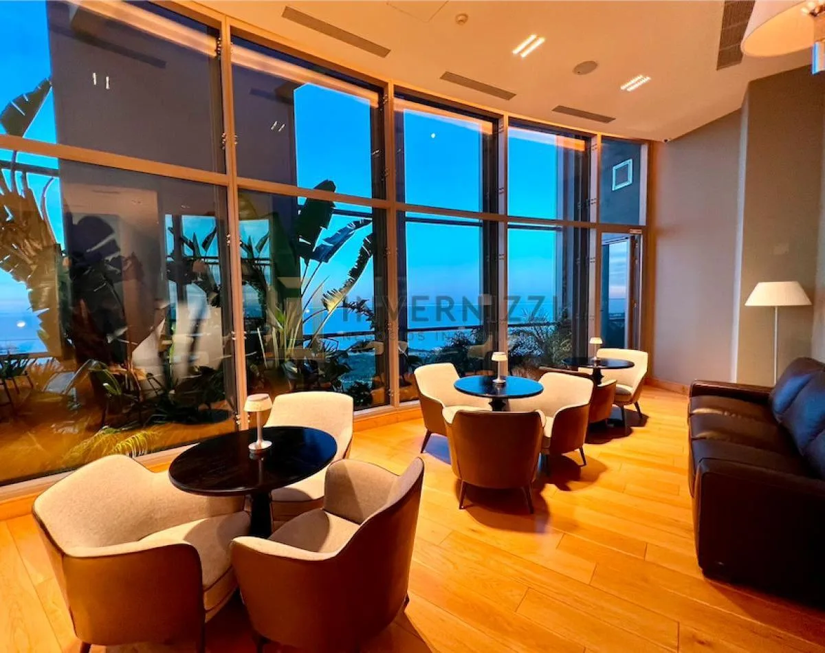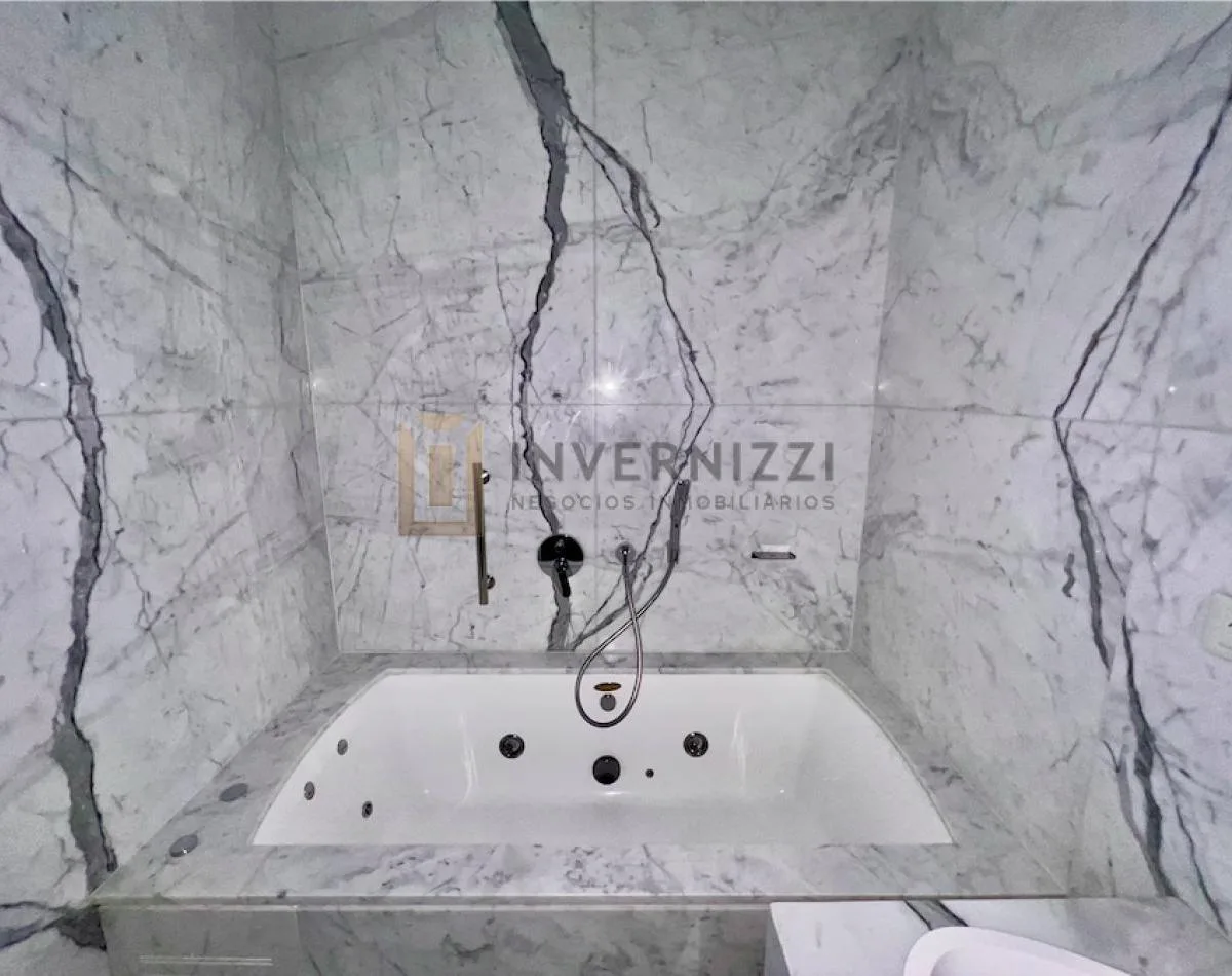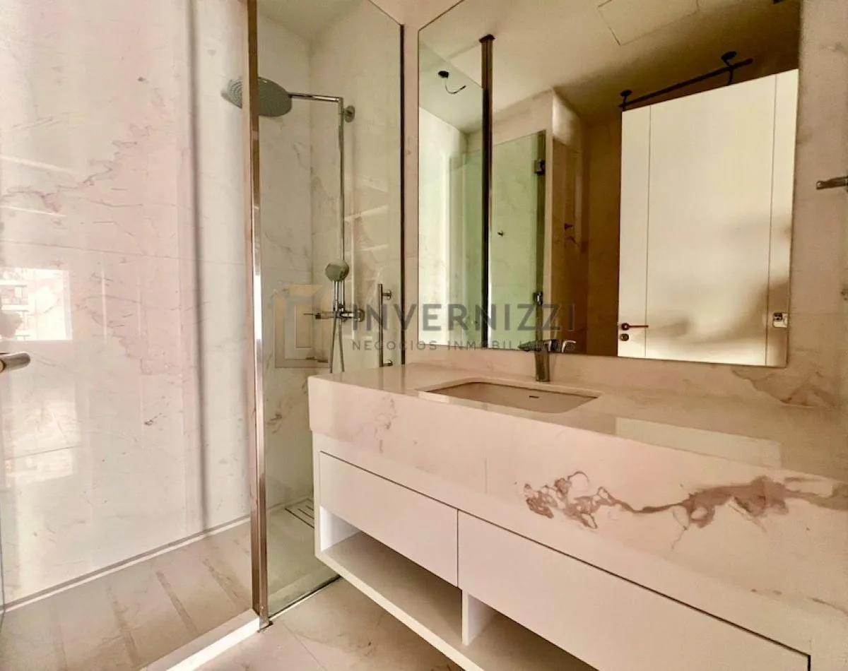 Half-floor apartment in Puerto Madero, furnished, with a total area of 425 m² (300 m² covered and 125 m² semi-covered). High floor with views of the Río de la Plata and the city. The unit has a private lobby with two main elevators, a living-dining room, a wine cellar area, a terrace with a private pool, a separate kitchen with a breakfast area, a guest toilet, 4 bedrooms each with an en-suite bathroom, service staff quarters, and a laundry area. Includes 2 parking spaces and marble and wood flo