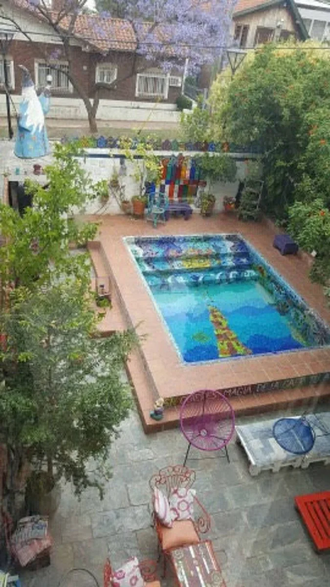 Two-storey house in Quilmes with 4 bedrooms. On the ground floor there is a living-dining room, a separate kitchen, a full guest bathroom, a home office, and a garden with a grill, a pool, and a bathroom plus a toilet. The property has a covered parking space and a large workshop area in the basement. Upstairs there is a master bedroom with a dressing room and en-suite bathroom, and two additional bedrooms with built-in wardrobes and en-suite bathrooms.