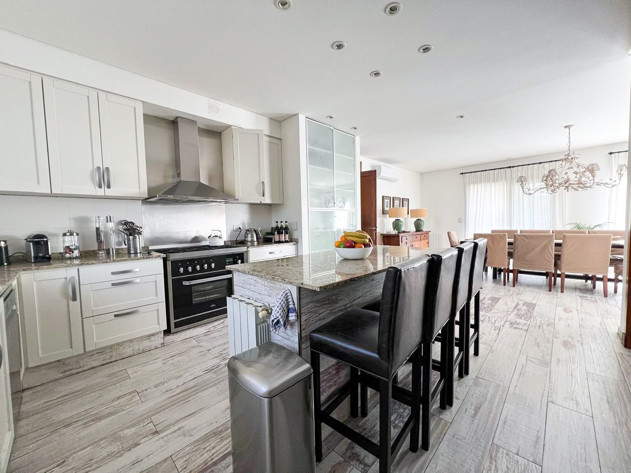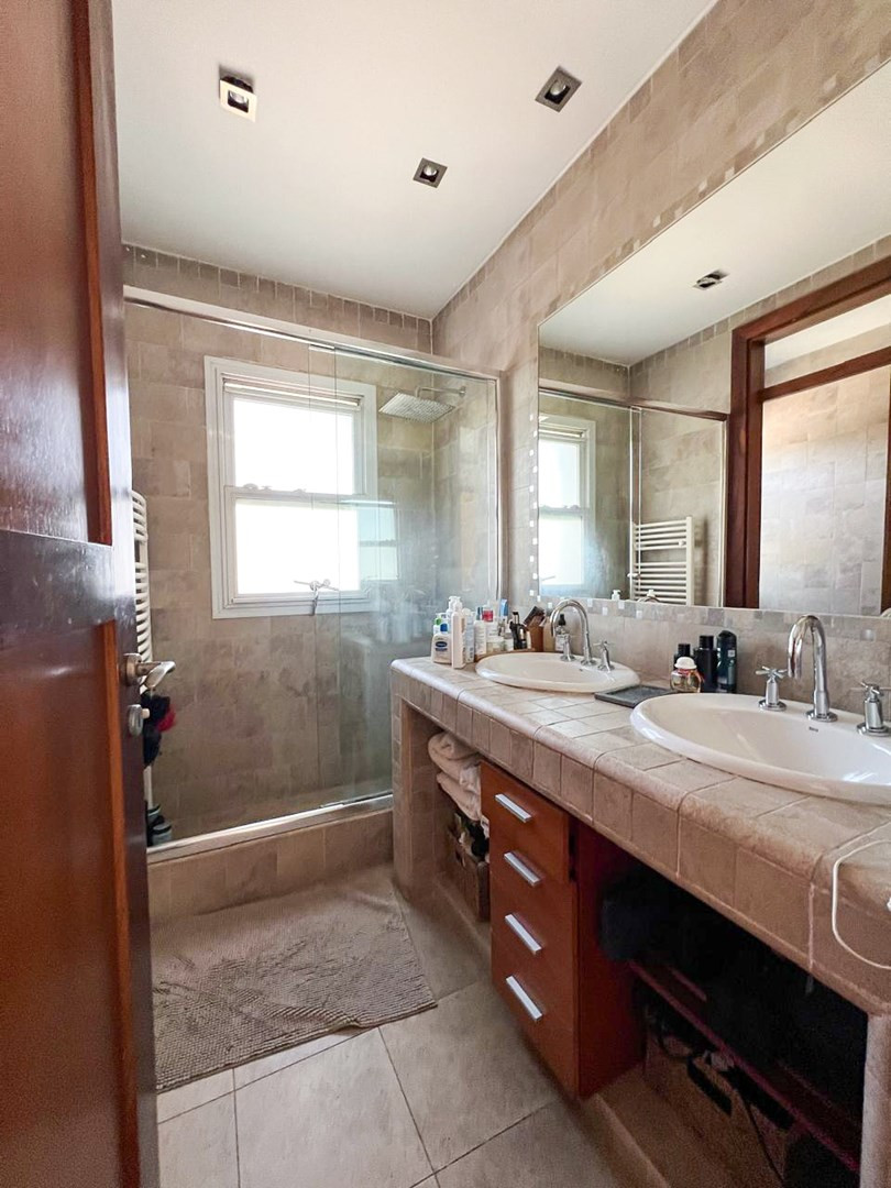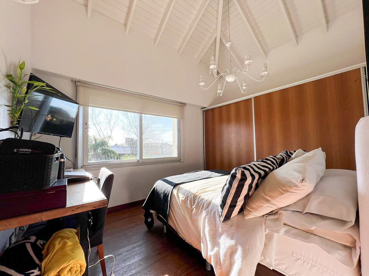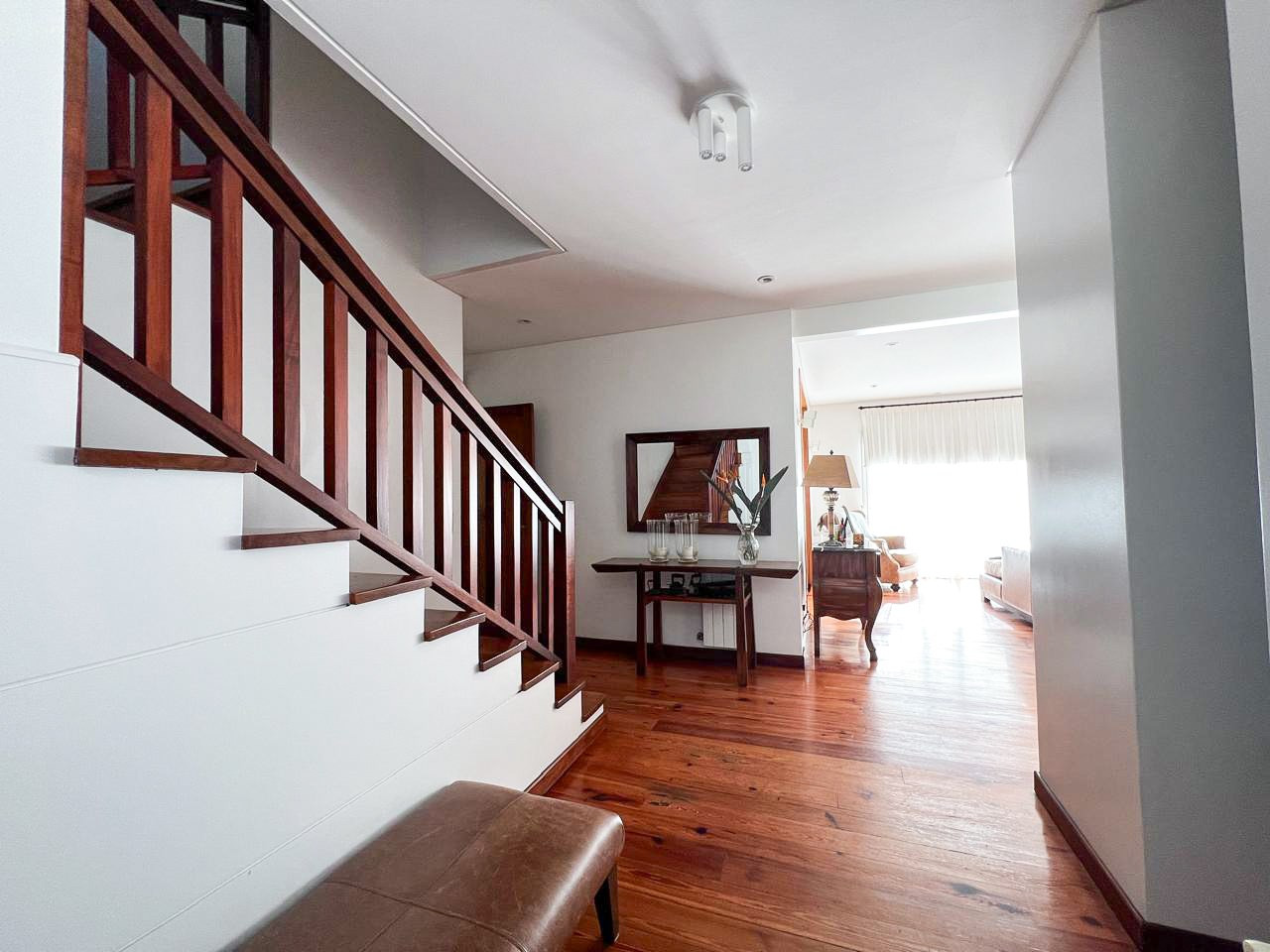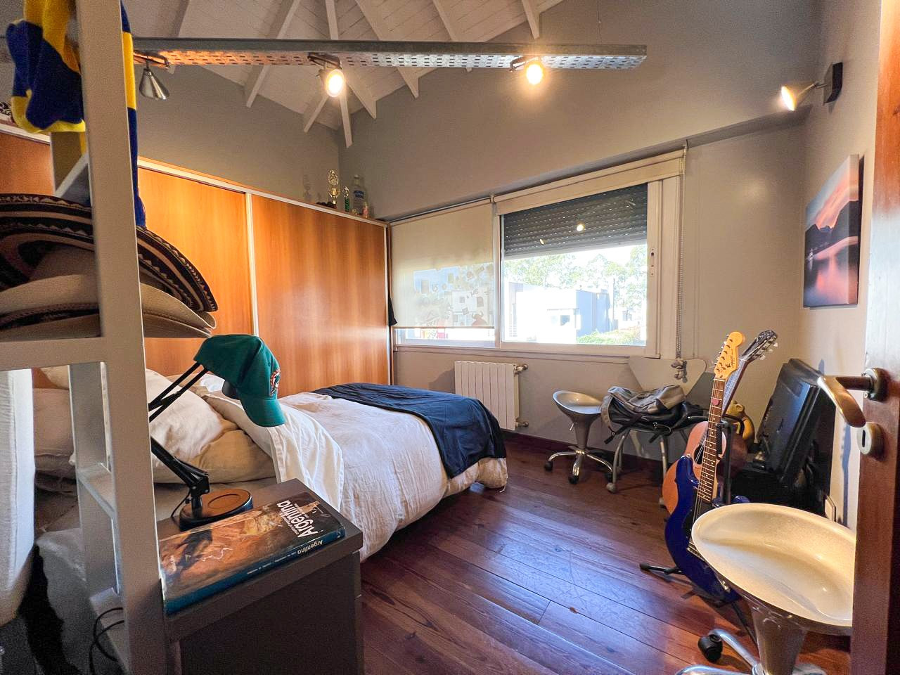 Four-bedroom house in Barrancas de Guido, a gated community in Quilmes. The 1,092 m² lot has 400 m² of built area and includes a main and service access, living room with views of the park and pool, dining room, separate kitchen-dining room, laundry area, and a guest toilet. There are 5 bedrooms in total, including 2 en suite with dressing rooms, plus a full bathroom, playroom, family room, covered gallery, grill area, swimming pool and park, and central heating.