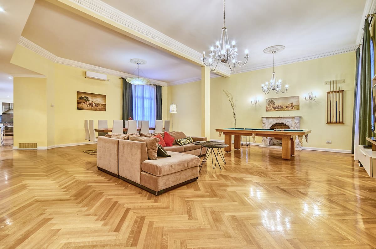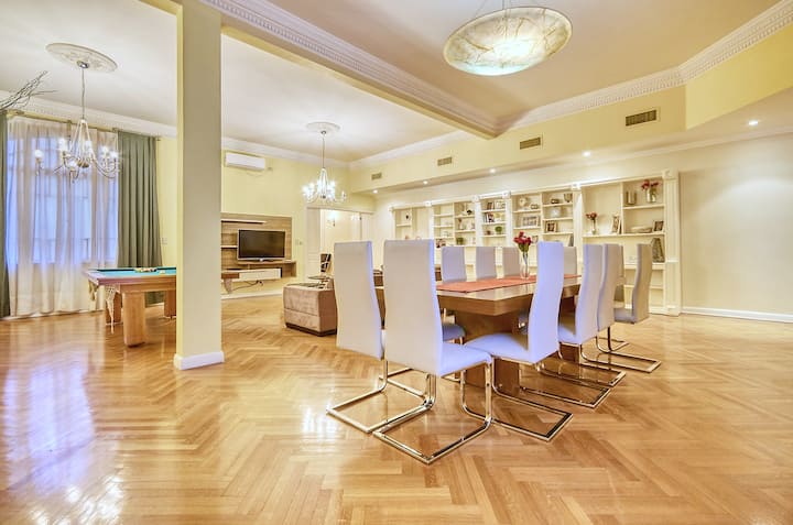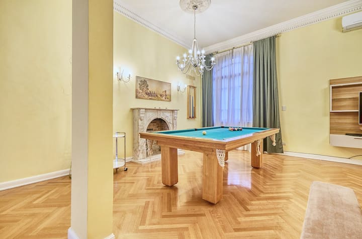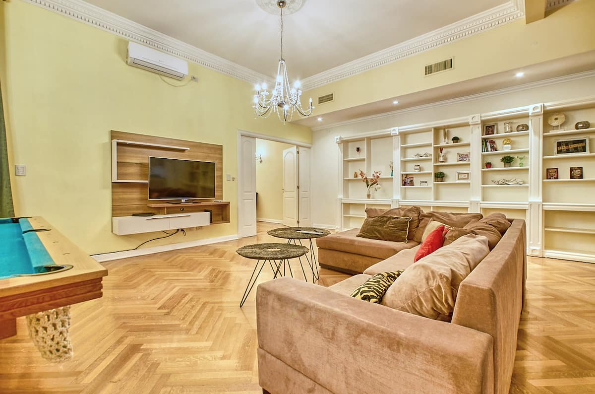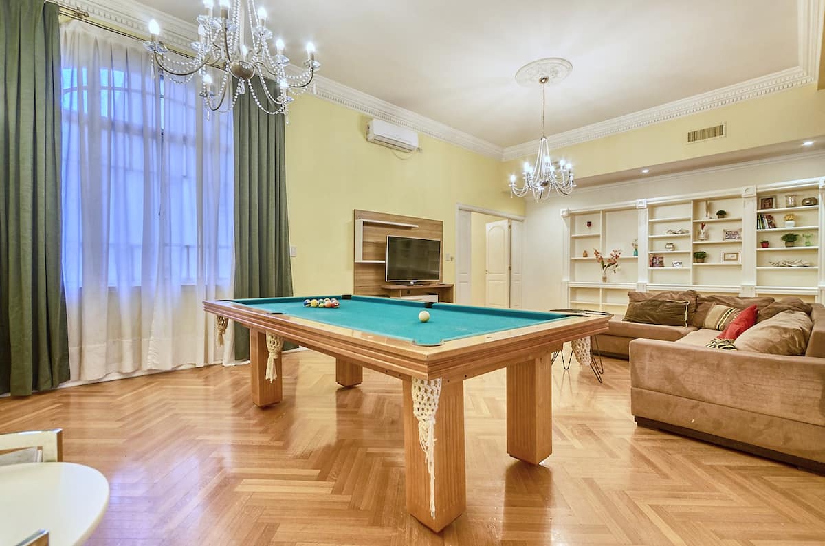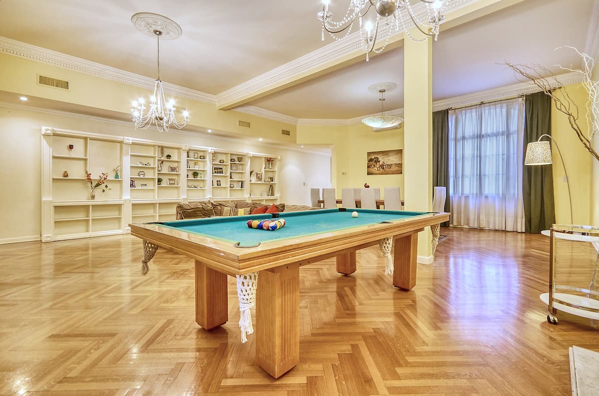 Four-bedroom apartment with 400 m² in Recoleta, with a private landing (private palier). The layout includes a large kitchen and a living-dining room. Air conditioning is installed in every room. The apartment has a pool table and has been remodelled and equipped. The listing places the property on Av. Libertador, a few metres from Patio Bullrich, Four Seasons and Alvear.