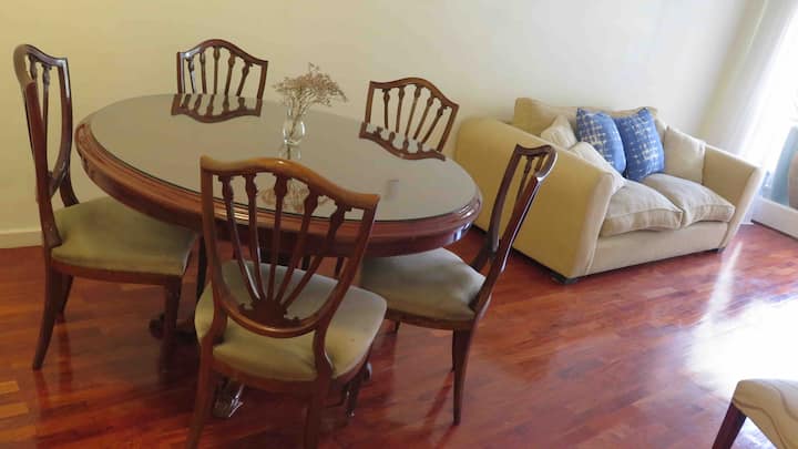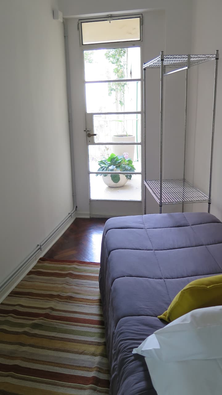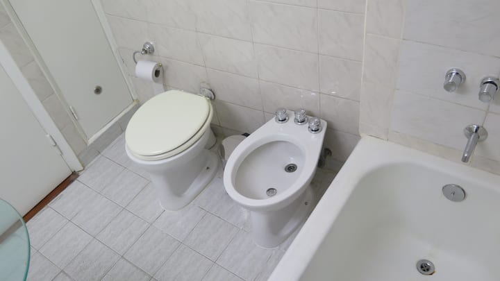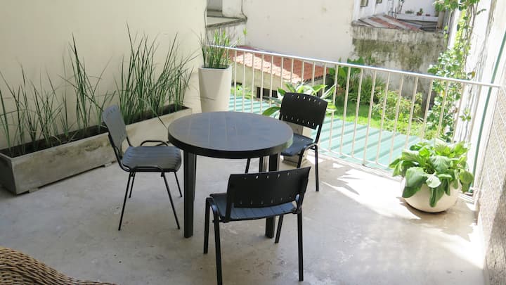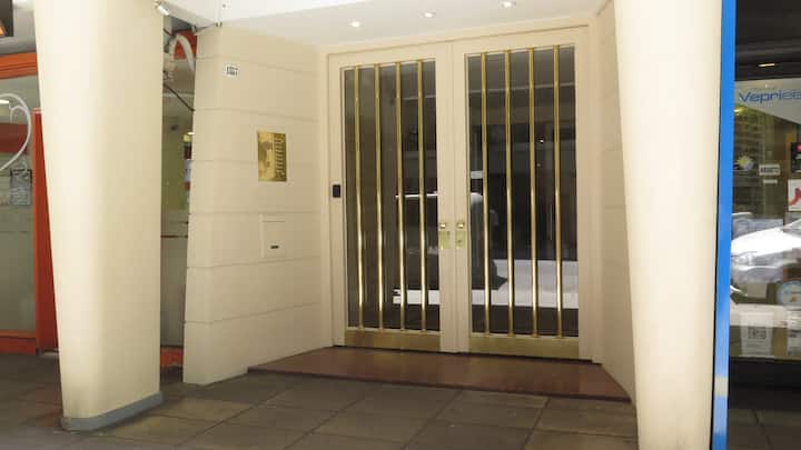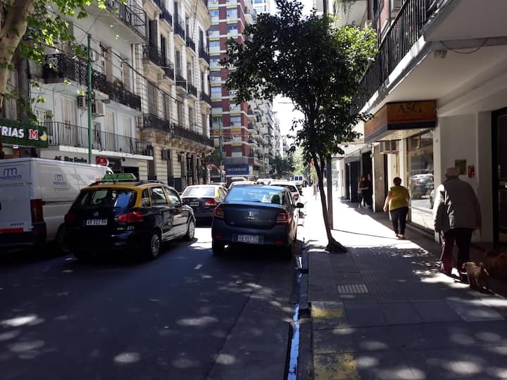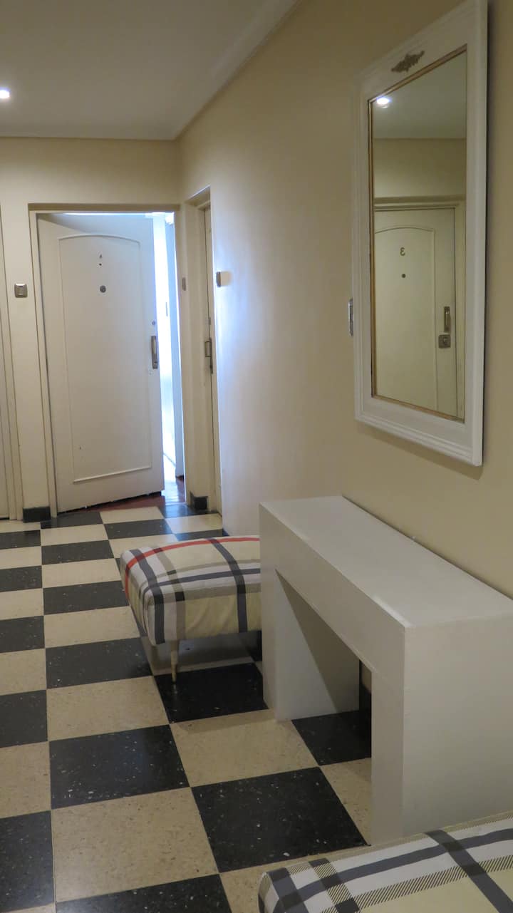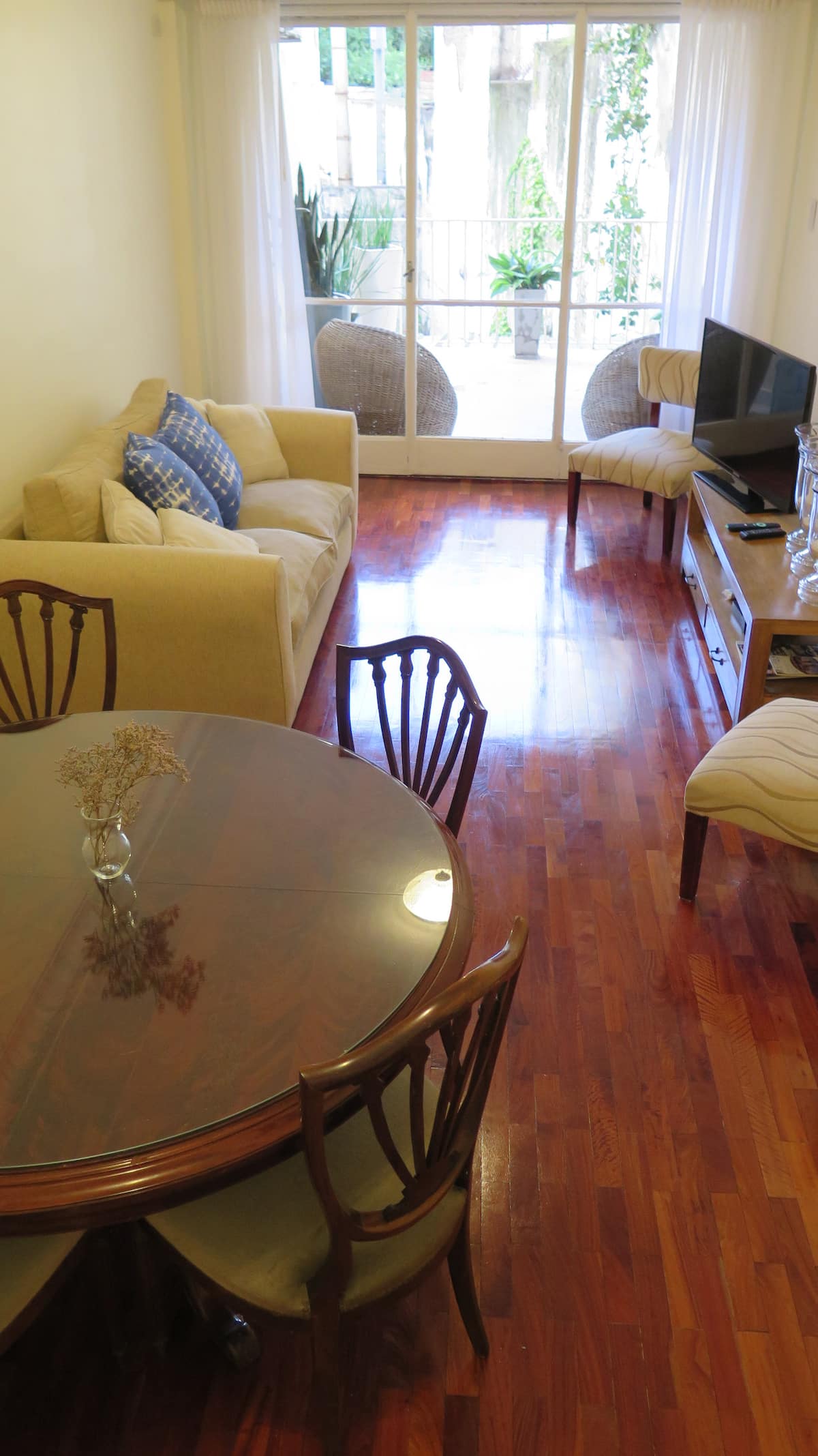 Apartment with 4 bedrooms, 2 bathrooms and a living room in Recoleta. It is on the first floor, with garden-facing outdoor balcony, and comes fully equipped with central heating and air conditioning in the living room. The apartment includes a kitchen with refrigerator, microwave and gas stove, plus WiFi internet and cable TV in the living room. It is located between Recoleta and Palermo, half a block from Av. Santa Fe and about two blocks from Metro D & H.